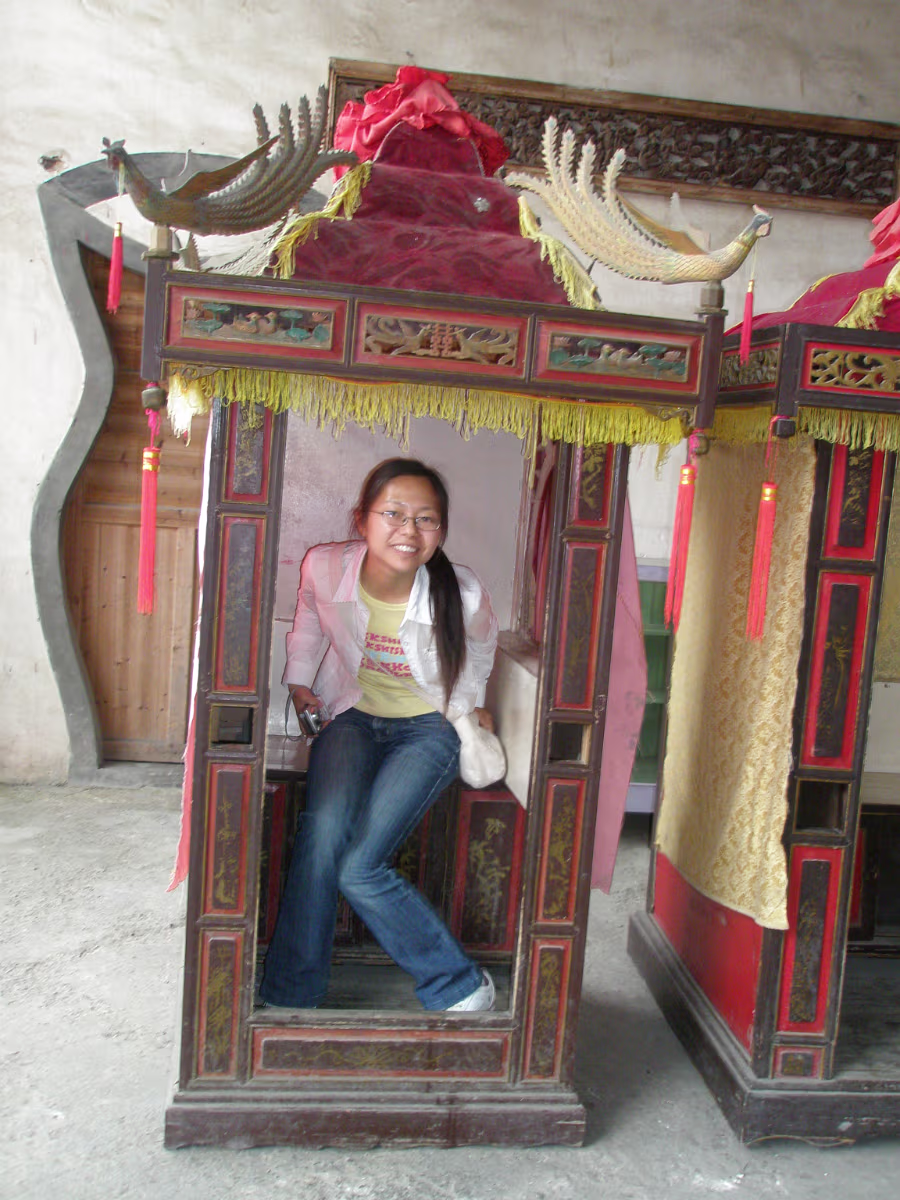 200 year old house living room layout. In olden days, the owner's daughter lived on the 2nd floor. The opening was for her to peek at guys. Old wedding bed. It is 2 meters long. Old kitchen cabinet. Xidi village is famous for wooden carves. An ancient ceiling fan. Two persons held the rope and pulled it to make a breeze. Mom and Dad sat on the chair that belongs to old village officials. Hanhan is in the brides' sedan. Family with the overview of Xidi village. The last contribution gate. In the old days, the local officials got this gate from the emperor when they did good things for their country. Hong village is surrounded by yellow mountain. Nice, quiet place. Hanhan and Mom are listening to the tour guide. A representative of old Anhui buildings. It was on a 1980s postage stamp. A chair where people used to smoke opium. In the silk factory. There are a lot of long, fat silkworms. A silk spinning machine. Separating twin silkworm cocoons. Old ladies are making silk blankets. My mom bought one. The next day is mother's day. I bought an amber bracelet for my mom. Today is father's birthday. We went to a special yellow mountain restaurant to celebrate. Labels Taekwondo