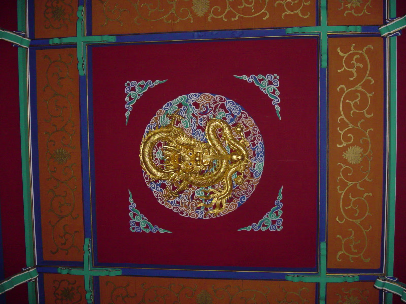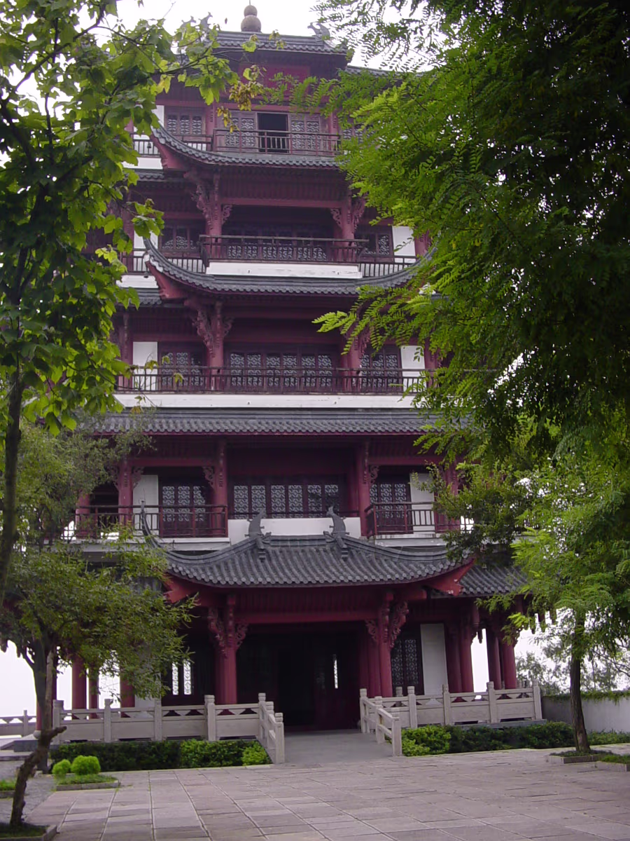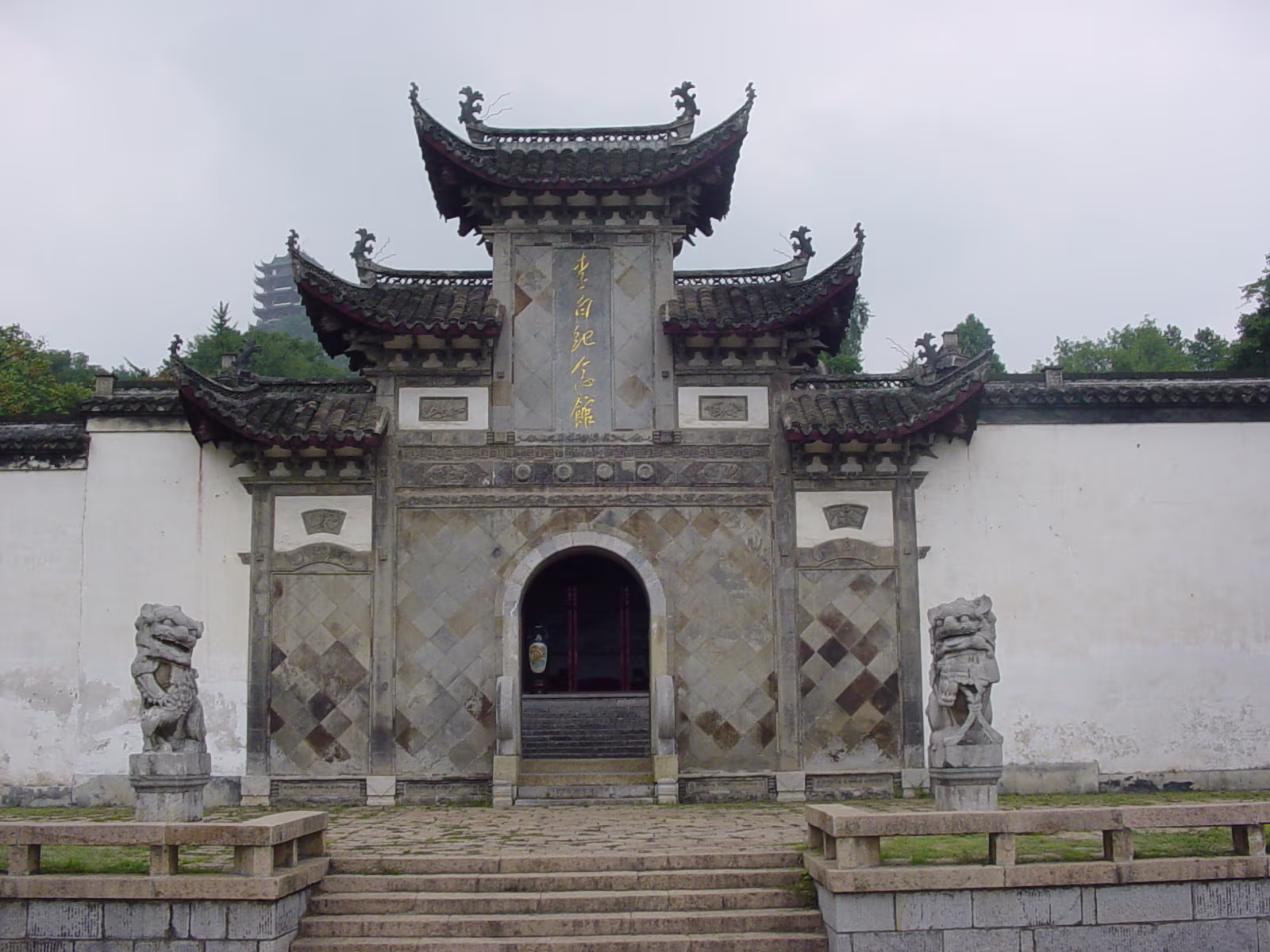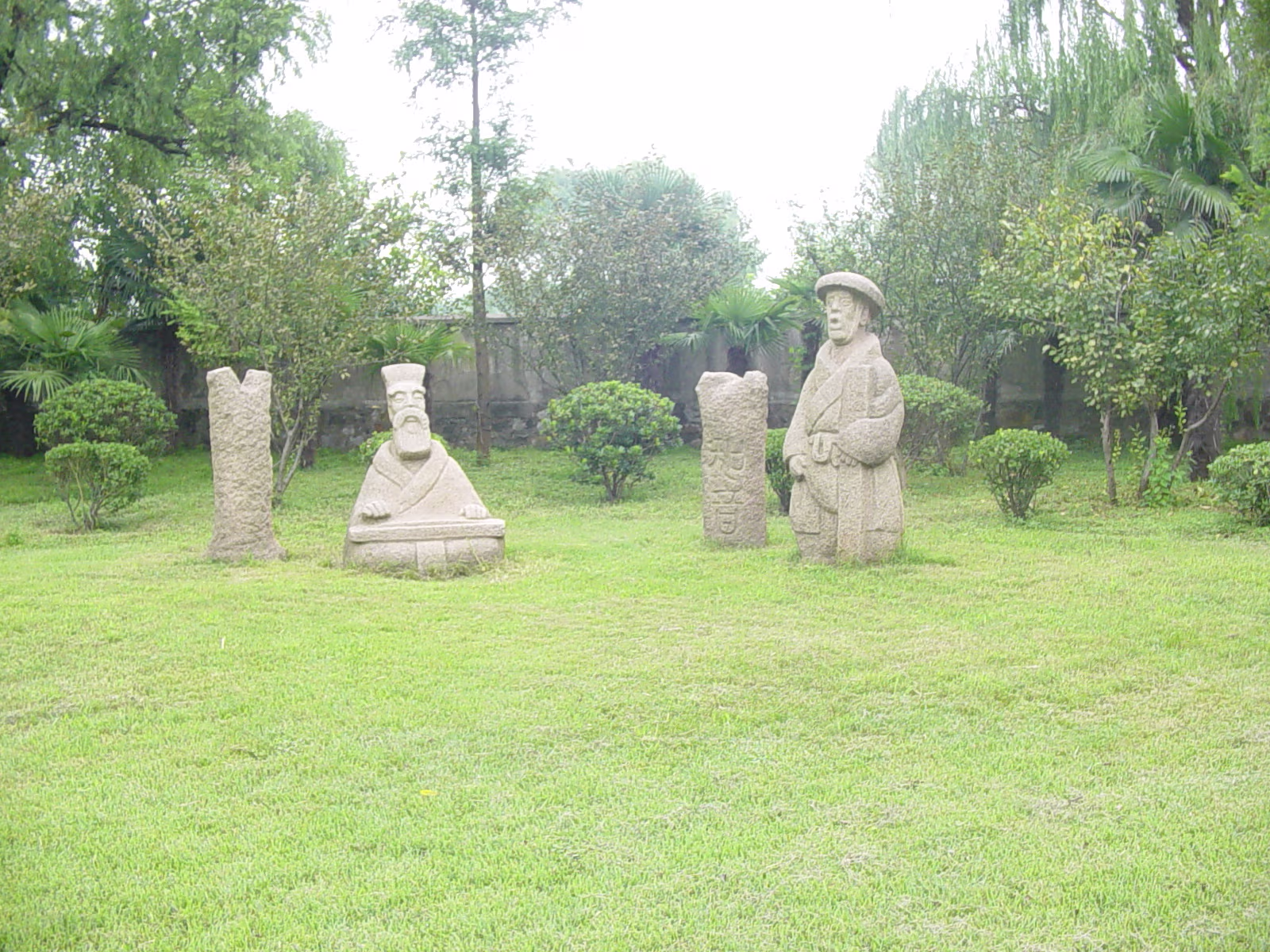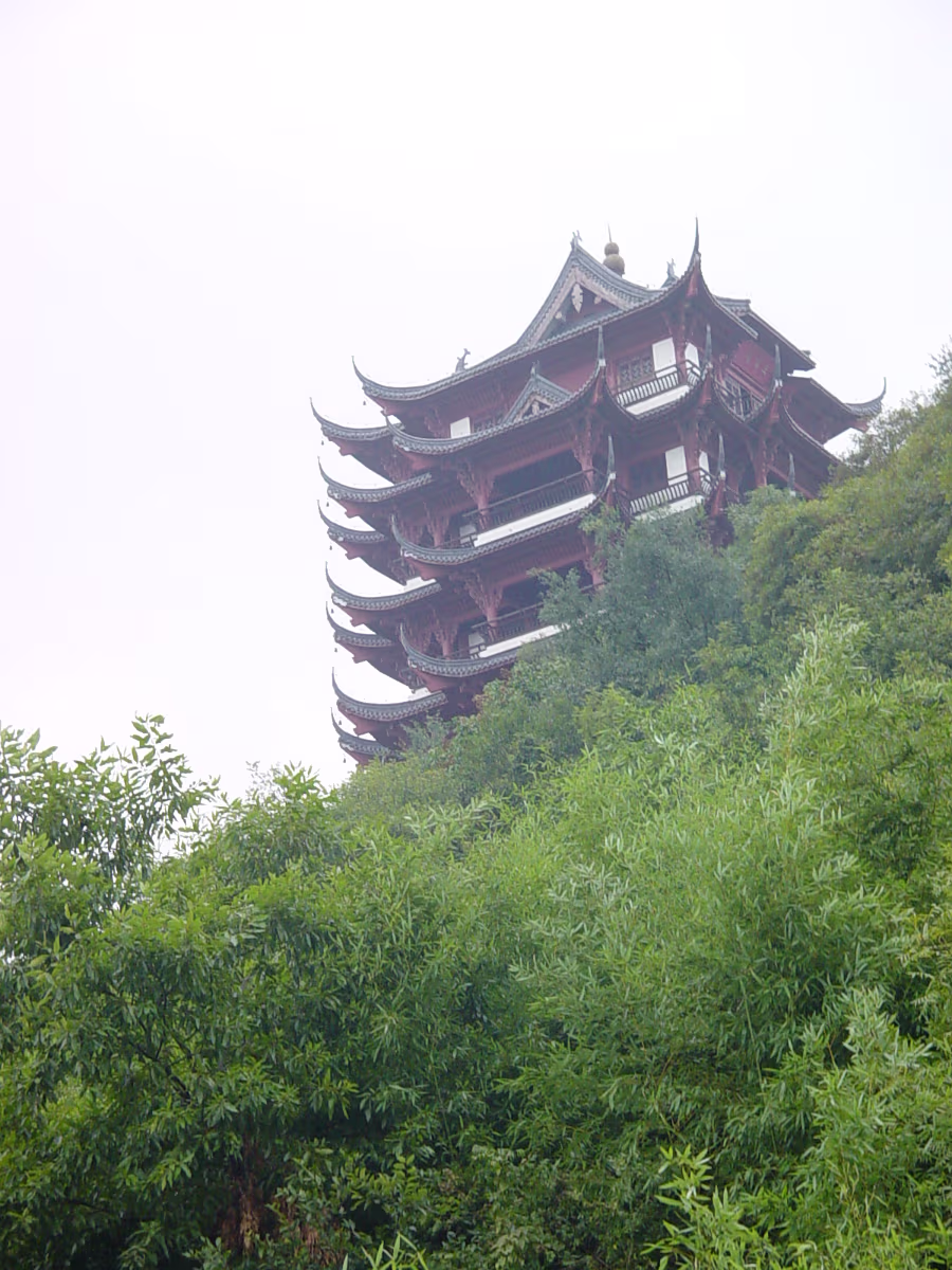 A beautiful scene that represents the entire park well. Inside a small garden that is walled by 300-400 year old stone carvings. Inside the same garden. Cool statues just hanging out in the grass. One gate to Taibai Tower area of the park. Same gate but suddenly with two vases inside the door. Taibai Tower area. One of the many sculptures on display throughout the park. Sentai Tower. Built in Ming era, and rebuilt after WW II. Has a commanding view of the whole area from high atop a bluff on the Yangtze River. A ceiling panel inside Sentai Tower. Heading for Sentai Loft. Getting closer. This was on a rickety cable car, like a ski lift. Labels Ma'anshan ApartmentCaishi Mar 2005