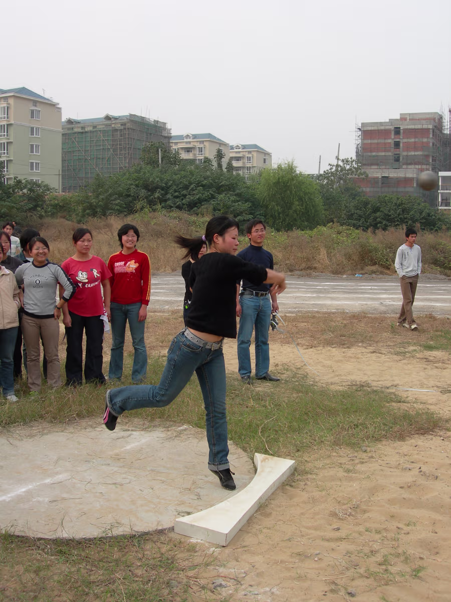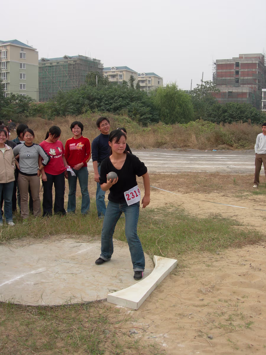 The shotput. She is one of the best. A strong throw, it may be the mark to beat. One class' water and treatment desk. The women's 400 meter is coming to the finish line. A long jump contestant starts her run. The landing is good and the judges will record her distance. The leader of the men's 5000 meter race. Labels Outing to PutangTemple Outing