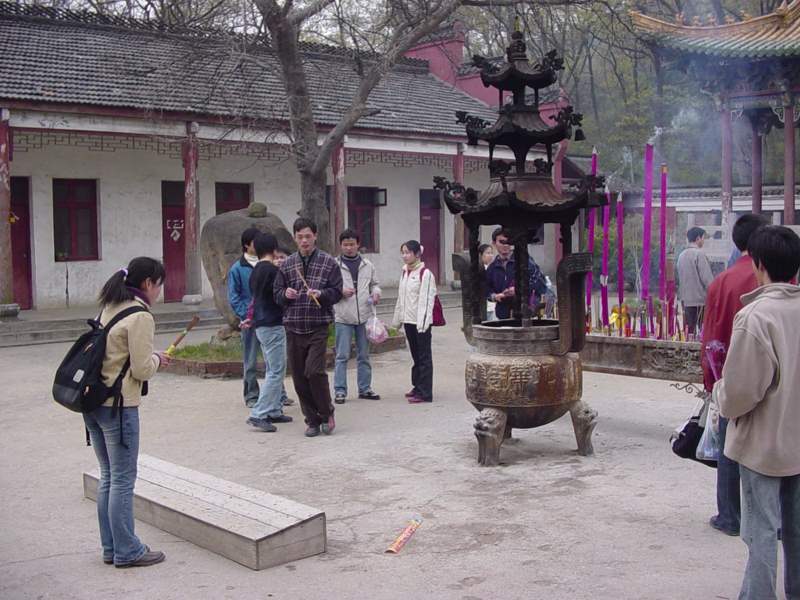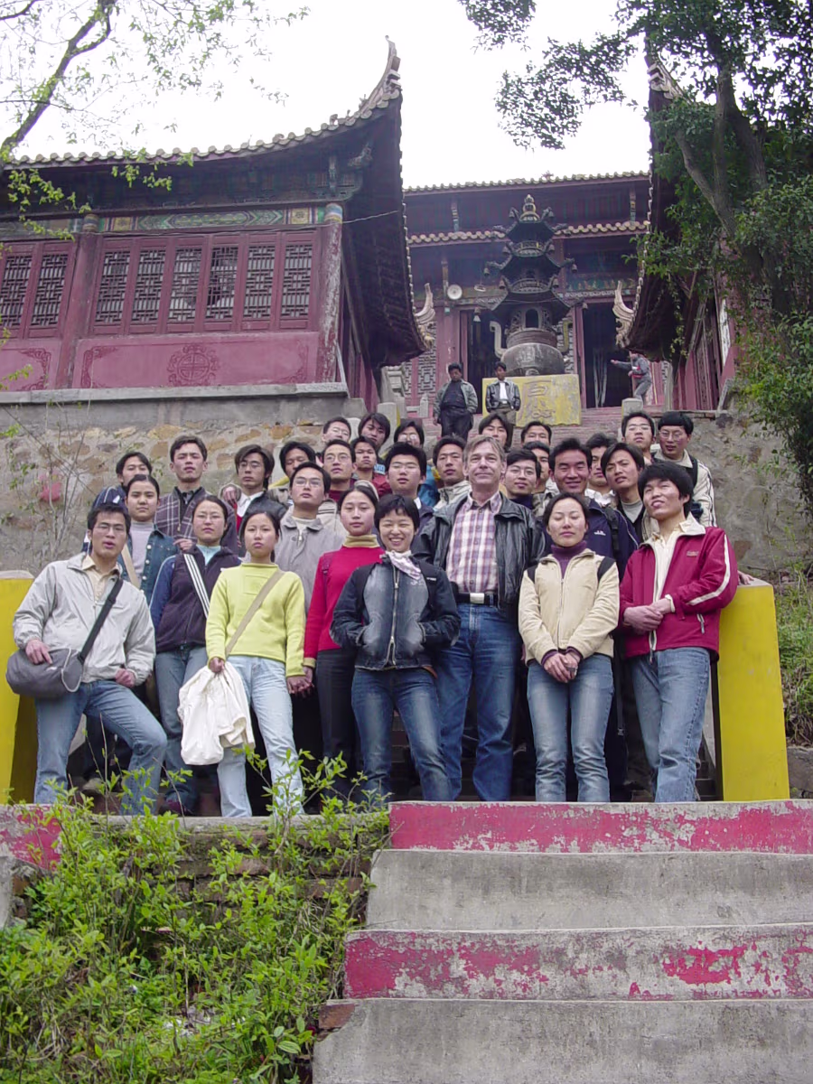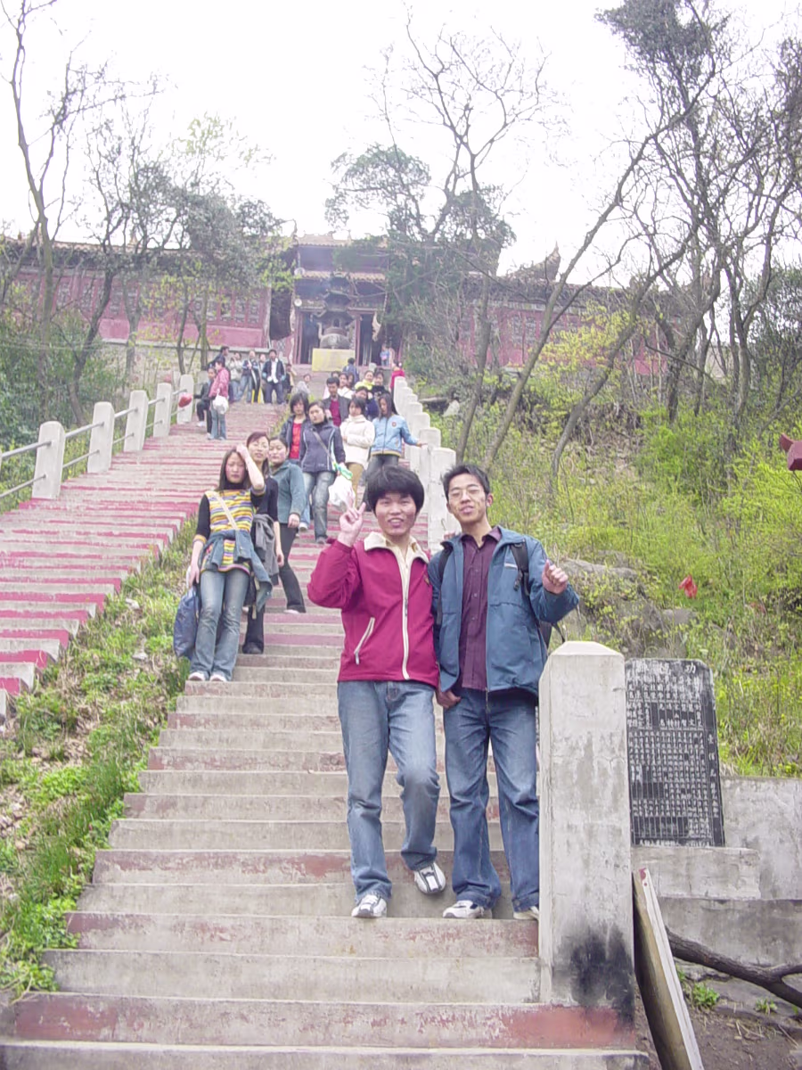 The group as our day begins. Statue inside one of the Temple Mar 2004-s. Praying for an easy climb! They are good friends. The thousand eye and hand Buddha. A long climb ahead. But I'm ready! Explaining the tablet to me. But now I forget... We're ready to go further now. A shy girl. Finally, the top of the stairs! Everyone is here now. The 'Forbidden Buddha', no pictures allowed. Yangtze River from the top of the hill. Looking in another direction. It was a hazy day. One other look. No, they're not horns. Power Lee the King of the hill! The whole crew. Just the teachers. Labels TVU Sports DayOuting to Caishi