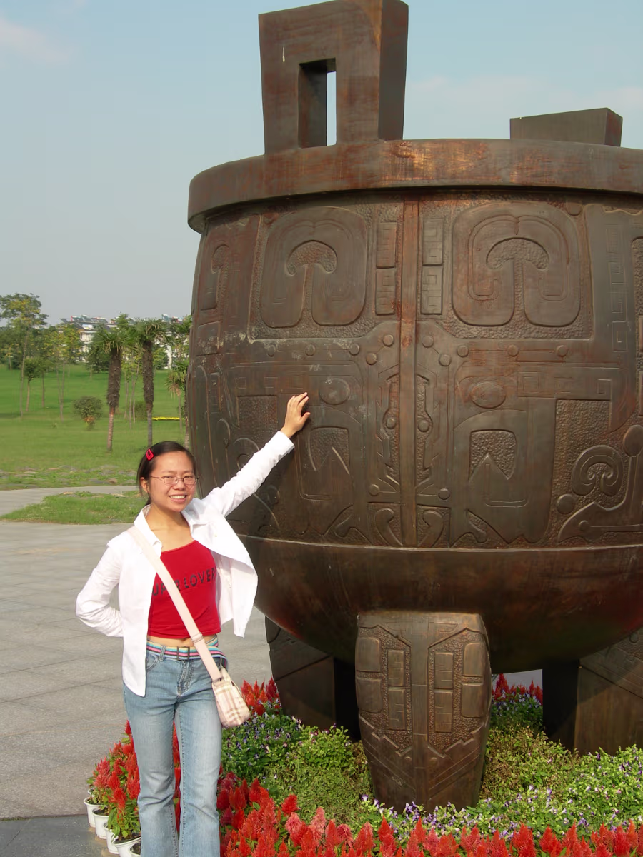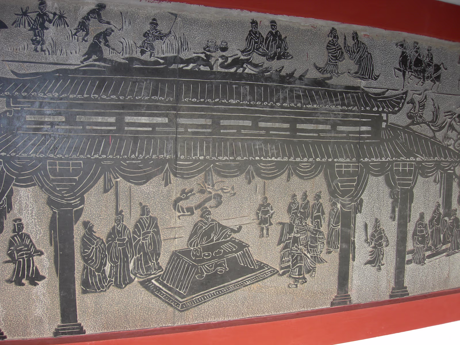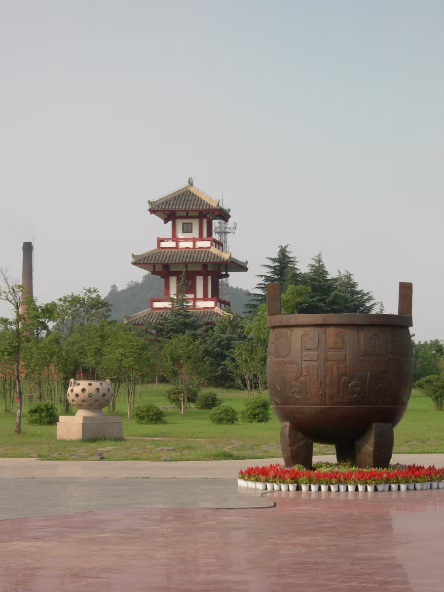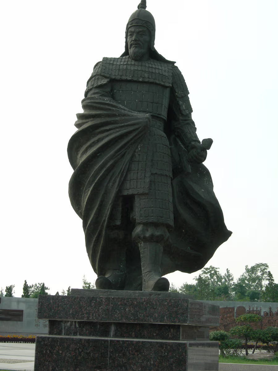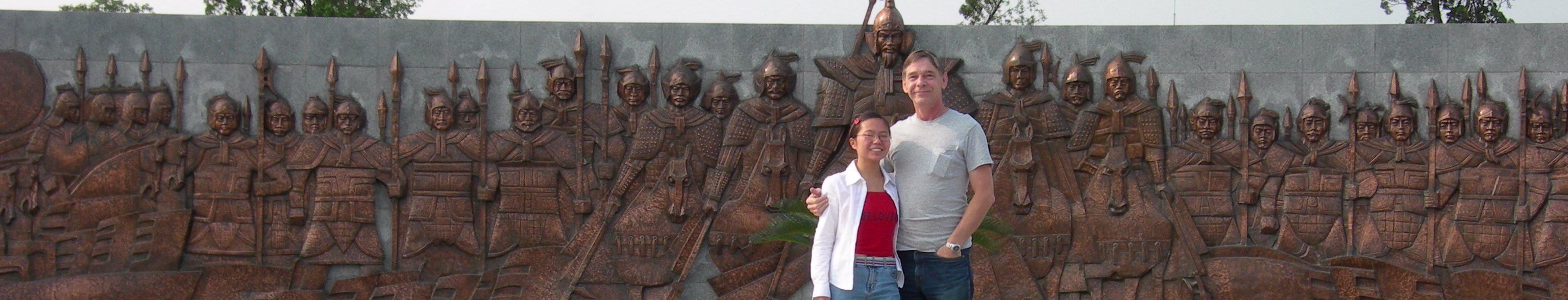 In front of the relief showing Zhu Ran's victories. Hanhan and a 'lucky' mascot. Chinese old coin and modern miser. The perforated stone thing is an incense burner. Hanhan and the map of China during the three Kingdoms period. The bronze pot is also called a wine cup. Panel 1 of 4 Panel 2 of 4 Panel 3 of 4 Panel 4 of 4 The General, Zhu Ran. At the museum of Zhu Ran artifacts. Going inside. View back towards the park from the museum grounds. Zhu Ran's coffin. This site is his actual burial ground. The writing explains when it was found and its age, 1735 years old! Zhu Ran giving respect to his teacher. Practice makes perfect. And Zhu Ran was going to be perfect. Zhu Ran becomes an officer at 19. Zhu Ran returning from a victory. Labels Friend's Visit