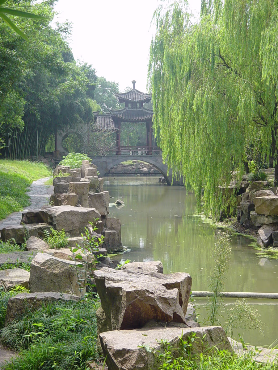 A beautiful scene that represents the entire park well. Inside a small garden that is walled by 300-400 year old stone carvings. Inside the same garden. Cool statues just hanging out in the grass. One gate to Taibai Tower area of the park. Same gate but suddenly with two vases inside the door. Taibai Tower area. One of the many sculptures on display throughout the park. Sentai Tower. Built in Ming era, and rebuilt after WW II. Has a commanding view of the whole area from high atop a bluff on the Yangtze River. A ceiling panel inside Sentai Tower. Heading for Sentai Loft. Getting closer. This was on a rickety cable car, like a ski lift. Labels Ma'anshan ApartmentCaishi Mar 2005