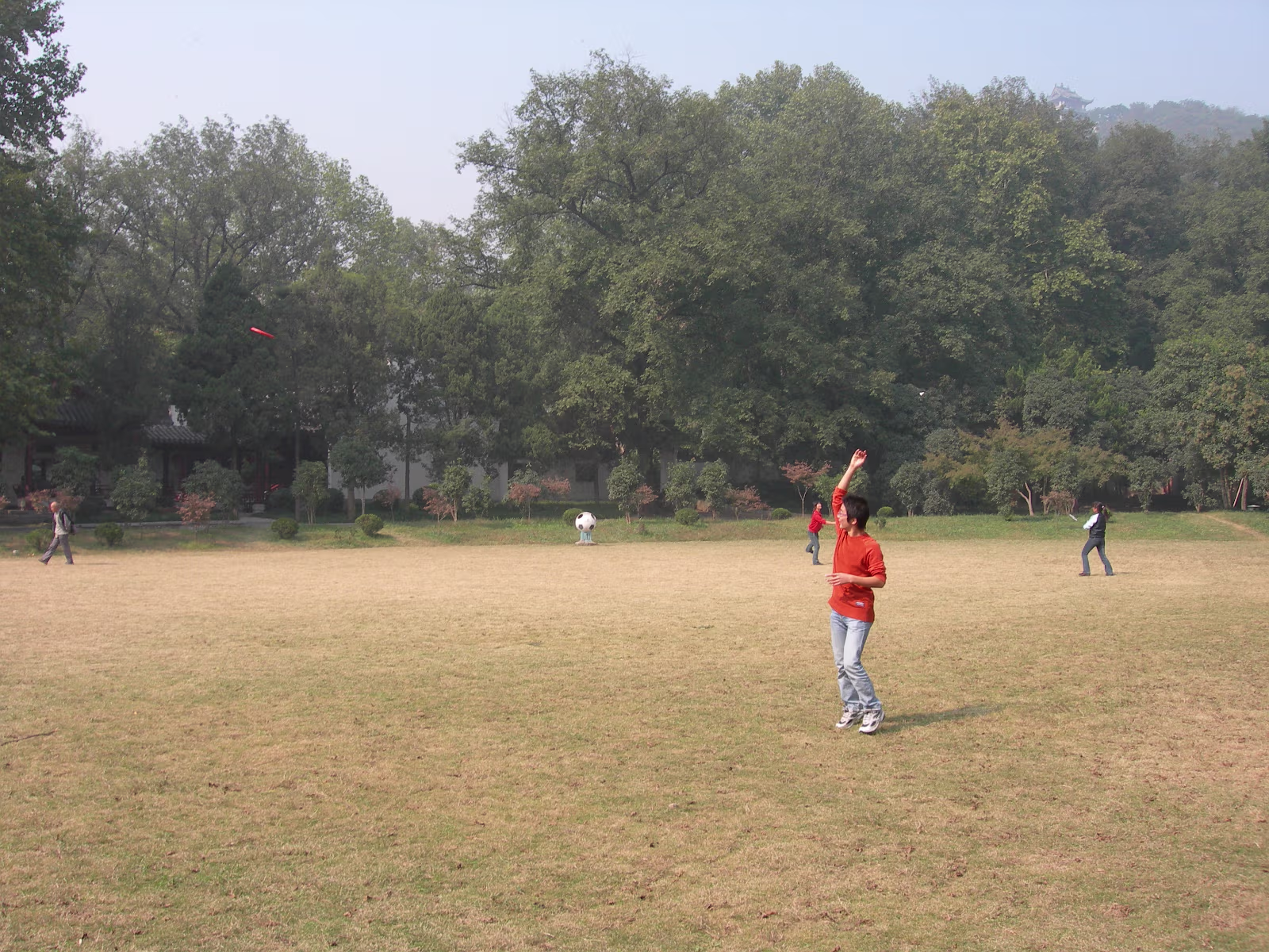 A group photo to start the day. I just liked this scene, Caishi is a beautiful place. Dragon Boats, there will be a race later. A student singing the racing song. Preparing for the race. Two of the teams competing. Note the drummer in each boat. He sets the pace of rowing. Me, getting ready for my TV interview on the Poetry Festival activities. Antique stone inkwell made from stone only found in Ma'anshan. Typical ancient scholar's writing room. A male stone lion. They are always on the right when you face the door. Some of the group in the bonsai garden. Our class picnic. Too much food, but we ate it all anyway! Playing Frisbee is always fun. Hanhan is dangerous when throwing a Frisbee. Duck! Dragon boats docked after the race. Me and Hanhan at the Li Bai museum. Detail from the top of the museum. The stone figure is a failed assassin of an Emperor. Me, students, and the Festival mascot. Nothing says 'poems' like a big golden carp... Labels Temple Outing