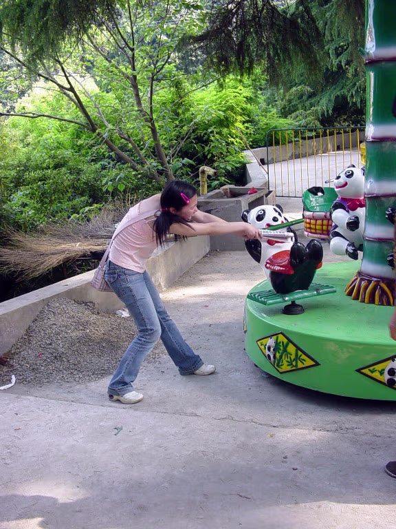 Giraffes getting ready for a nap. Hanhan and her new friend. She had never petted a horse before. The white tigers are prowling before lunch. Lousy lion took my Pepsi! These white tigers are lazy. A lion and tiger playing follow the leader. The lion thinks he's hunting. Hanhan fighting for bamboo! I liked this exhibit best. She's the Queen of the hill. 'Bear'back riding. Having a little fun. Labels Space Museum