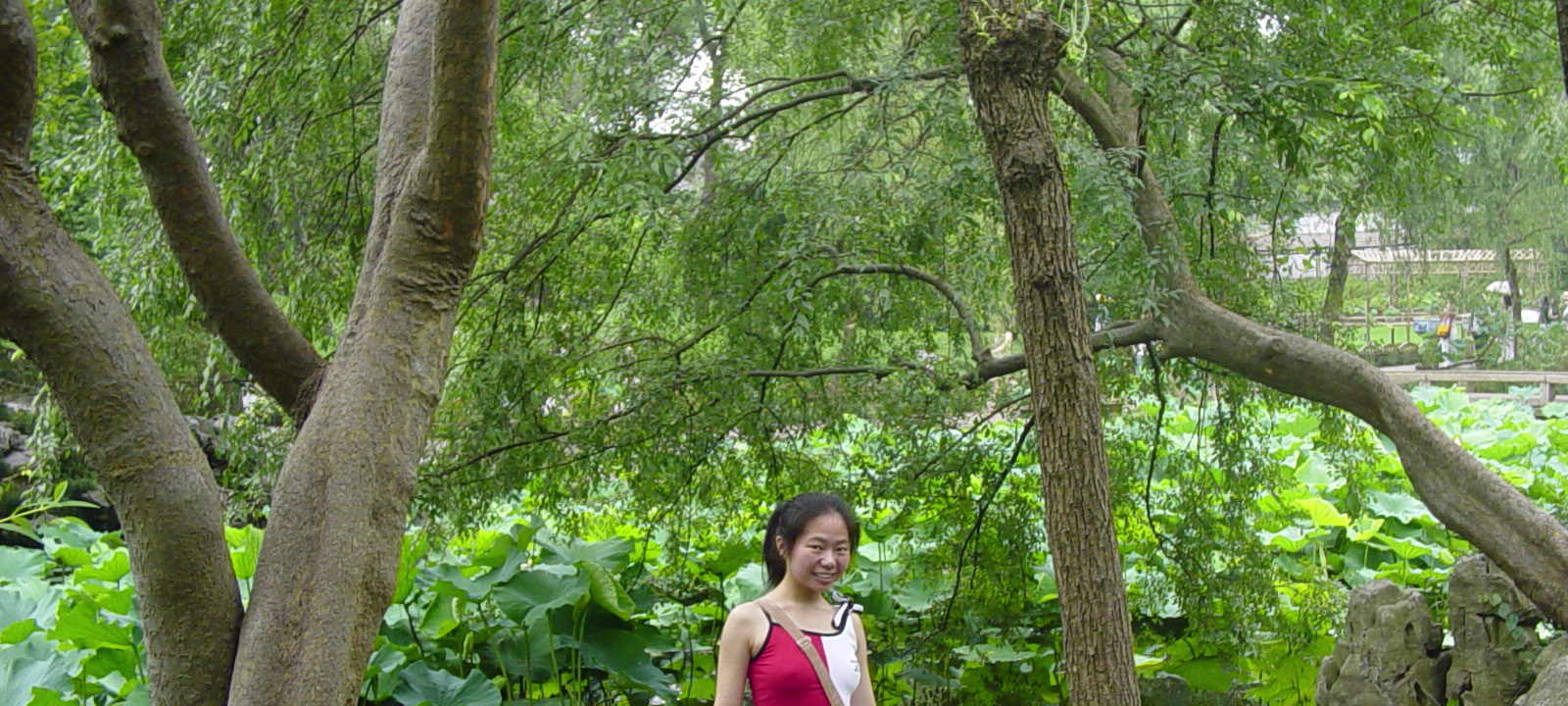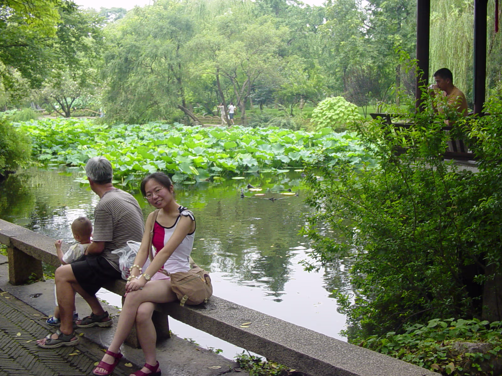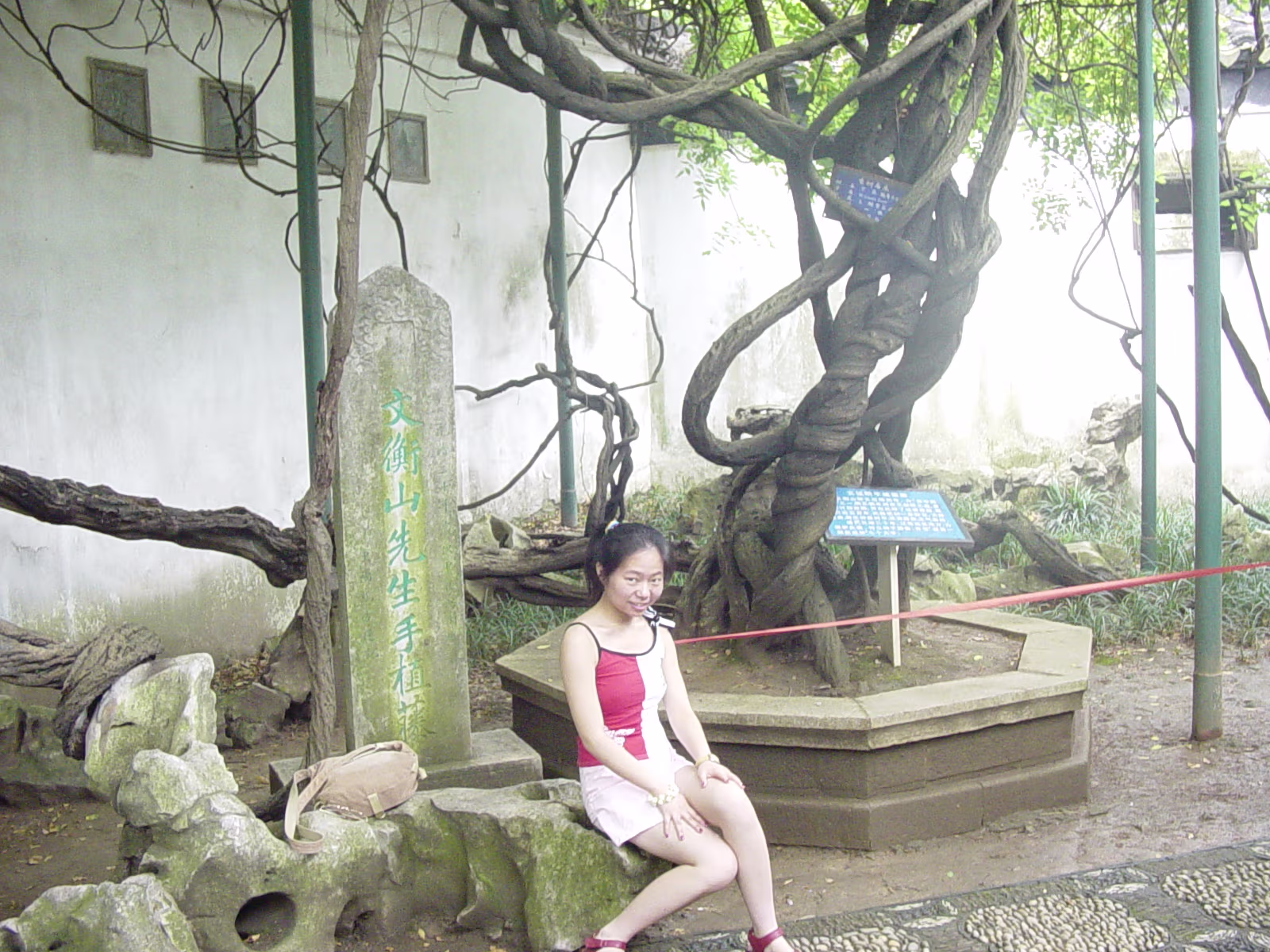 600 Year old tree and Hanhan. 600 year old guy. The largest indoor opera stage in Eastern China. Emperor & Empress Pool between 2 halls of the administrator's house. Nice pool and nice girl. House with well at Humble Administrator's Garden (H.A.G.) Lotus pool. Lotus flower girl. 'Smell rice' hall. 'Smell rice hall' wooden screen with carvings showing life at the time. Hanhan with lovely drinks! Hanhan with her snack. Another lotus pool with bent trees. Stones from Tai Lake. A pavilion in the garden. A lotus blossom floating in the pool. A round door is to frame the following 'scene'. Carvings on the furniture in house shows cooking utensils. Lotus blossom panels with 'cracked ice' inlays for the windows. Labels Shitai Aug 2005Suzhou Oct 2006
