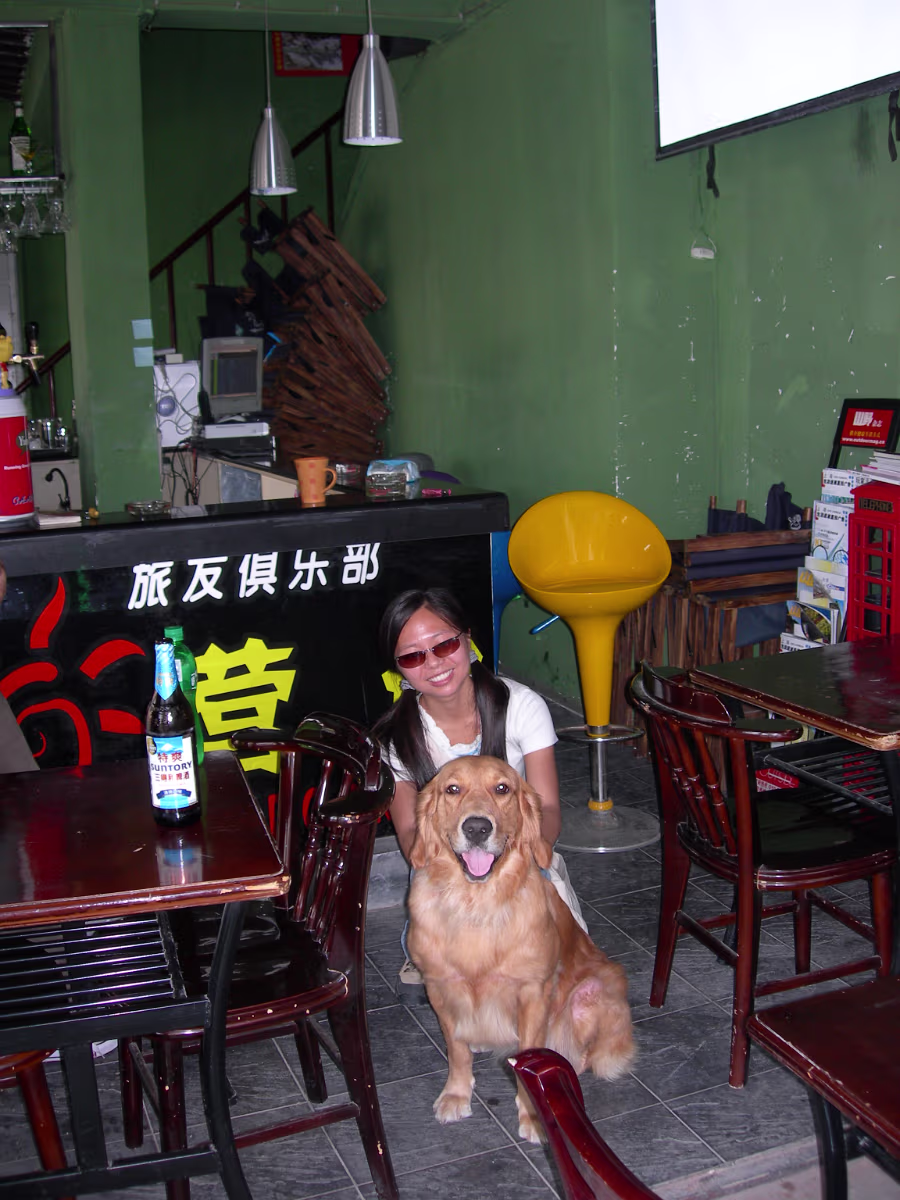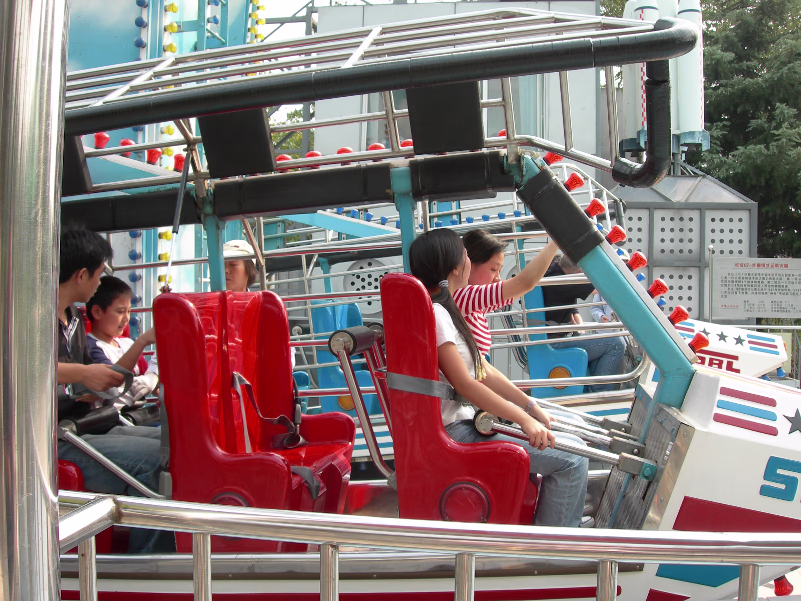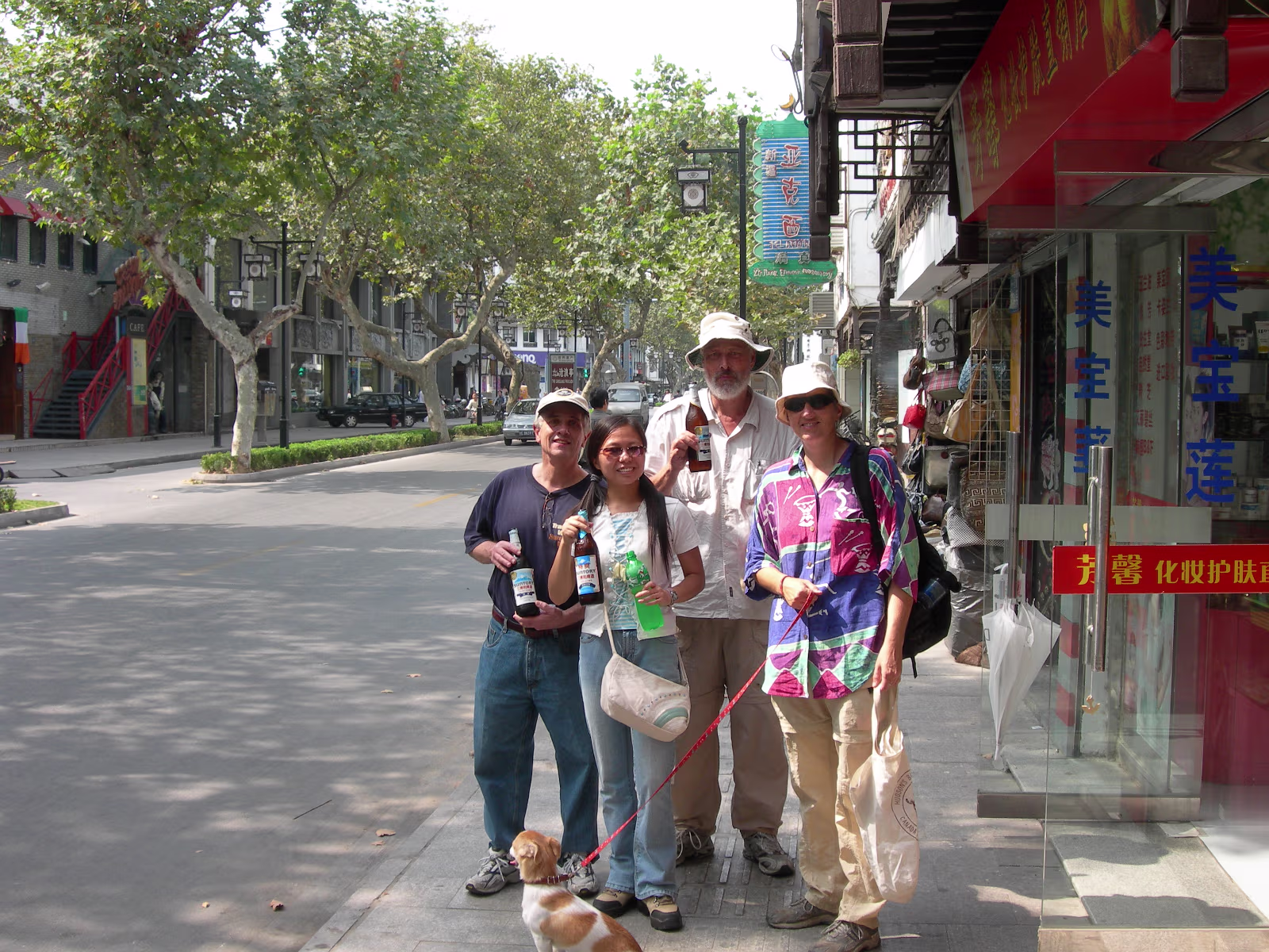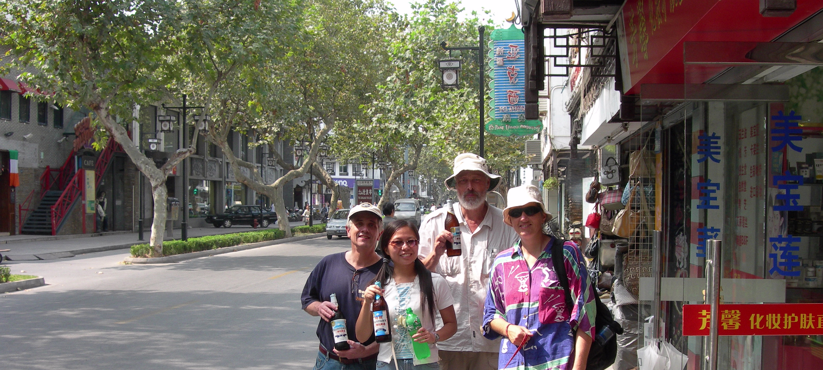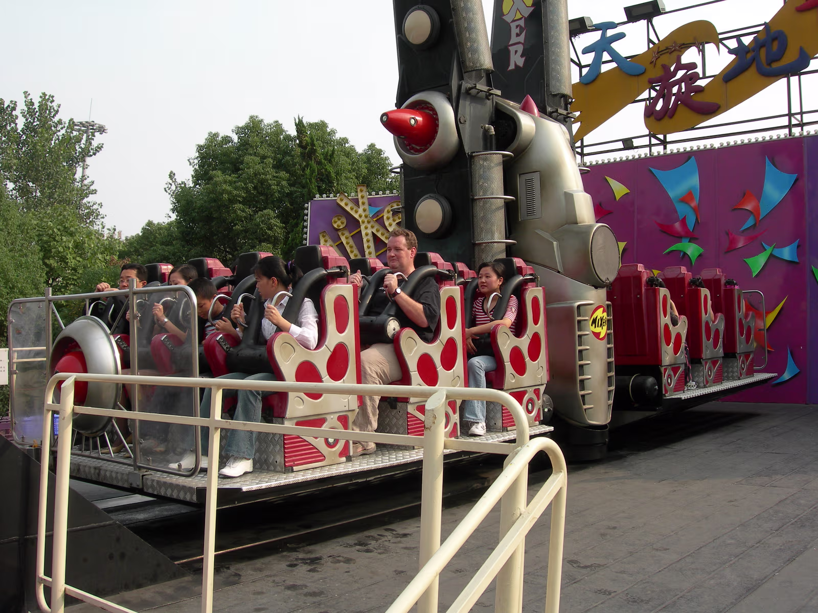 Typical foreigner image. Willie, Hanhan, David, and Ruth. Gogo too. Our day at Suzhouland ends, this is a good motto for the place. Hanhan and Happy at the Outdoor Bar (We call it the 'Dog Bar'). Entry to Suzhouland. Starting down the main street of Suzhouland. Screaming, but having a great ride! Hanhan getting ready to take the first ride of the day. On the Shenzhou VI! Ride is underway now. Hanhan and the park's mascot, Sudi. Tony, Ben, and Hanhan having an accident on their mighty steeds! Hanhan has killed her giraffe. Hanhan just got her wings. She's asked for these more than a year. Two angels, Hanhan and Willie. We have a problem Houston. Upside down and rotating. Not for me, but Hanhan loved it. A rest stop on the way to the roller coaster. What happens when a shark attacks an angel? A nice shot showing the roller coaster and the mountains behind it. Me, Hanhan, Willie, Becky, Tony, and Xiaohua hurtling towards our doom. An angel and his kitty. Labels Suzhou July 2004Wuhu Photos