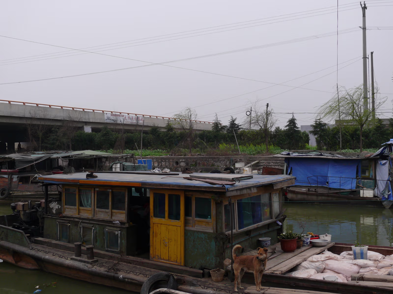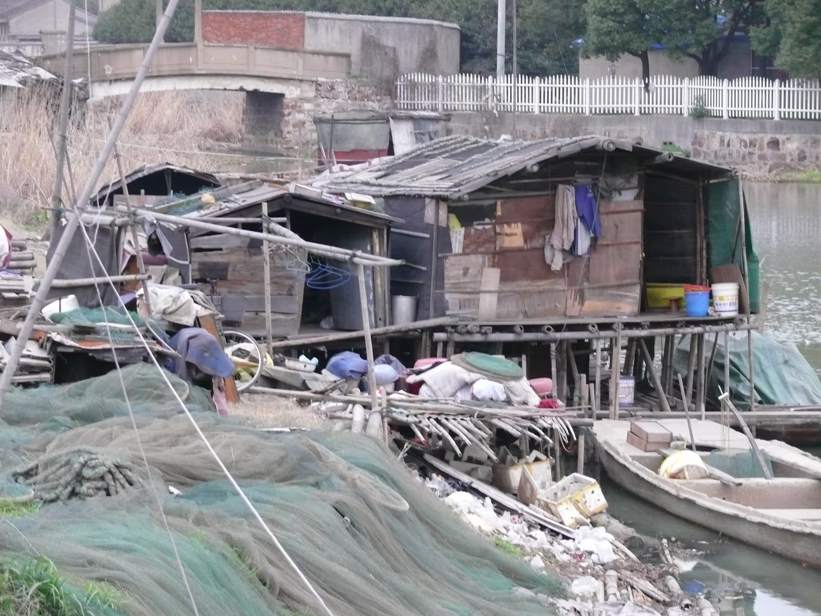 We arrive at a wetland and boat dock on Tai Hu. Down the dock to check out a couple of boats. A good example of the boat we're looking for. A fishing junk. Note the pile of green nets on the bow. A little row boat. This is much more our speed. People were burning off the brush and the wind was about 30 MPH. We found the Wuxi municipal water intakes further down the shore. Hanhan on one of the intake pipes. Not supposed to disturb the area, but who cares? A working junk on a canal. We're going to board her. The junk owner, Mr Ding, and his oldest son. Very nice people to let us in their boat/house. Heading to another area, this coal hauler wanted to pose for me. A good shot showing the difference between 'have' and 'have-not' in China. The shacks where we will ask about boats for sale. A good look at how people live on the water around here. Labels Christmas 2006