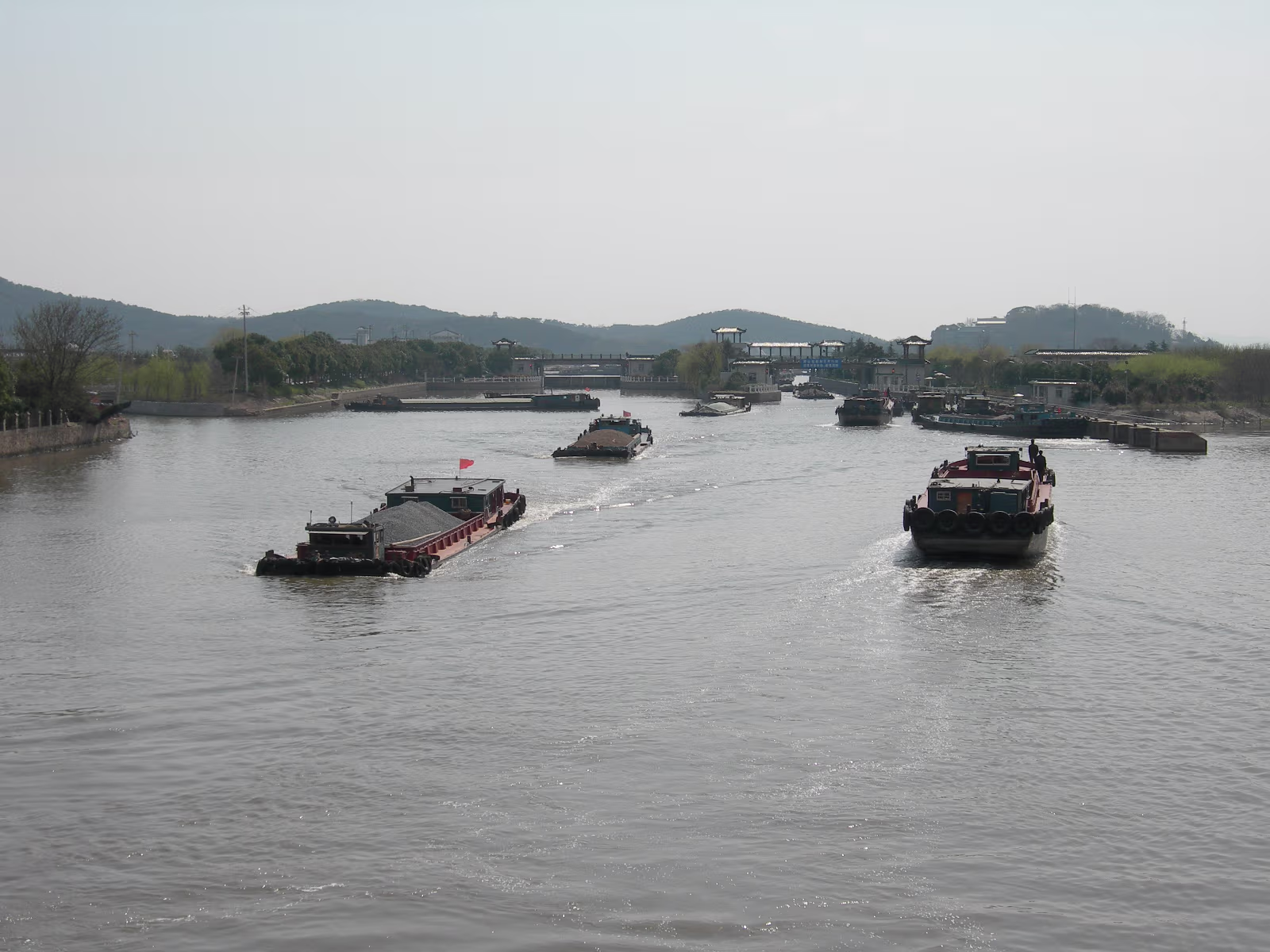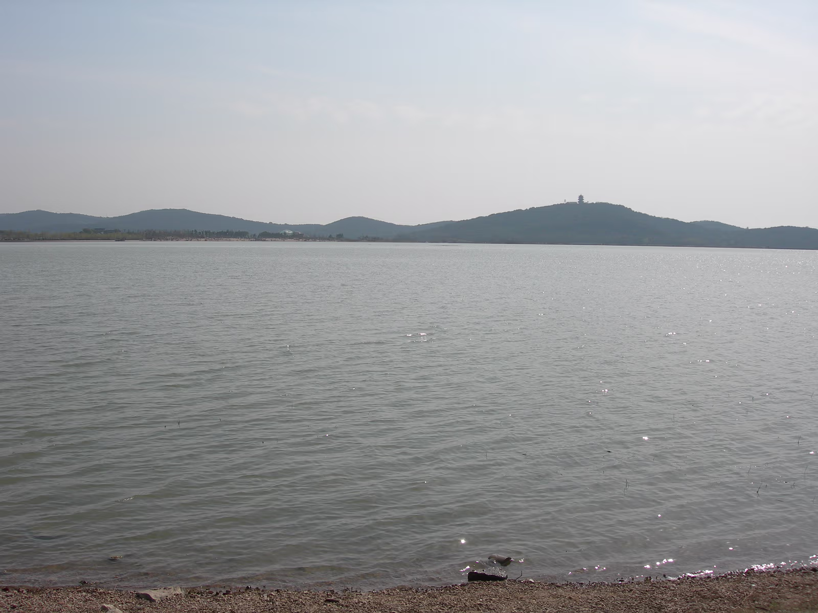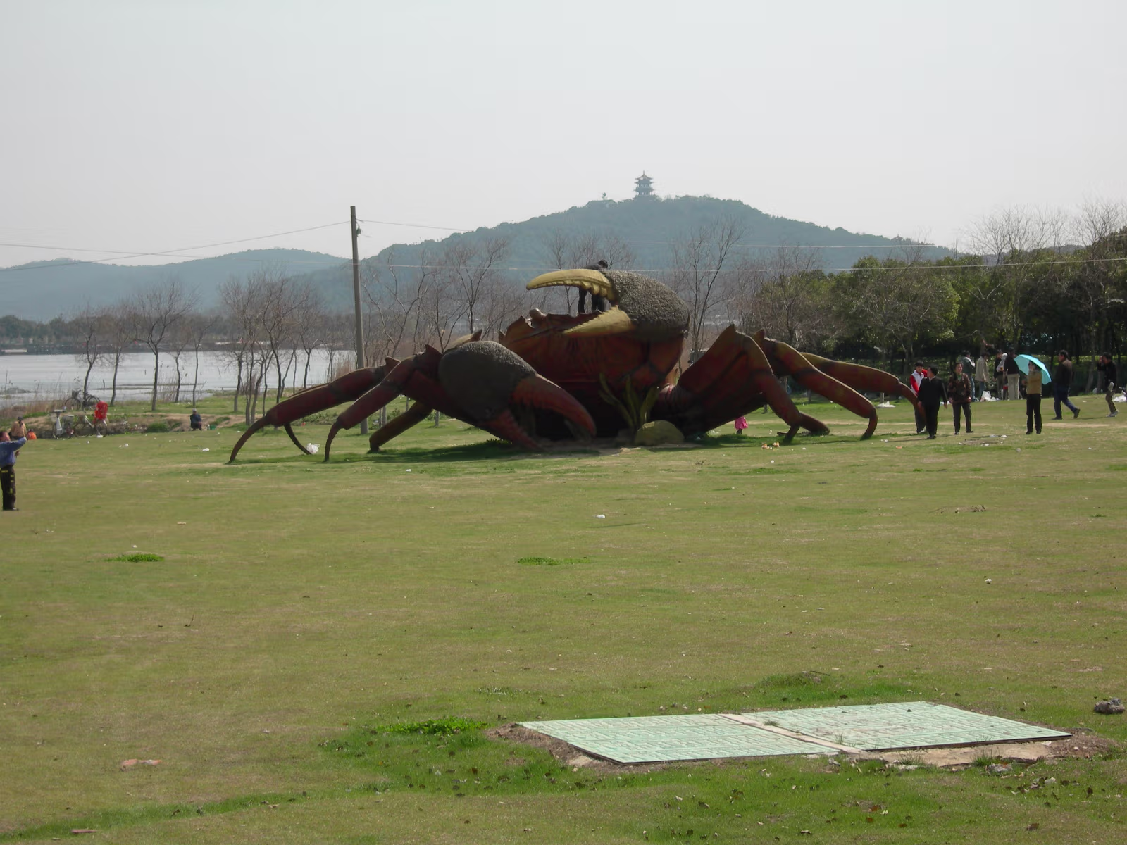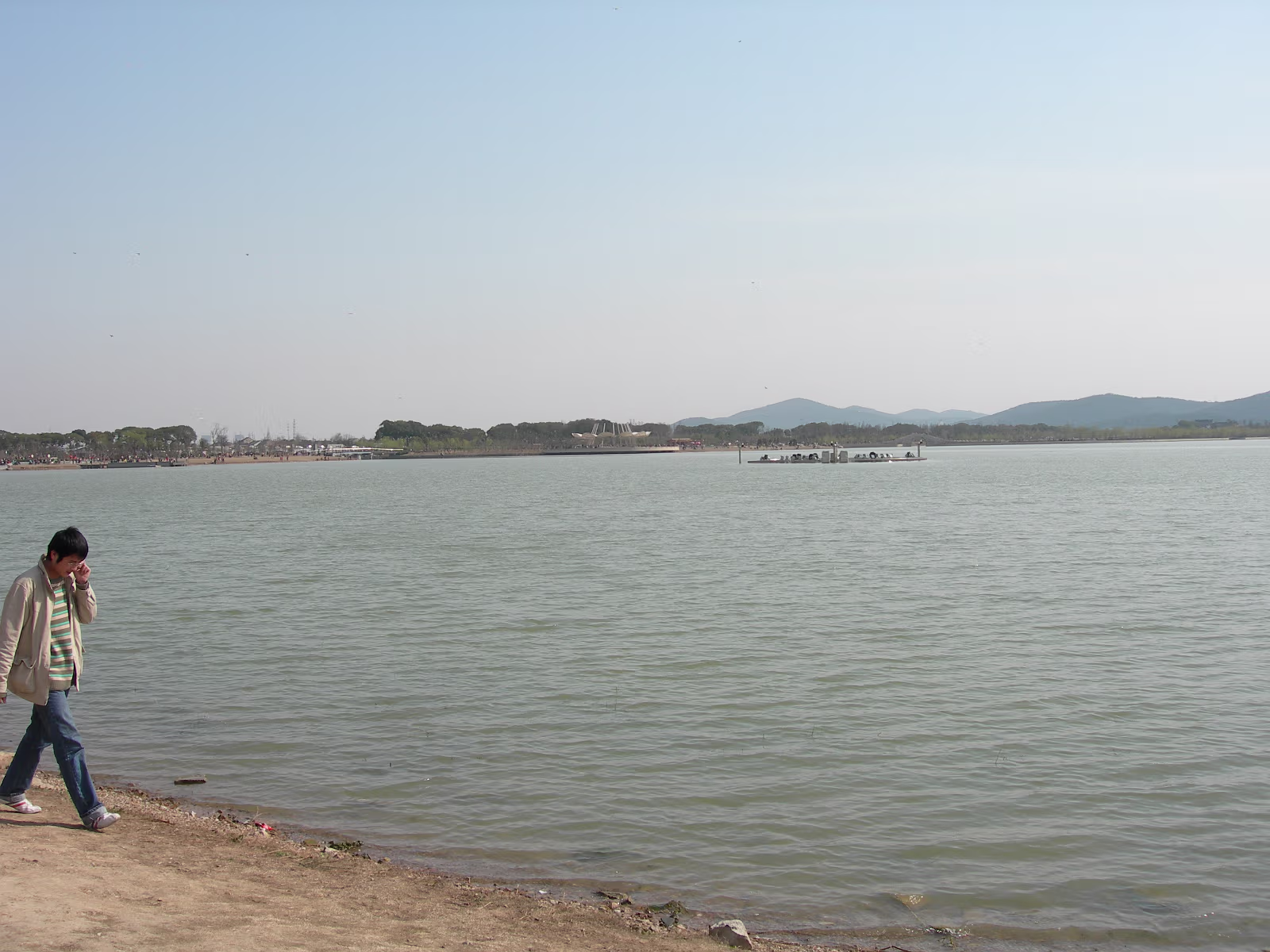 The crabs grow big here. Really! Barges carrying sand and gravel up a river are a common sight. Hanhan enjoying a beautiful spring day. Looking out across Li Lake. A fountain in the lake with a swimming beach in the background. Labels Places I've LivedLing Shan Buddha Site