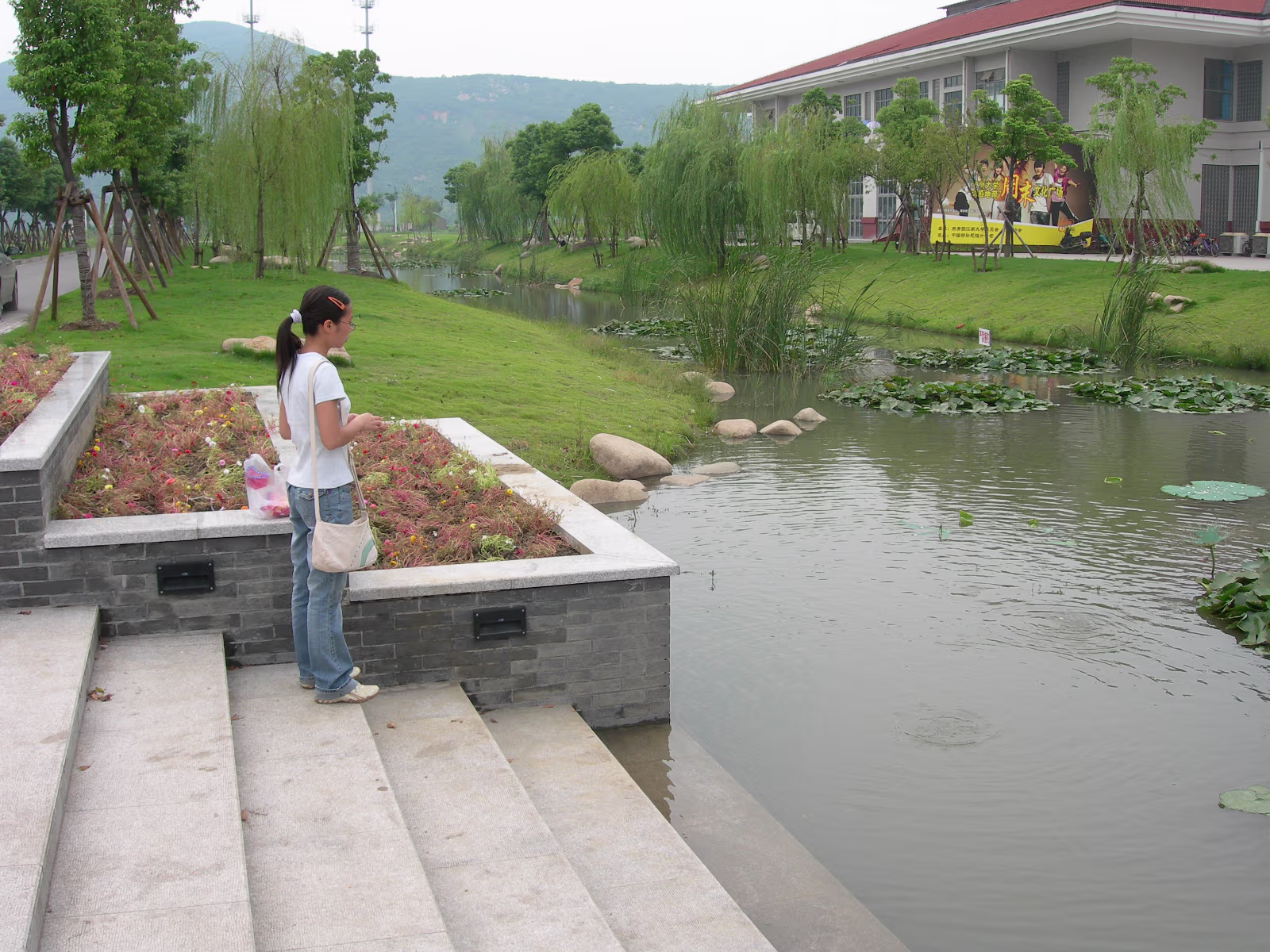 This is a plaza on the west side of the campus. Dorms, shops, snack shops, etc. We come here often to hang out, have a beer, and just watch the world go by.