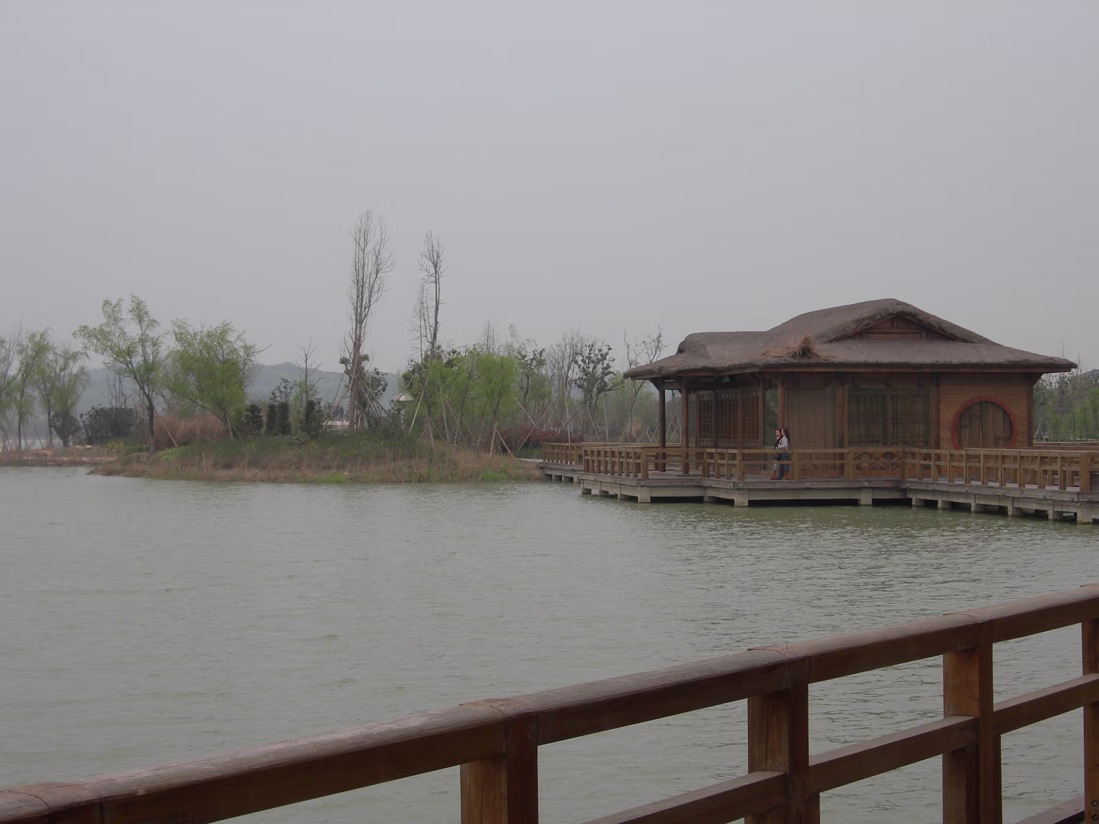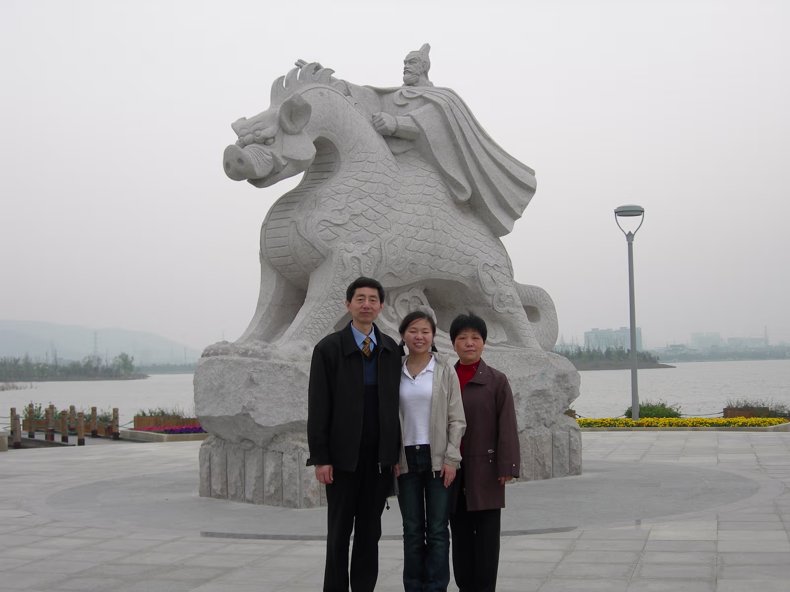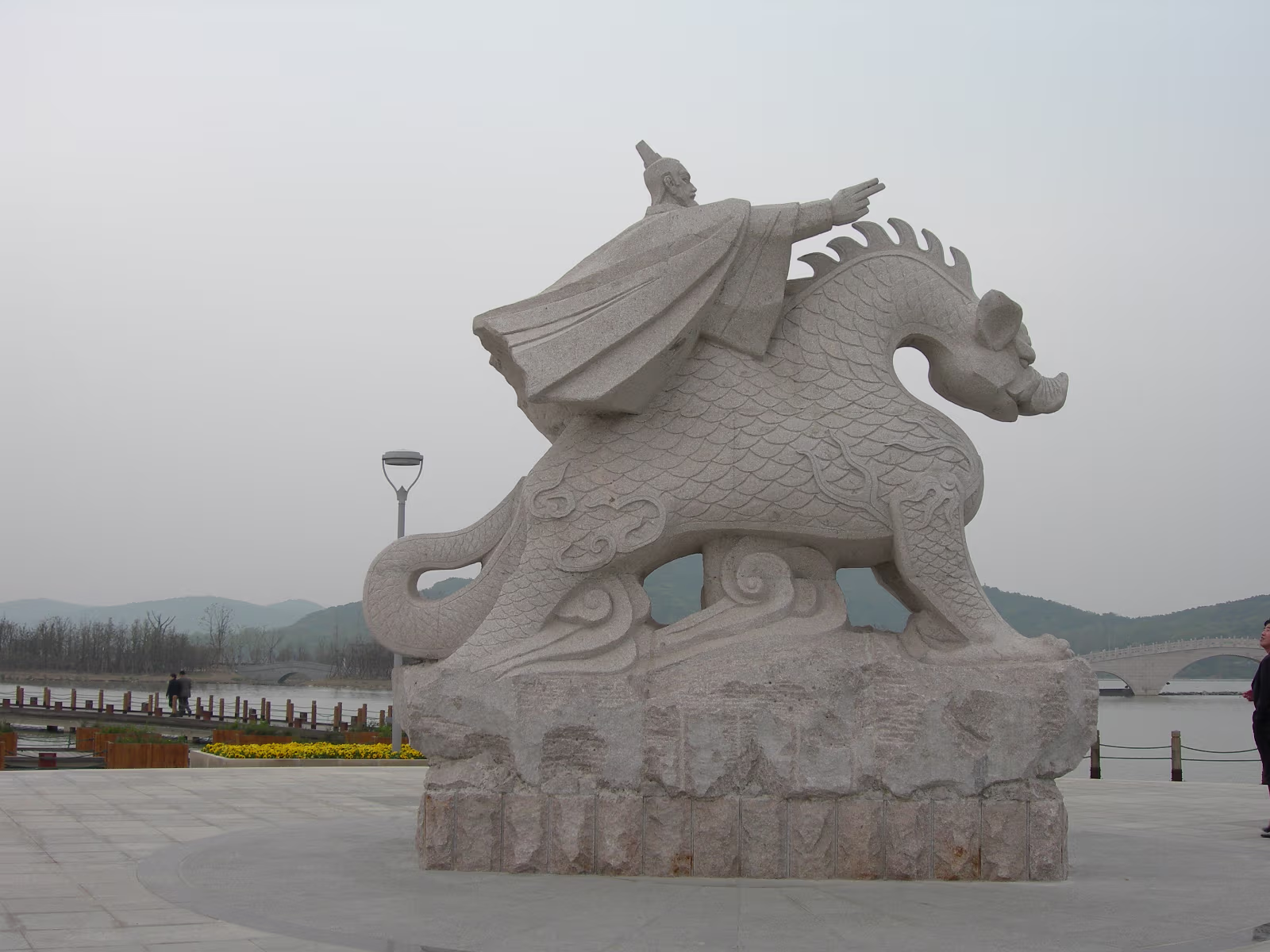 At the Bo Gong Island park entrance. You wouldn't know you're on the edge of a city of 5 million. Hanhan amidst the bright green of Spring. Hanhan's mom at the rail while we take a rest. A teahouse on the lake, another common sight. Hanhan in a favorite pose. View across Tai Lake to Turtle Head island and mountains. Holding on tight against the wind. It is always windy here in Wuxi. A nice pavilion for picnics. Bo Gong and his enchanted steed. Engraving of the story of Bo Gong controlling Tai Lake flood waters. Hanhan and 'The animal that does not look like any animal' It has a pig's nose, dragon's body, horse's tail, and donkey's ears. The 'Chicago' teahouse. Nope, I didn't visit, never heard of Chicago tea. Labels Spring Festival 2007Turtle Head Island