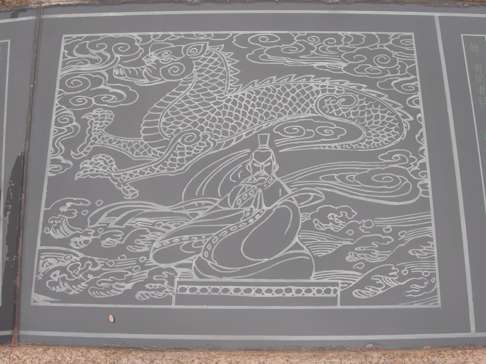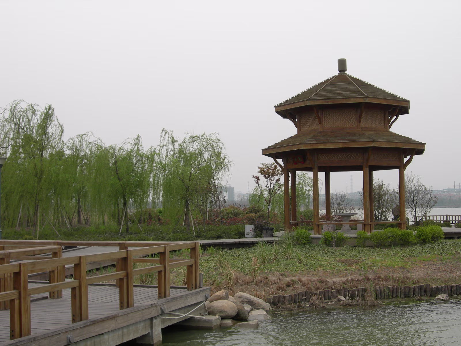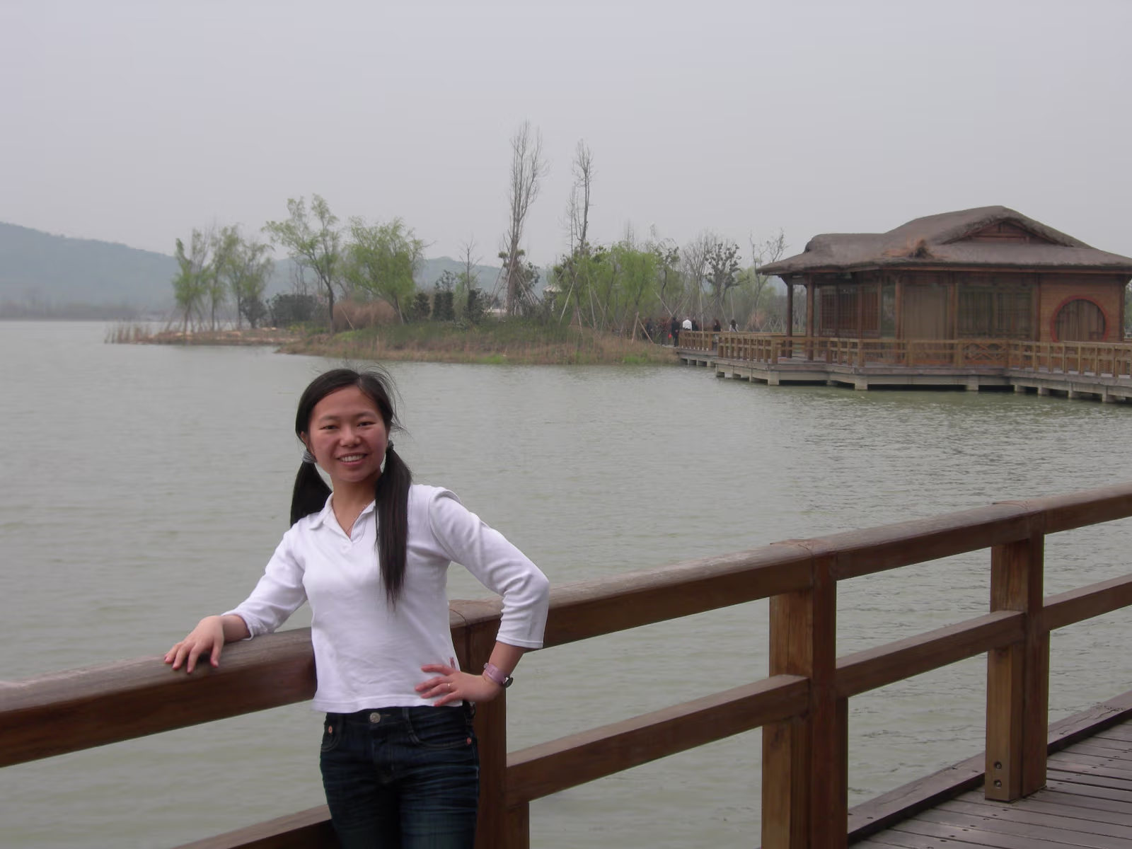 At the Bo Gong Island park entrance. You wouldn't know you're on the edge of a city of 5 million. Hanhan amidst the bright green of Spring. Hanhan's mom at the rail while we take a rest. A teahouse on the lake, another common sight. Hanhan in a favorite pose. View across Tai Lake to Turtle Head island and mountains. Holding on tight against the wind. It is always windy here in Wuxi. A nice pavilion for picnics. Bo Gong and his enchanted steed. Engraving of the story of Bo Gong controlling Tai Lake flood waters. Hanhan and 'The animal that does not look like any animal' It has a pig's nose, dragon's body, horse's tail, and donkey's ears. The 'Chicago' teahouse. Nope, I didn't visit, never heard of Chicago tea. Labels Spring Festival 2007Turtle Head Island