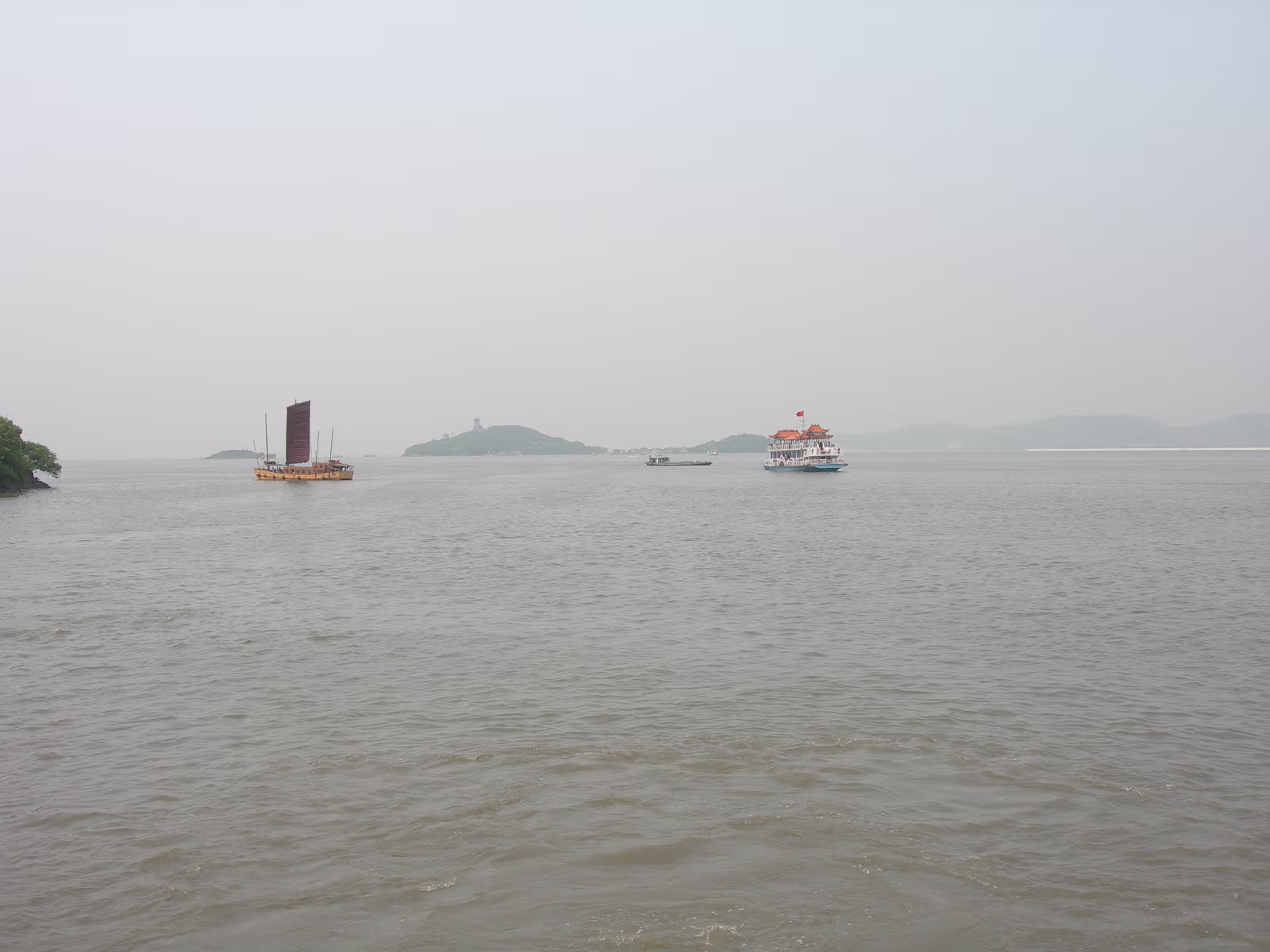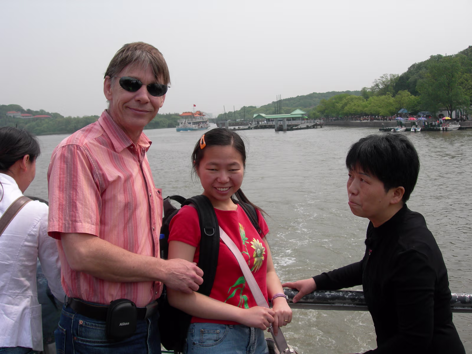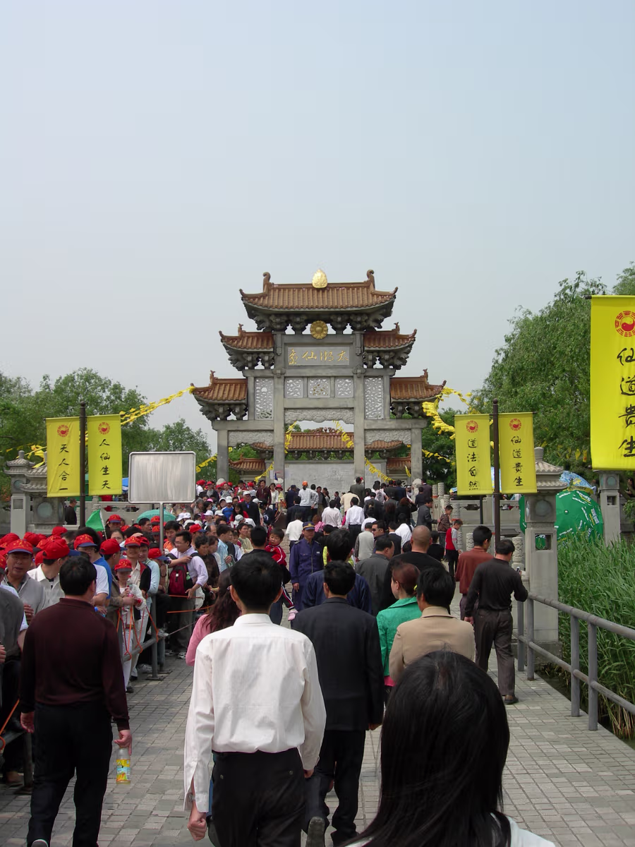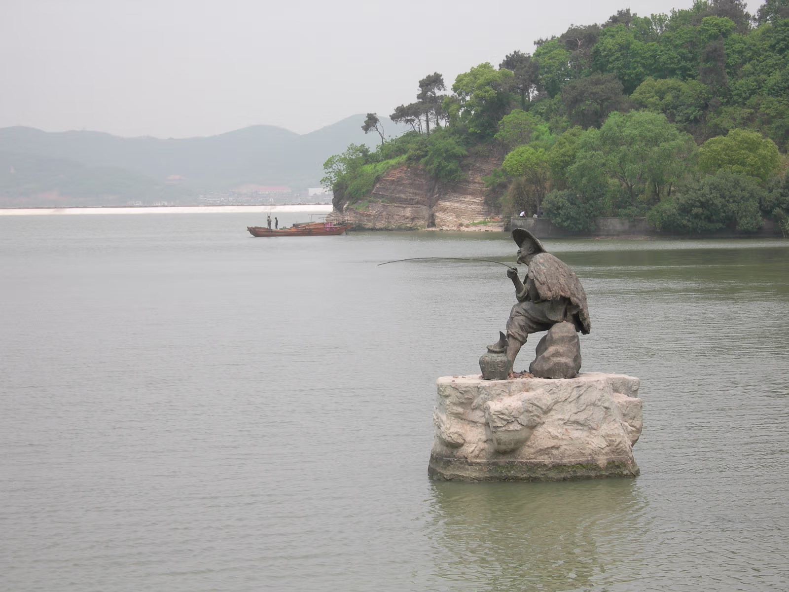 At the entrance to Turtle Head Island Park, the day begins. You gotta stop and smell the roses. Ok, they're not roses... A view from our boat to a small island on the way to the main island. I don't know what I've done! But I'm getting 'the look'. An ancient lighthouse. Still in use today as far as I can tell. A wealthy person's retreat. Isolated for sure. Our destination dead ahead. The Zhang Family on deck, ready for action. Entrance to Tai Hu Fairy Island. The Monkey King's birthplace. I like the Monkey King TV shows! An old ship on Tai Lake. Old women near Tai Lake. Ha! A stone fisherman with real fishermen in the background. 'Heart Lock' You have your names carved on a padlock and lock it here to seal your love. The Zhang family hearts need no lock to remain true. The matchmaker's temple. Lots of people take their sweeties here. Nearing a Daoist temple. Daoism was founded here on this island. Of course, there are many Dao sites to visit. The obligatory incense stencher. Hanhan's Dao guardian 'angel'. Guan Yu (Money God), very popular! Labels Tai Hu (Tai Lake)Xi Hui Park