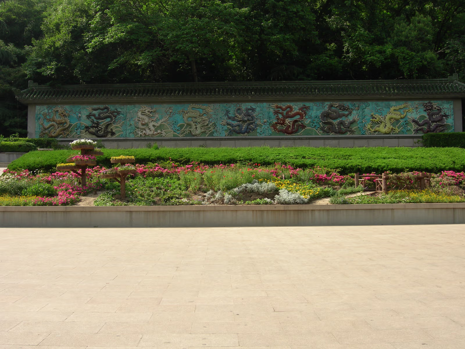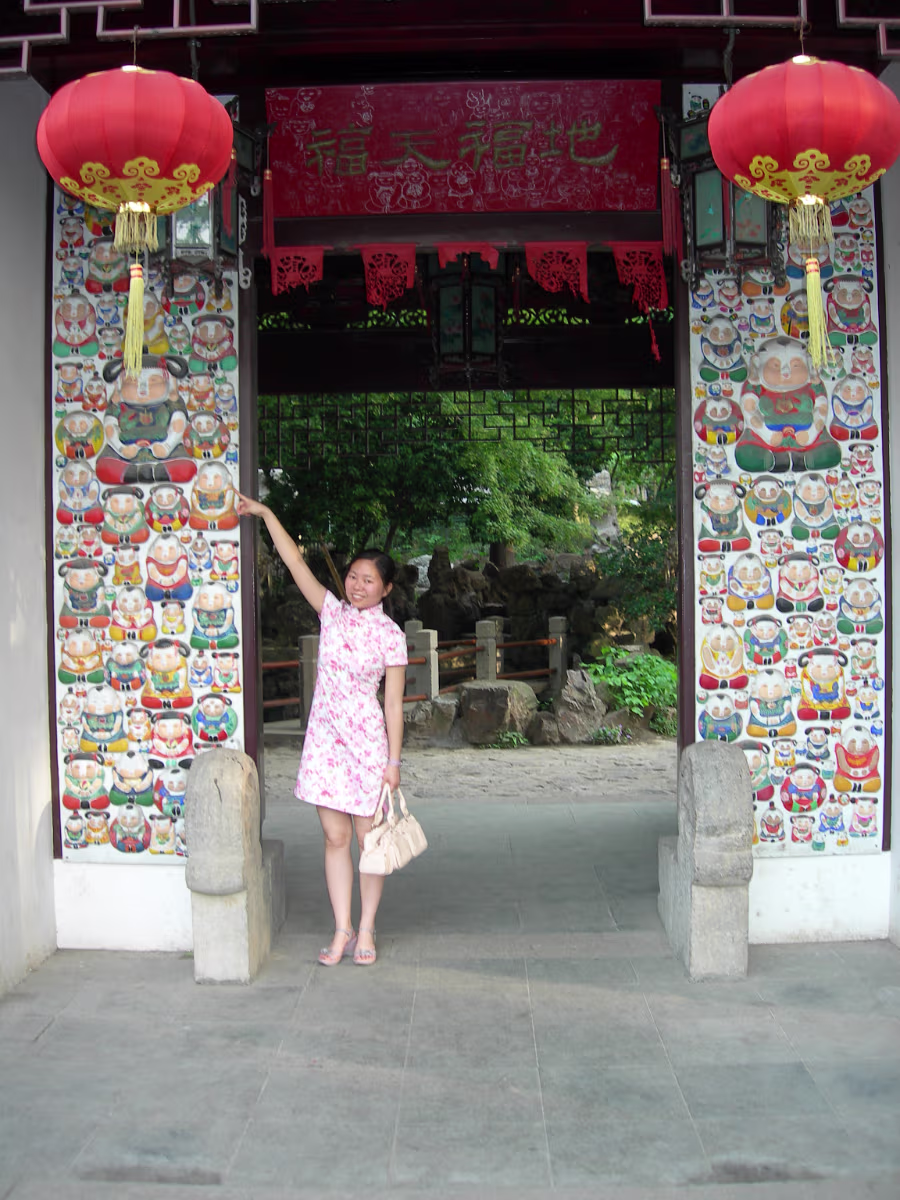 Hanhan in the Nine Dragon Plaza. The Nine Dragon fresco. This boy and girl will bring luck to lovers. A panda eating its bamboo. Sorry but the windows are filthy! A poor, bored tiger. Hanhan measuring the guards in front of the dragon's cave. One of the two springs where a famous Chinese song "Two springs Reflect the Moon" was written. The figures around the door are the famous Wuxi figurines. They are made from the clay found locally. The characters say "Temple for Obedient Children" Meant for adult children. This another of the two springs in the song. Labels Turtle Head Island
