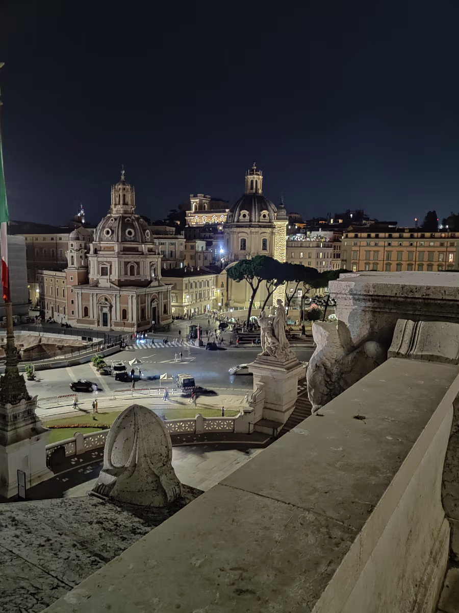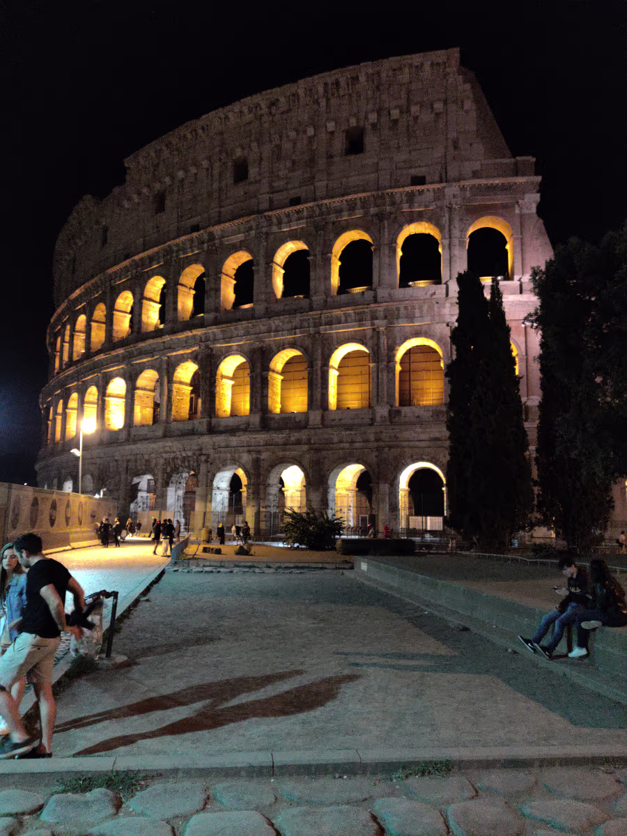 Taking the train from Milan airport to the central train station. Milan train station. Looks like the one from Harry Potter. First espresso and pastry experience. So good, we had many many more! Business class train to Rome! Traveling at 185 MPH! First monument we saw leaving the Rome train station. First gelato of our trip. We were walking to our hotel bags and all! Our very tiny room. The location was fantastic, about 2 blocks from the Colosseum! Roman Forum, right outside our hotel! After a long day's travel, we are in front of the palace of the first King of Italy. The front of the palace with the King on his mount. This Italian flag is in front of the palace. A view from the palace plaza. These guards are posted 24/7 for the Unknown Soldier from WW-I. First dinner in Italy. Dining less than a block from the ruins. Hanhan has the typical black pepper and Parmesan cheese spaghetti. It was too al dente. Gary went with a pizza. No sauce was present. If it were America, he'd send it back. Second gelato of the night. All gelato is delicious, The best is the one you are eating! We walked around the area after eating too much. The Colosseum by night is quite beautiful. Labels London and DoverSwiss Adventure 2018