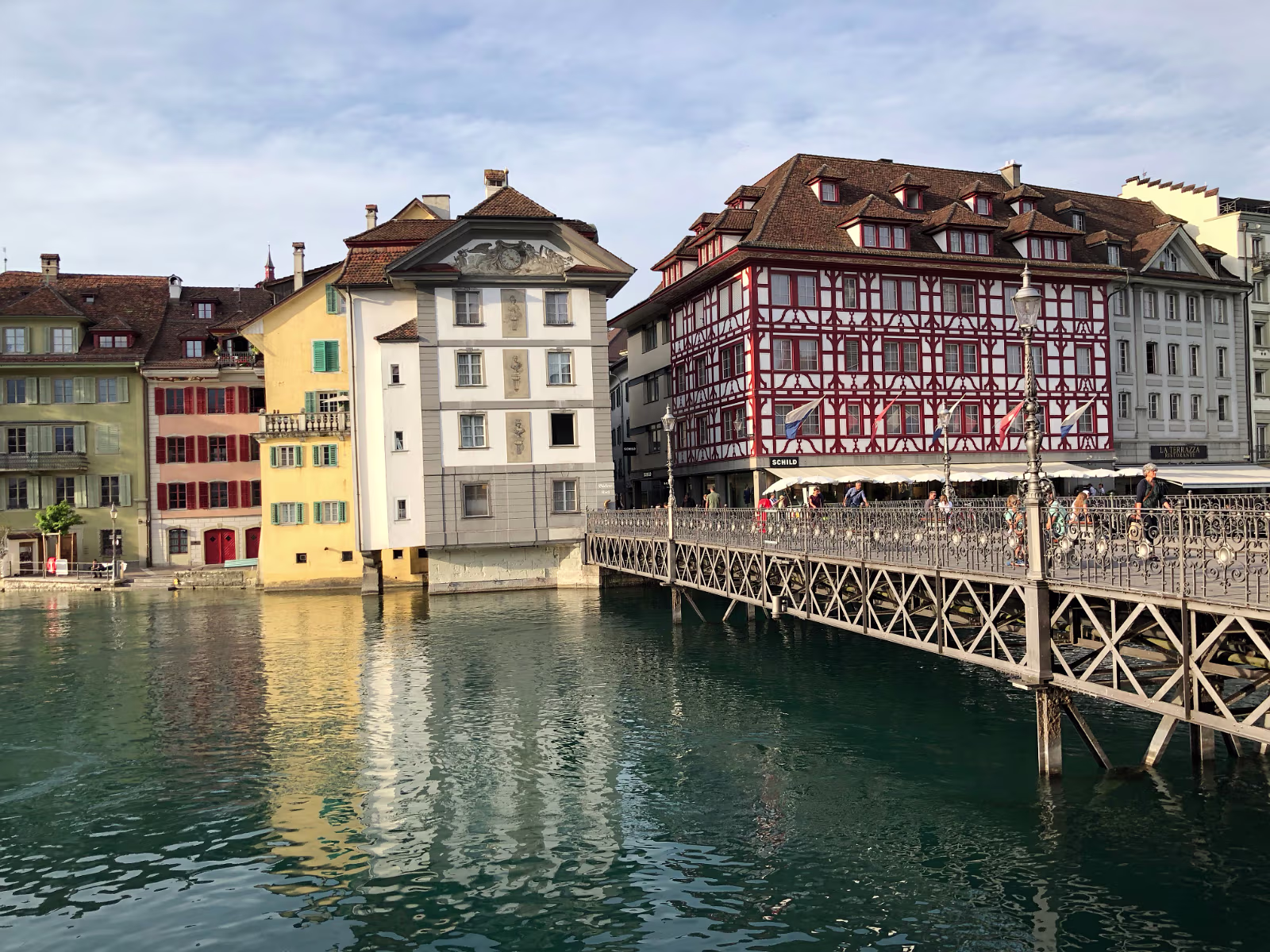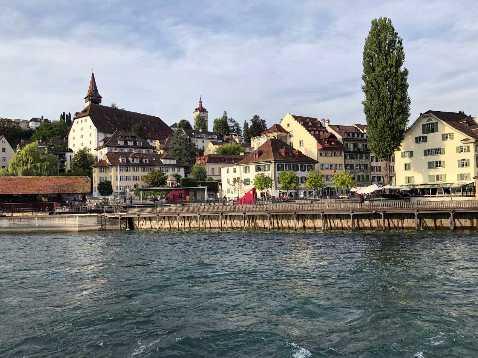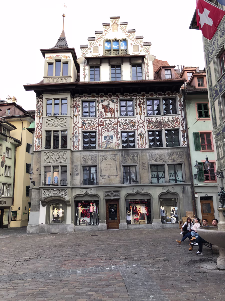 No matter where you look, the views are great. European/Swiss buildings, the defense and church towers, people strolling about.
