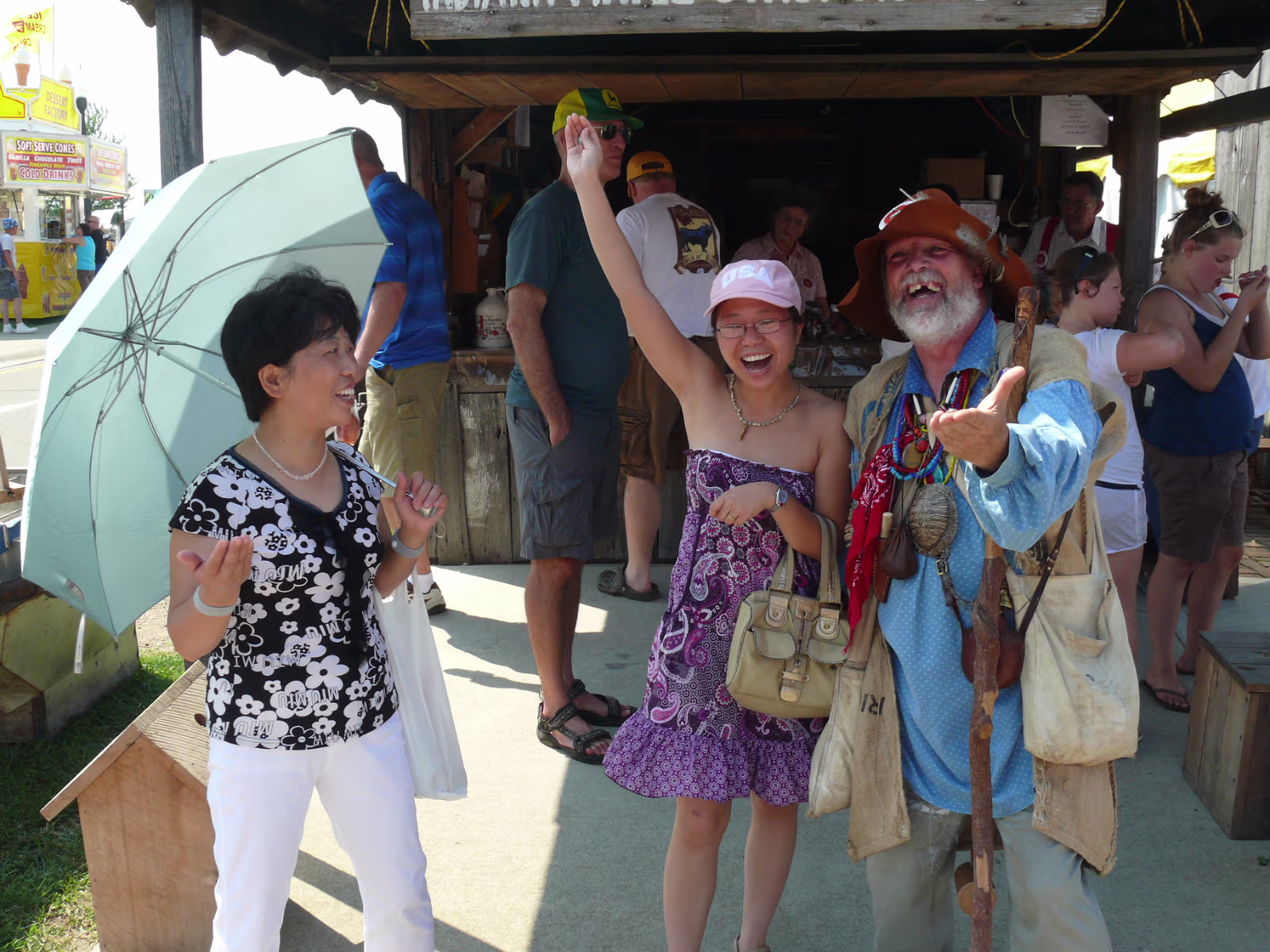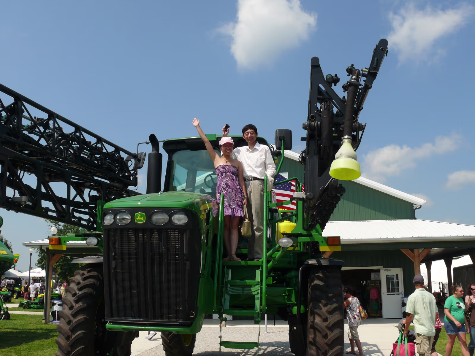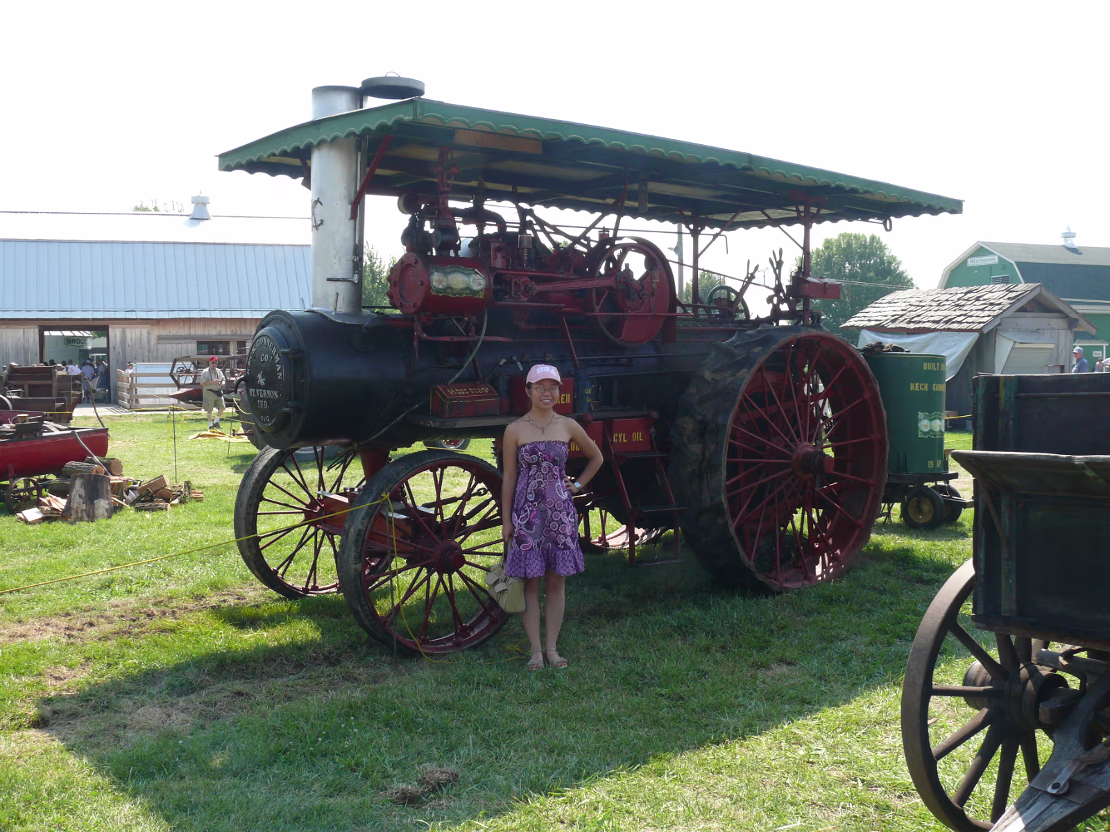 Hanhan's dad on a 1935 John Deer. Hanhan in front of an old steam tractor. They don't build them like that anymore. This area is an old farm. Everything run by steam. Farming used to be very dangerous with equipment like this. Hanhan and her mom laugh at Johnny Appleseed's jokes. Hanhan's dad with huge farm machinery. Hanhan and her dad. Hanhan's dad prepares to be a construction worker. Hanhan looks right at home on her tractor. A shot down the midway, we love the food! Mom with an acrobat from the Peking Acrobats. The oldest farm machine in Indiana. A float for the parade. The blacksmith shop. A Rube Goldberg farm machine. Checking out the dairy cows. Where does it give ice cream? Hanhan found the chocolate milk! Huge oxen, they each weigh 2 tons! Old tractor. Labels Carmel MoveA Day in Indianapolis