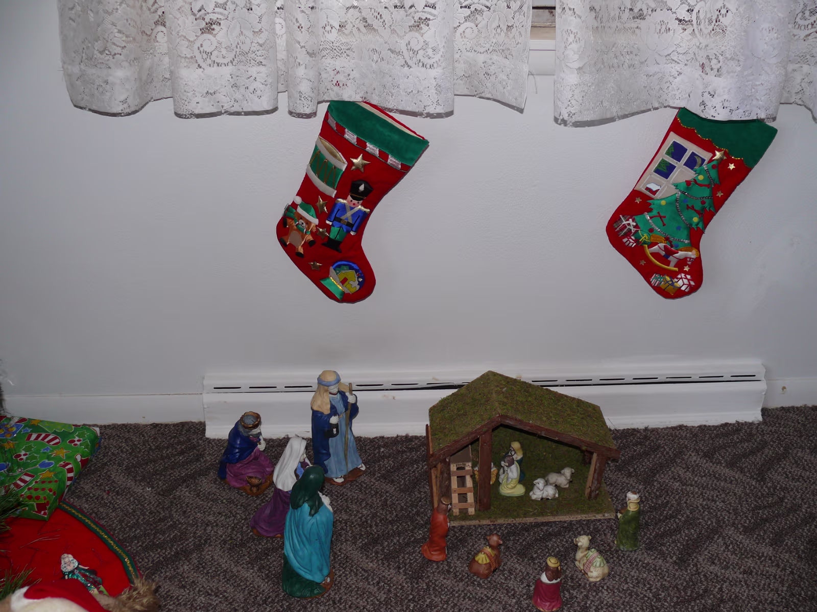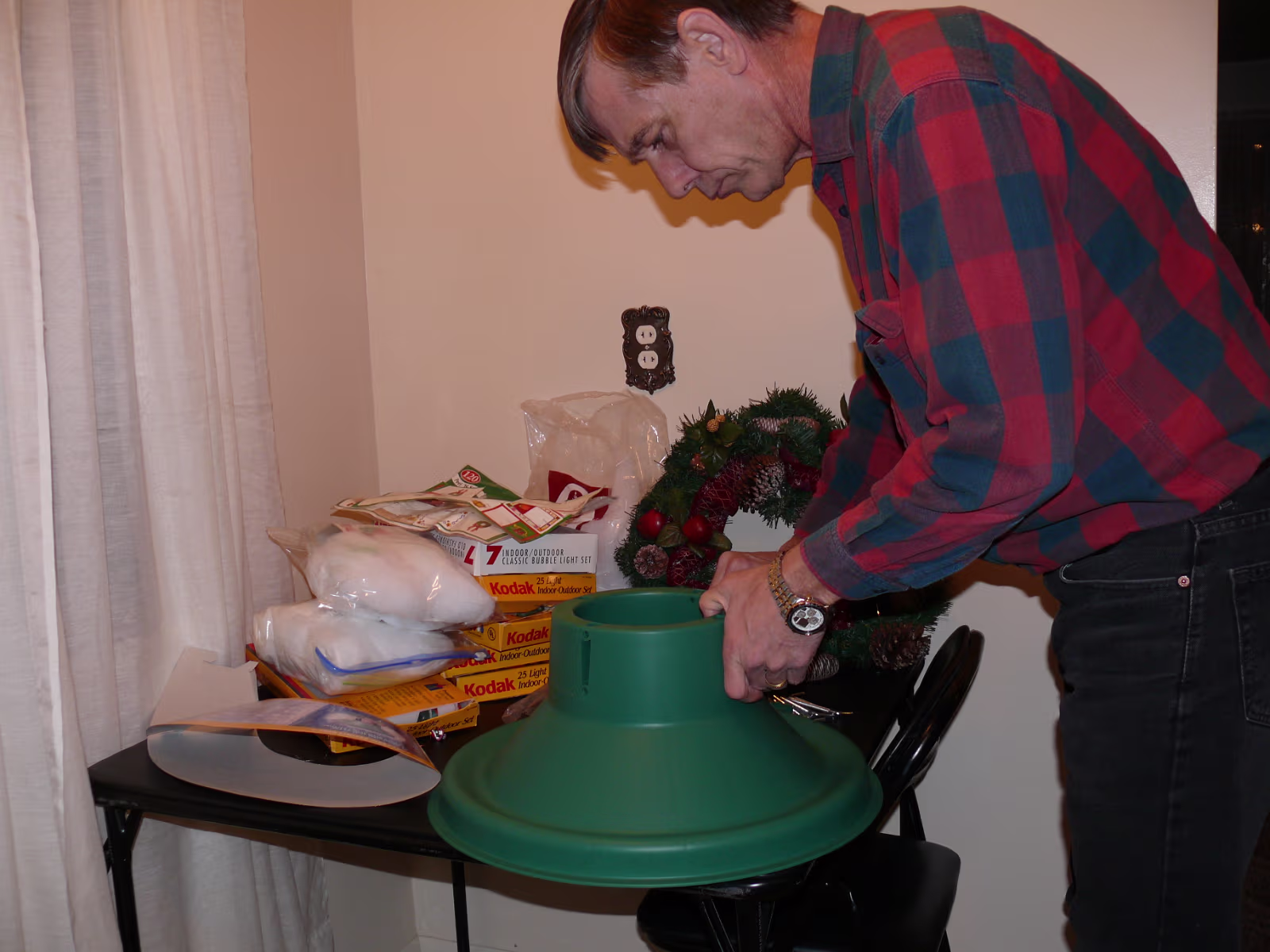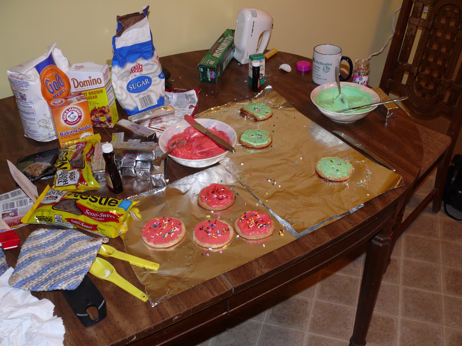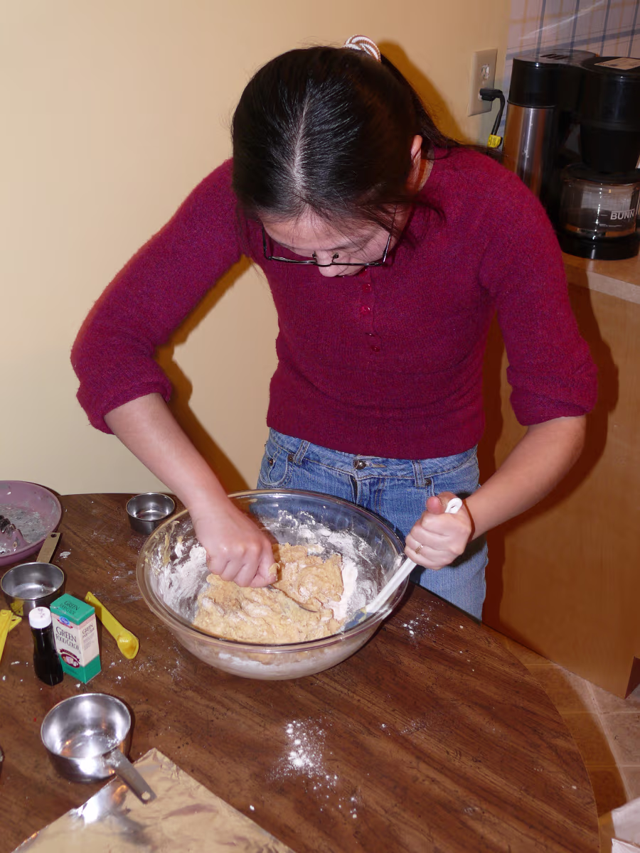 Assembling the stand for our tree. Untieing the tree after the ice melted. The tree before it thawed. Hanhan and our tree ready to decorate. Hanhan putting the finishing touches on the tree. Hanhan & Gary with their beautiful Christmas tree. The "Christmas Corner" The gifts protected by the Christmas dog! Nativity scene and our stockings. Linda with the cookie ingredients. Yum! Sugar cookies ready for frosting. Baked cookies next to cookies getting ready for the oven. Sugar cookie assembly line! Finished product, they were delicious! Hanhan is in charge of the green cookies. Putting the sprinkles on. Another layer of yummy cookies ready for Christmas Eve. Laying out the chocolate chip cookies. Testing the chocolate chip cookies with a glass of icy cold milk! Mixing another batch of chocolate chip cookies. Labels Christmas In PeoriaAutumn In Illinois
