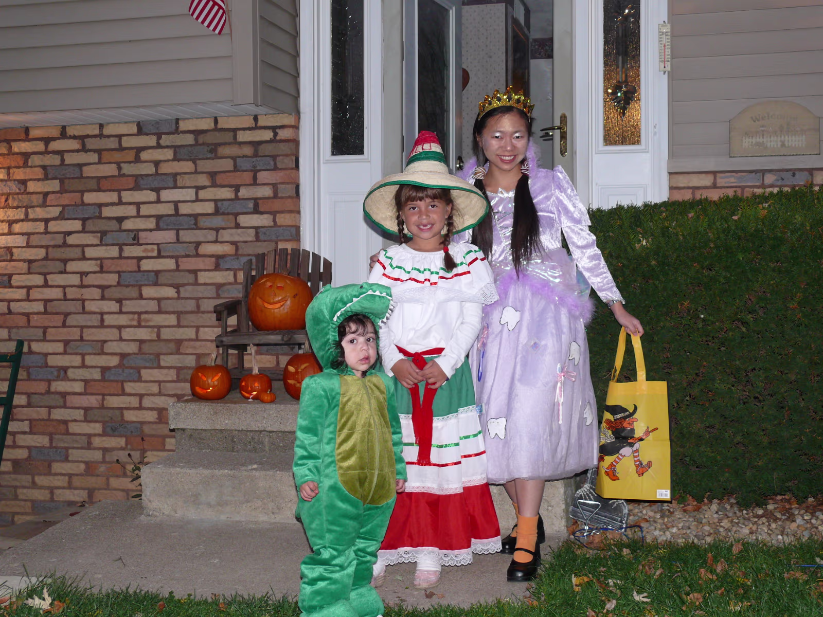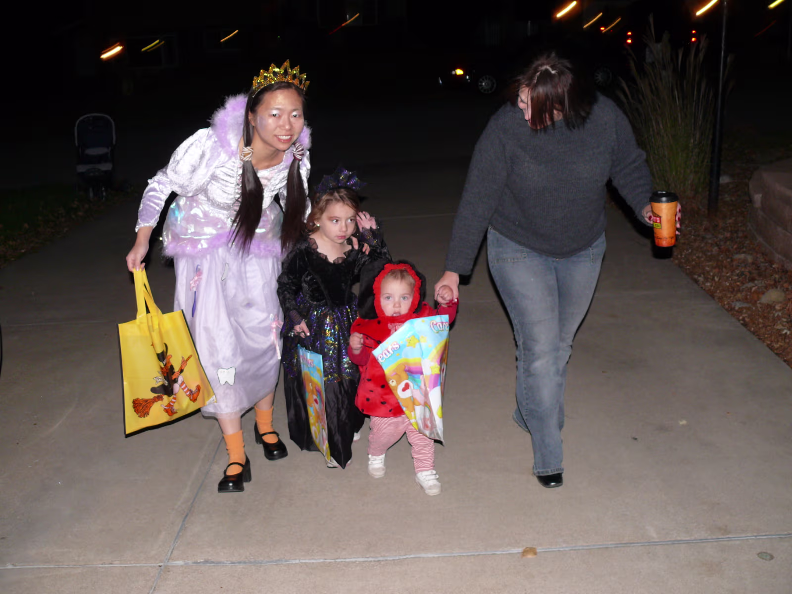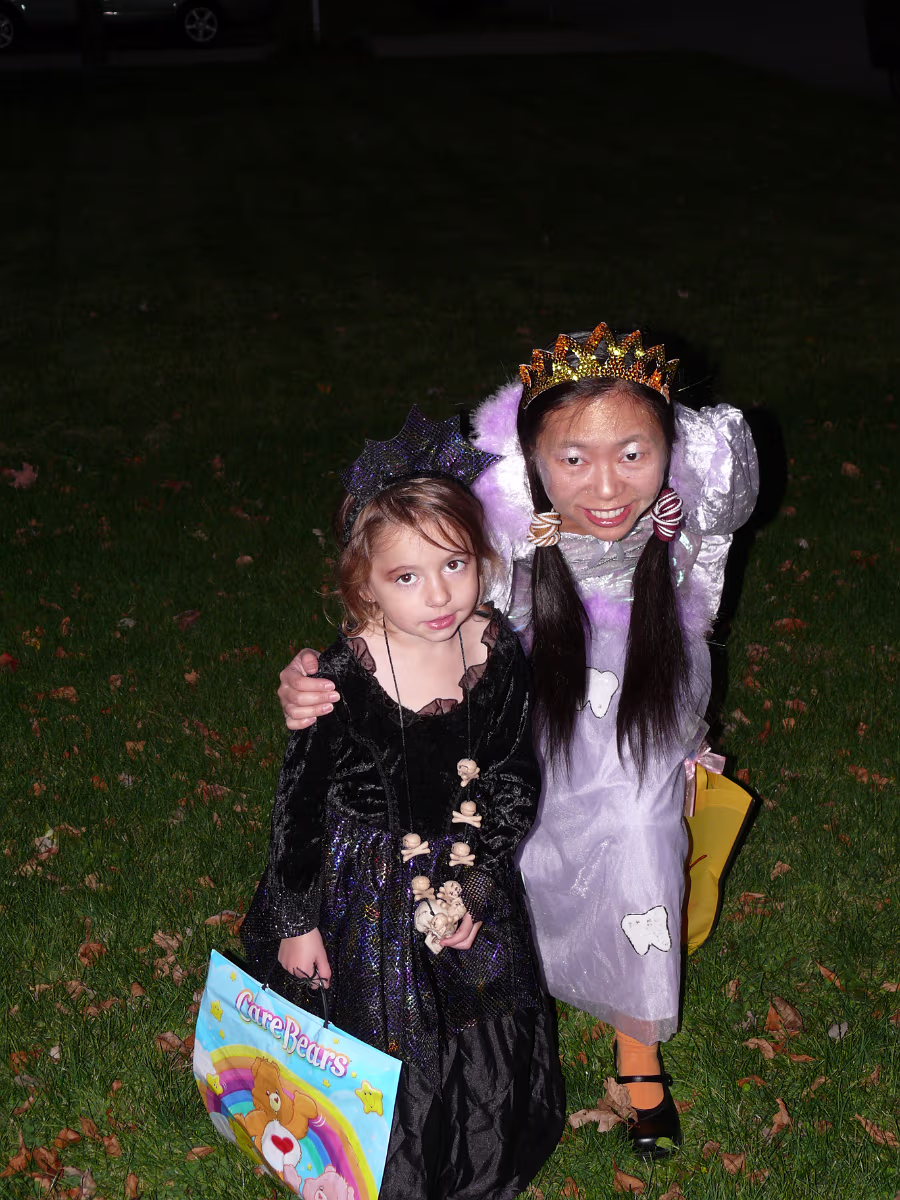 Hanhan having her makeup applied by Linda. The Tooth Fairy is ready! Tooth Fairy and Jack o' Lanterns A dinosaur, senorita, and tooth fairy. A midnight princess and the tooth fairy. Hanhan's first house. Success! Candy in the bag! More trick or treat loot! More candy, more smiles! Trick or treat team heading to another house. Getting the treats! Tina, Brian, and their ladybug. The Halloween float. Decorations on the back of the float. A tired ladybug. Waiting her turn to get a treat. A hotdog looks at the tooth fairy. Three scary jack o' lanterns. Boo! Did it scare you? Ladybug dragging her bag of candy towards another house. Labels My FamilyHanhan's Master's Ceremony