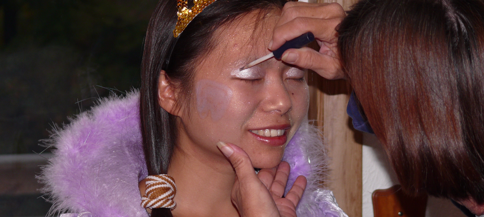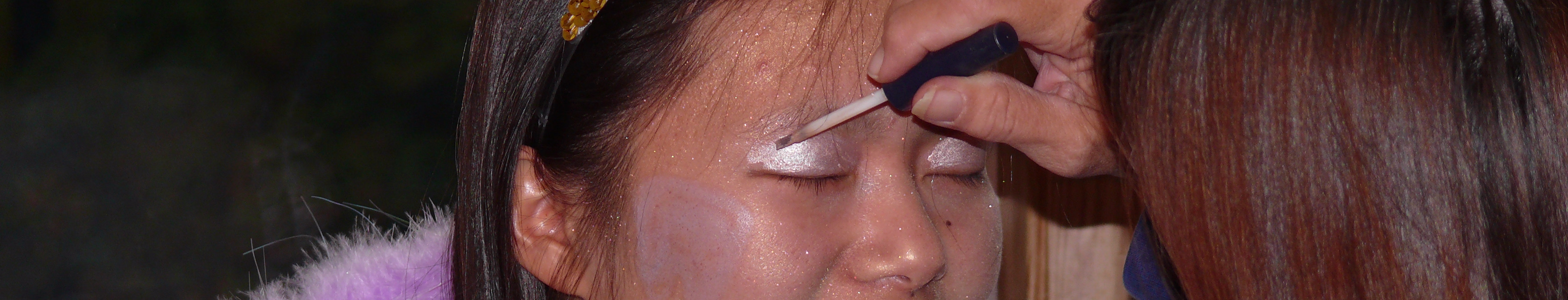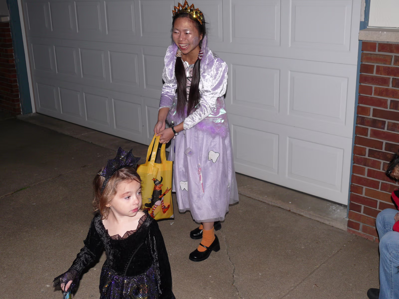 Hanhan having her makeup applied by Linda. The Tooth Fairy is ready! Tooth Fairy and Jack o' Lanterns A dinosaur, senorita, and tooth fairy. A midnight princess and the tooth fairy. Hanhan's first house. Success! Candy in the bag! More trick or treat loot! More candy, more smiles! Trick or treat team heading to another house. Getting the treats! Tina, Brian, and their ladybug. The Halloween float. Decorations on the back of the float. A tired ladybug. Waiting her turn to get a treat. A hotdog looks at the tooth fairy. Three scary jack o' lanterns. Boo! Did it scare you? Ladybug dragging her bag of candy towards another house. Labels My FamilyHanhan's Master's Ceremony
