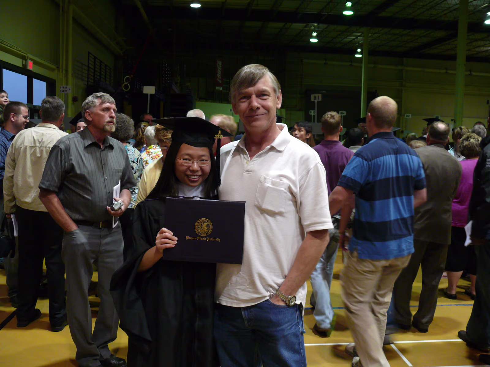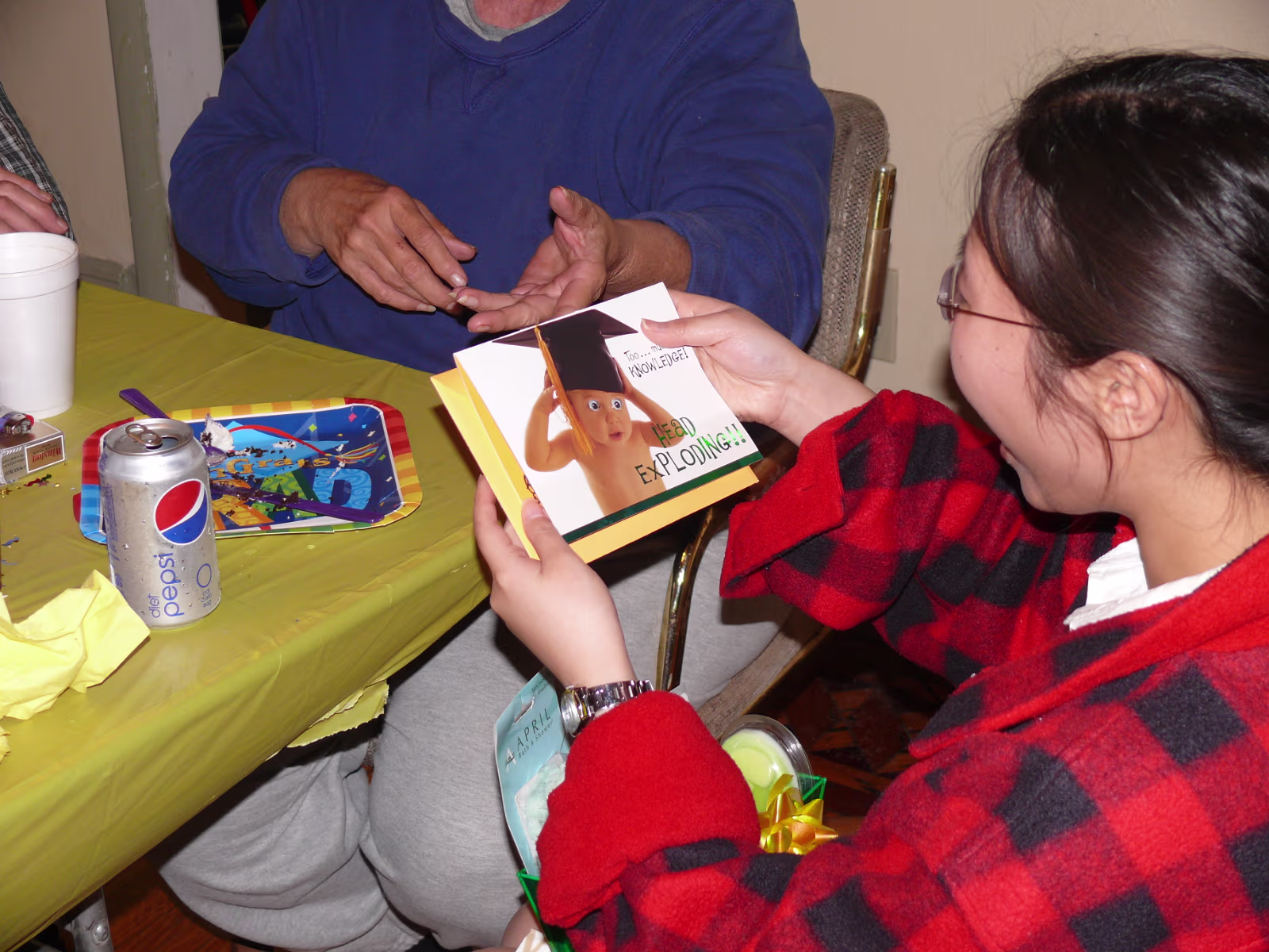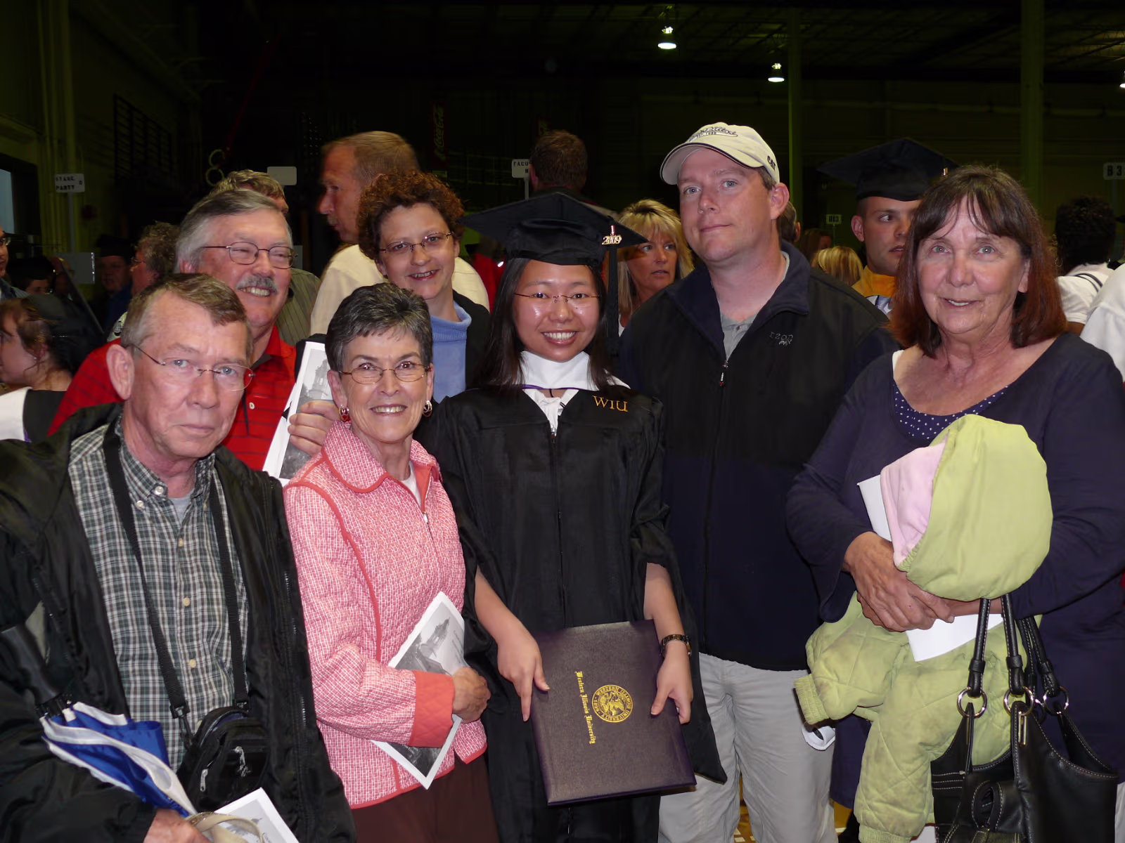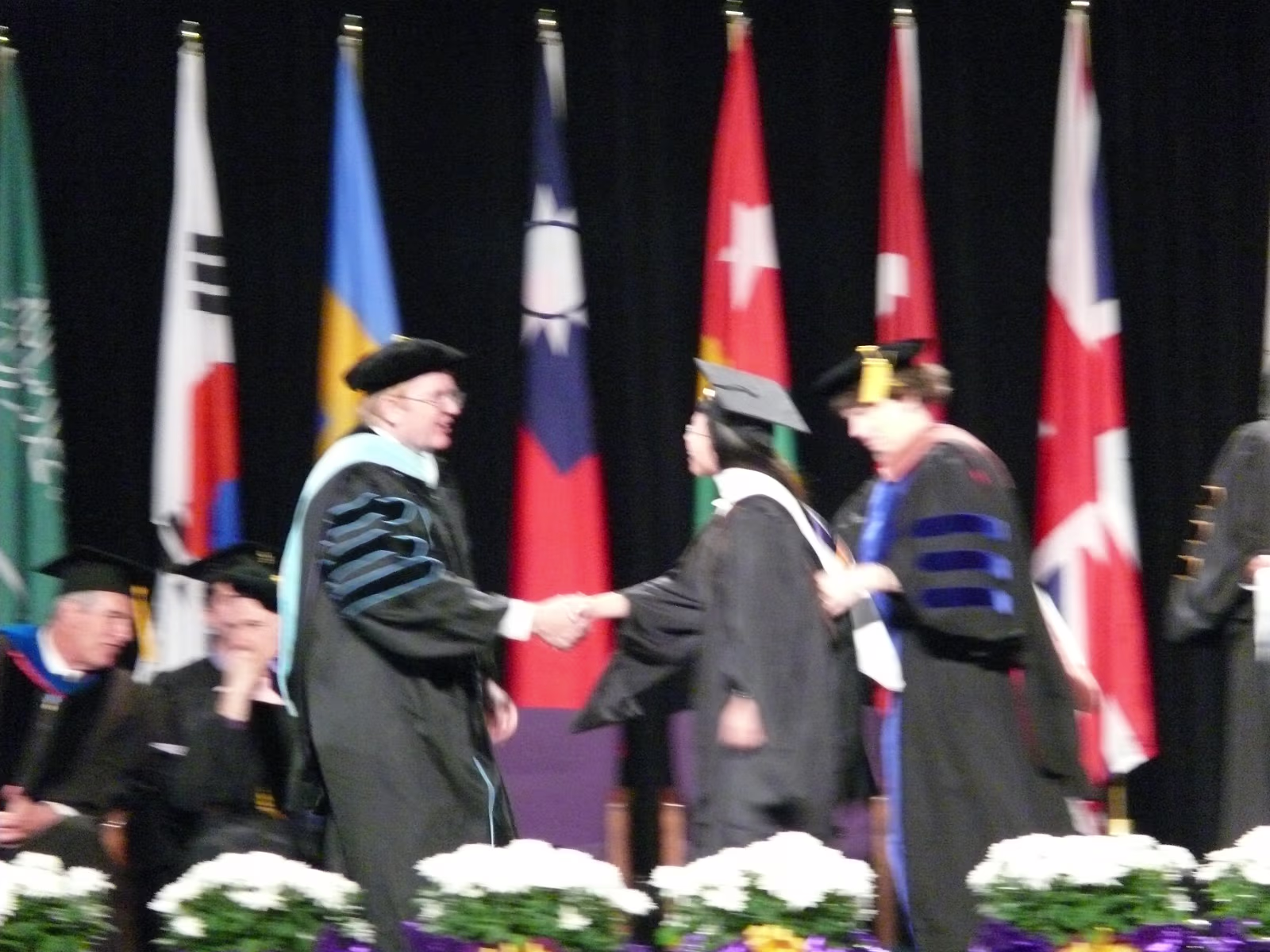 Before ceremony. Class of '09 graduate. Hanhan and 4 others in her group marching to the seats. The Orb of Knowledge carried by the most senior Professor. Speakers, Graduates, and all their flags. Hanhan receives her hood, hers is white for Master of Art. Hanhan receiving her diploma! Sweeeeet! All done, a happy graduate! The Hammer Family wishes Hanhan luck! Gary is very proud of Hanhan. Hanhan is so happy to see her party room. Sharon opens the cake. Hanhan is ready to eat the cake, but we prevail... The cake says "Congratulations on your Masters Hanhan". Indeed! Cake, cake, cake. Cutting the cake, with Cassie anxiously waiting. Hanhan and her cake under the banner. One card that Hanhan liked. Ed & Linda playing with a talking card. This one is Hanhan. Labels Halloween 2007Heart of Illinois Fair 2007