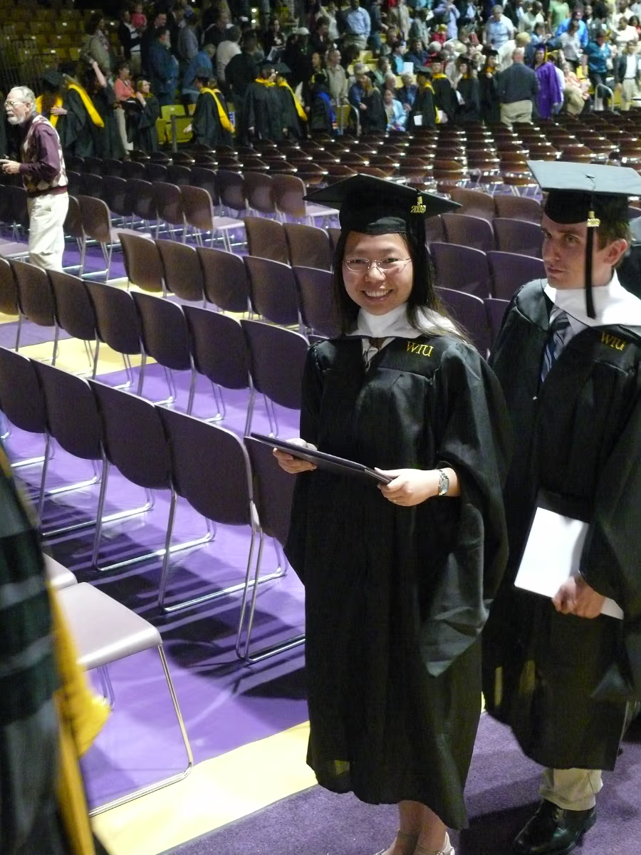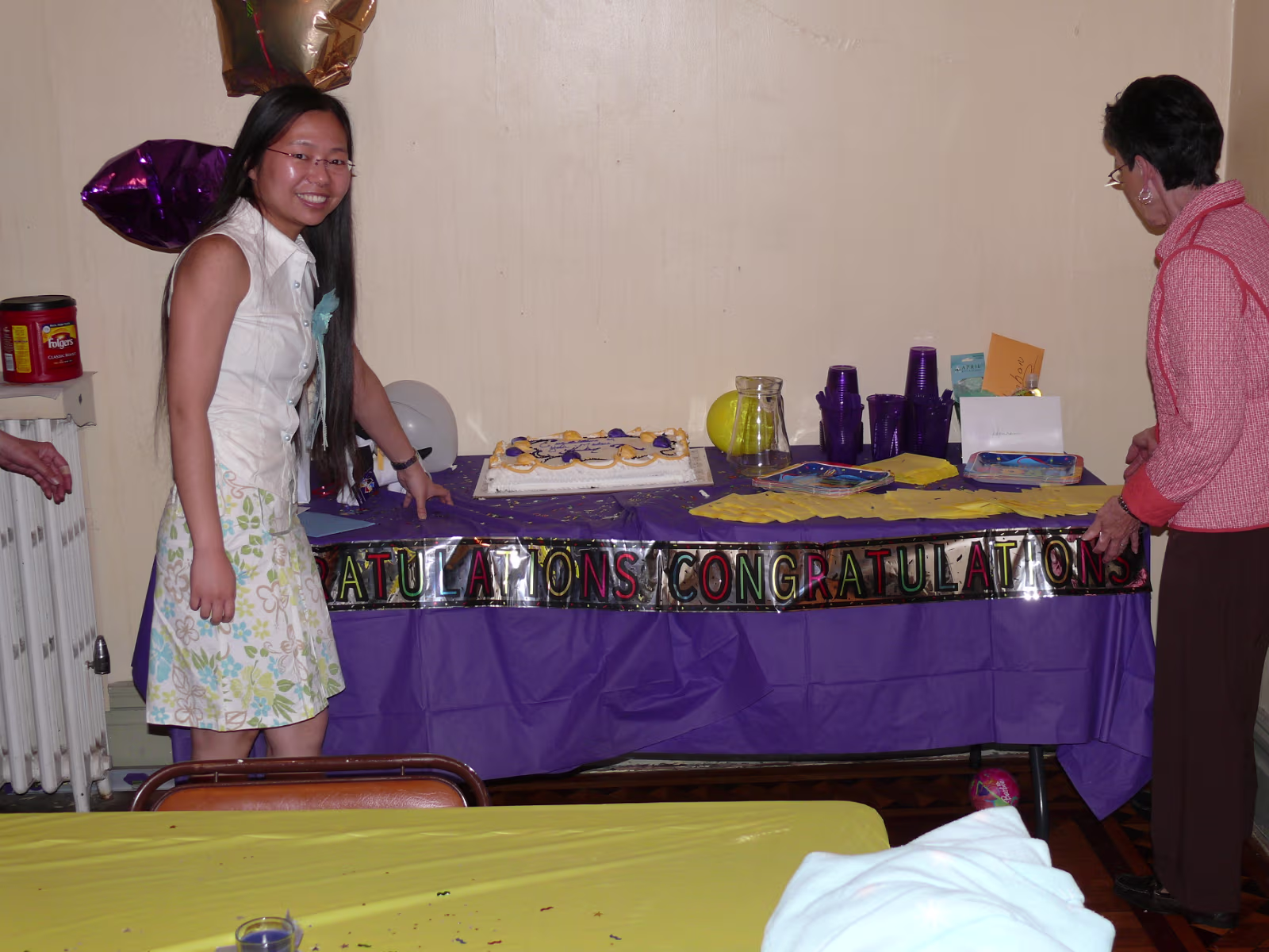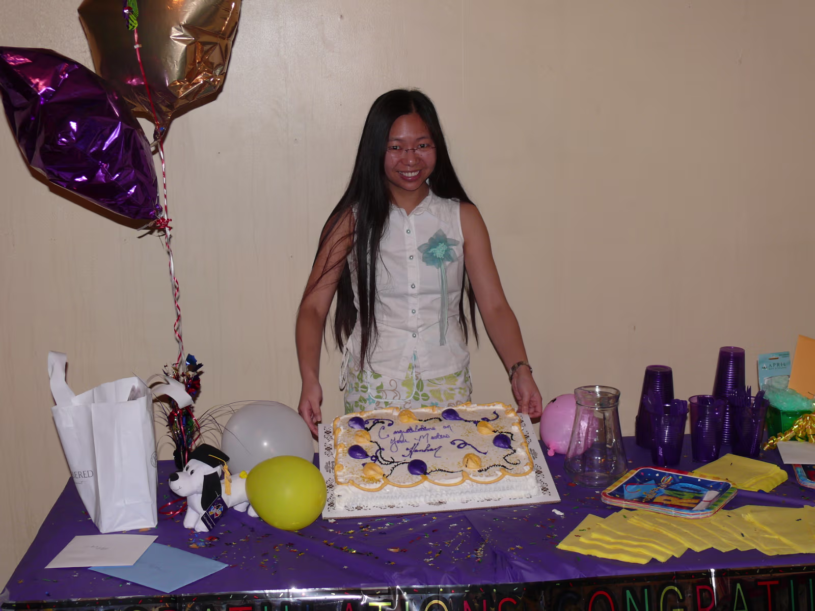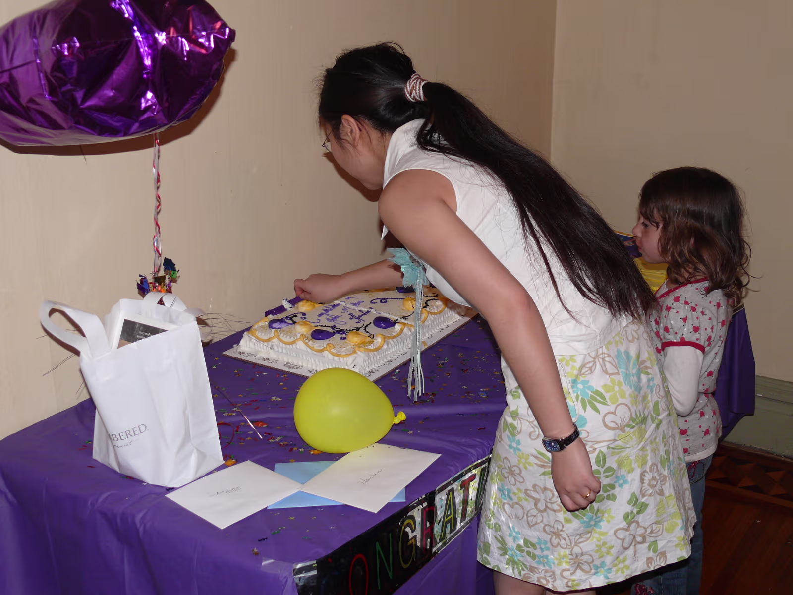 Before ceremony. Class of '09 graduate. Hanhan and 4 others in her group marching to the seats. The Orb of Knowledge carried by the most senior Professor. Speakers, Graduates, and all their flags. Hanhan receives her hood, hers is white for Master of Art. Hanhan receiving her diploma! Sweeeeet! All done, a happy graduate! The Hammer Family wishes Hanhan luck! Gary is very proud of Hanhan. Hanhan is so happy to see her party room. Sharon opens the cake. Hanhan is ready to eat the cake, but we prevail... The cake says "Congratulations on your Masters Hanhan". Indeed! Cake, cake, cake. Cutting the cake, with Cassie anxiously waiting. Hanhan and her cake under the banner. One card that Hanhan liked. Ed & Linda playing with a talking card. This one is Hanhan. Labels Halloween 2007Heart of Illinois Fair 2007