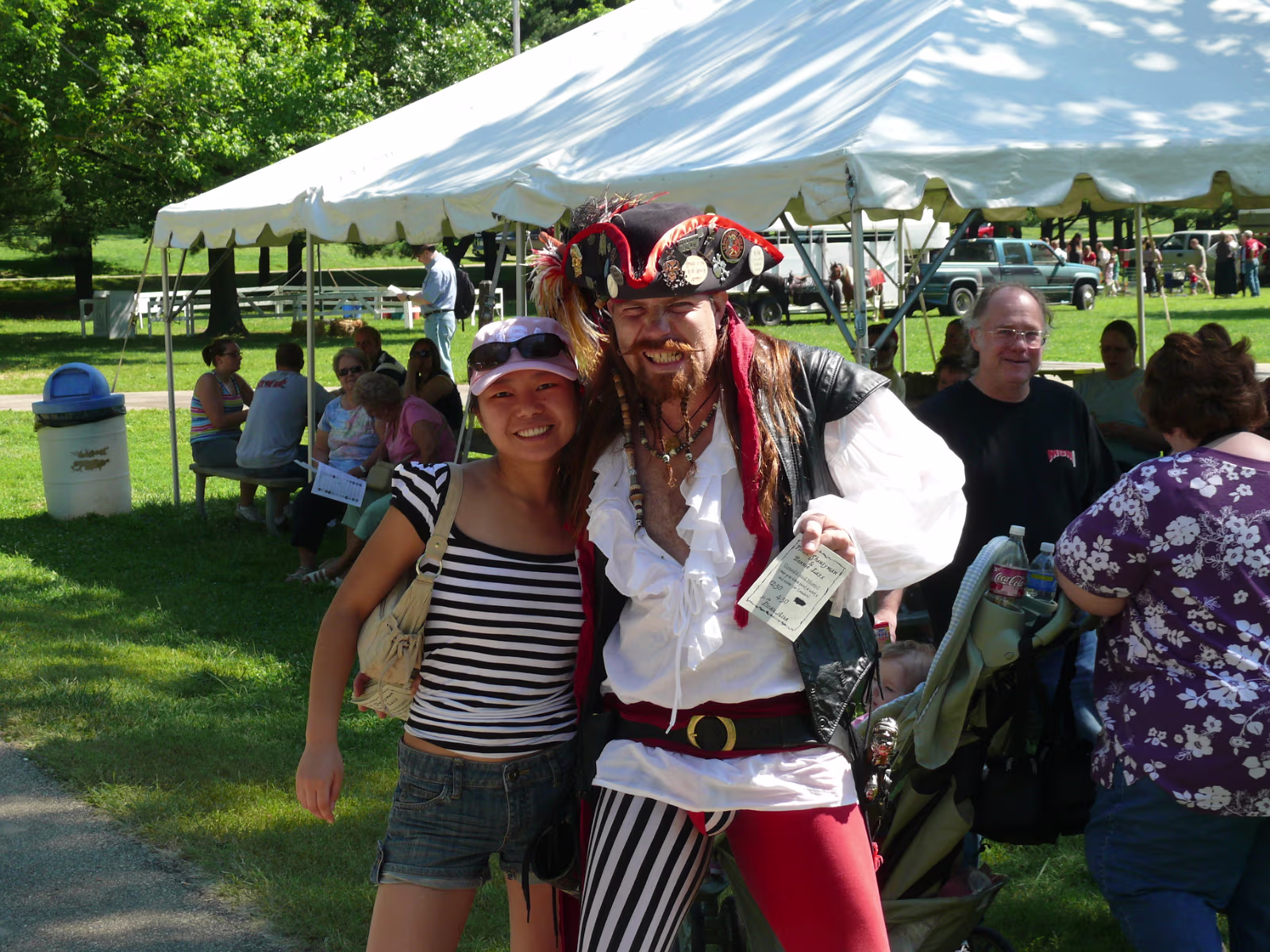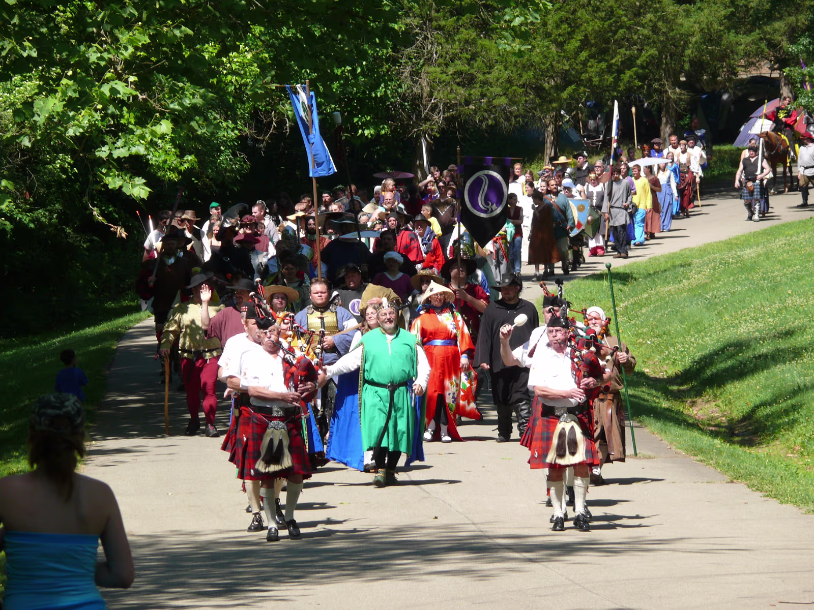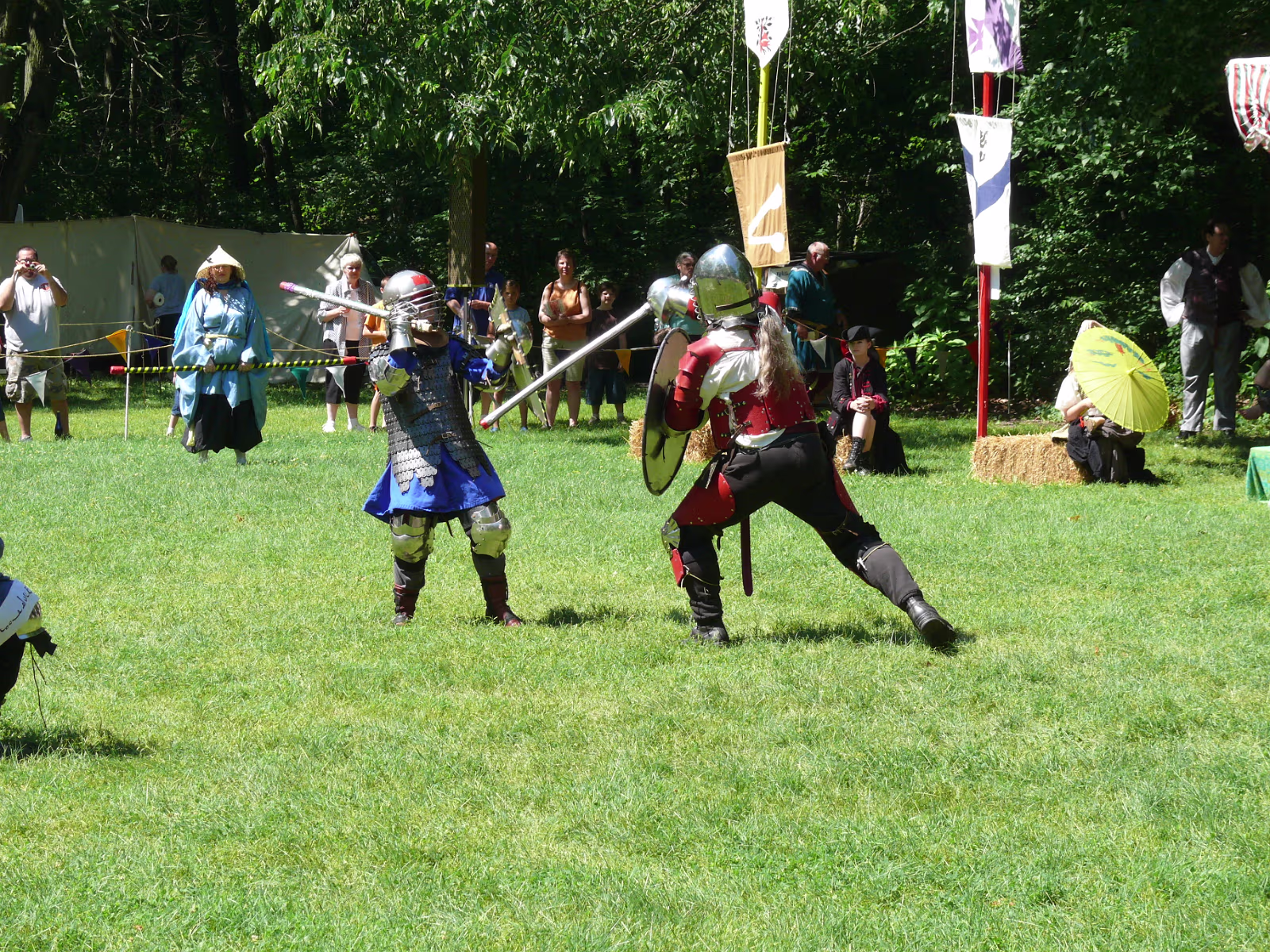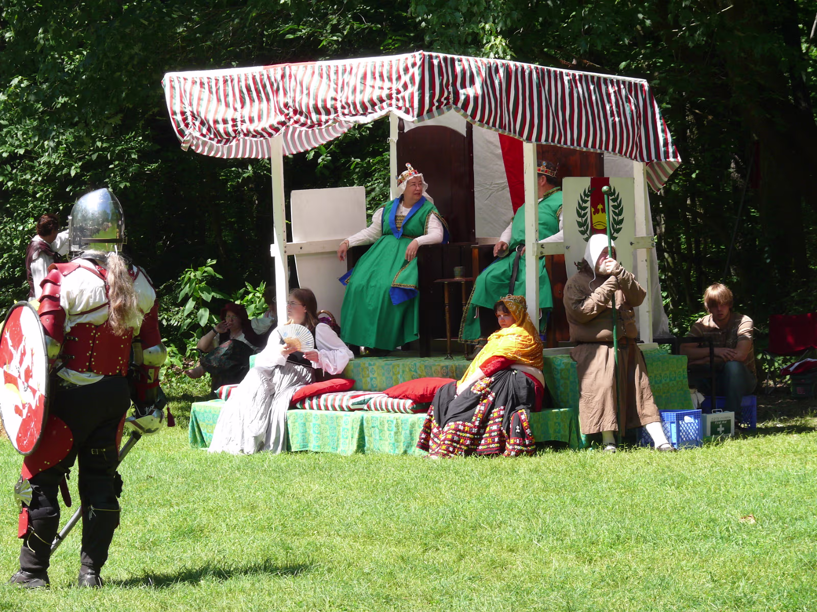Hanhan checking out some pirate 'booty'. Four knights riding towards a meeting with the King. Colorful knights and their costumed steeds. Pipers leading the King & Queen during the parade to the festival. Men in skirts. The King & Queen with the wizard. English merchant. A knight walking with his squire and his lady. A mid-eastern merchant. A troubadour. A mysterious veiled woman. A knife juggler. Hanhan examining the chain mail. A last look at the chainmail. King and Queen waiting for the start of the tournament of arms. Ladies in waiting and the wizard are always nearby. Broadsword combat. Rapiers require great skill. Looks like a Spanish Conquistador. A melee, every man for himself! Labels July 20142007 Prairie Air Show