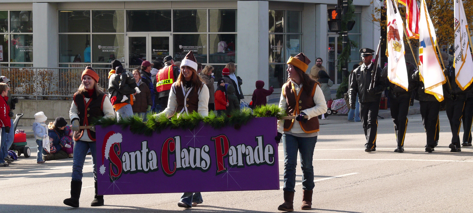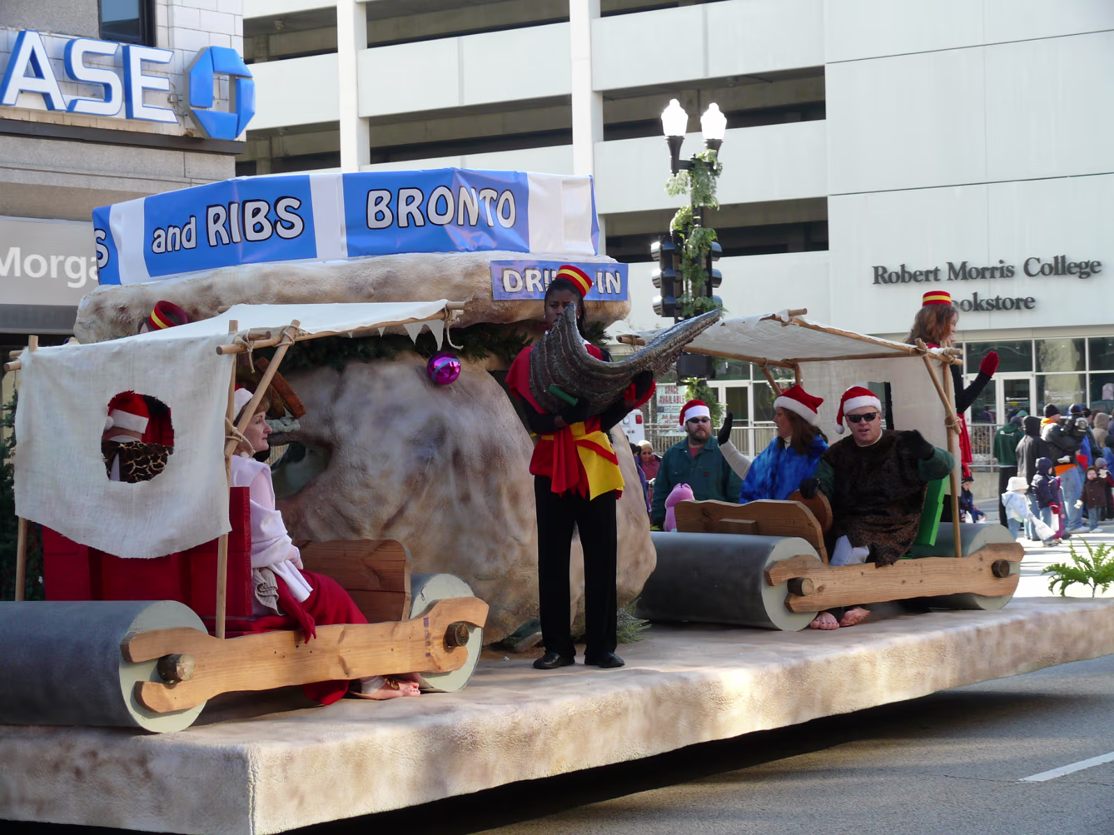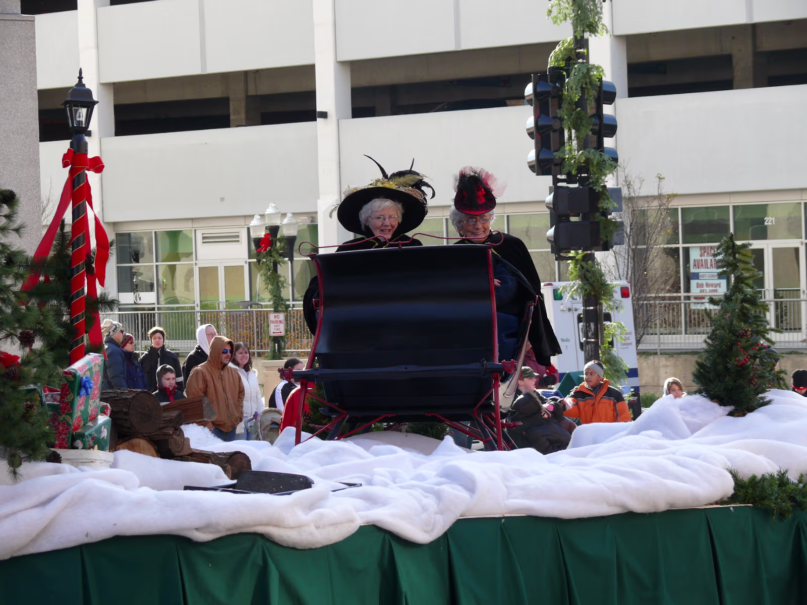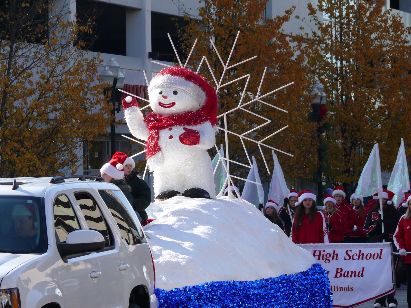 The parade begins! The mounted Color Guard. Navy veterans float. Antique car with Mayor and Congressman. A girl on stilts. Christmas Express Classic car with a 'King' dog in the rear. A parade is not complete without a clown. The Manual High School band. Two Chinese lions. A closeup of one lion. Christmas around the world. The Flintstones Christmas Tree float. Snowman throwing snowballs. Girl Scouts around the world. A dog sled. Note the booties! Cinderella's coach. Two old ladies in their sleigh. Labels Random Illinois PhotosHammer Family Thanksgiving 2007