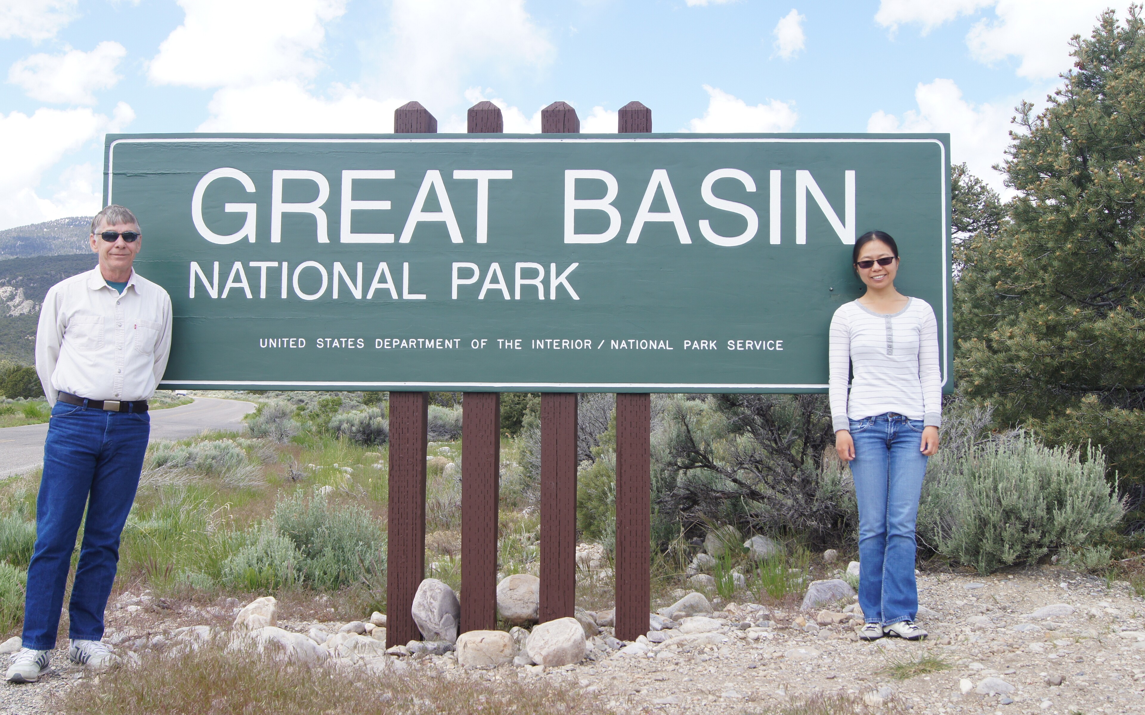 Finally!The tenth park!Will we be able to reach the summit?No silly, road is closed for snow!The Great Basin.Hanhan thinks the grapple is funny.See the streaks in the picture.High altitudes in late May can bring anything. Lehman Cave.The most stunning, densely packed cave I've ever been in.Packrats have carried things into this den for 1000s of years.Makes a good spot for archaeologists.A cave turnip, a rare formation.Yum!Hanhan is backlighting the cave bacon. I've never seen this type formation anywhere.The butcher shop. Aptly named, look at the color.Giant's ear canal.Every direction reveals more spectacular formations. Duck! Low ceiling!Some stalactites have connected with stalagmites forming columns.The parachutes, a shield formation unique to this cave system.We think they look like jellyfish though.See the straws along the cracks in the ceiling?Come back in 200,000-300,000 years to see the finished product. This will give you a good feel for the cave.The parachutes.Looks like the set for a horror movie. See the broken off stalactites?When the cave was opened in the 1800s you were allowed to take souvenirs.Hanhan isn't about to go deeper into the blackness.Flowstone, this is layed down mm by mm over long periods of time.We enjoyed it for 30 seconds. Four CornersGolden Spike NHS