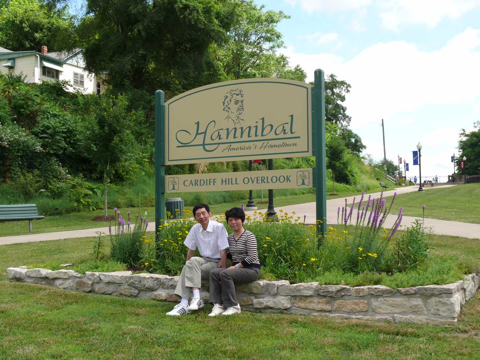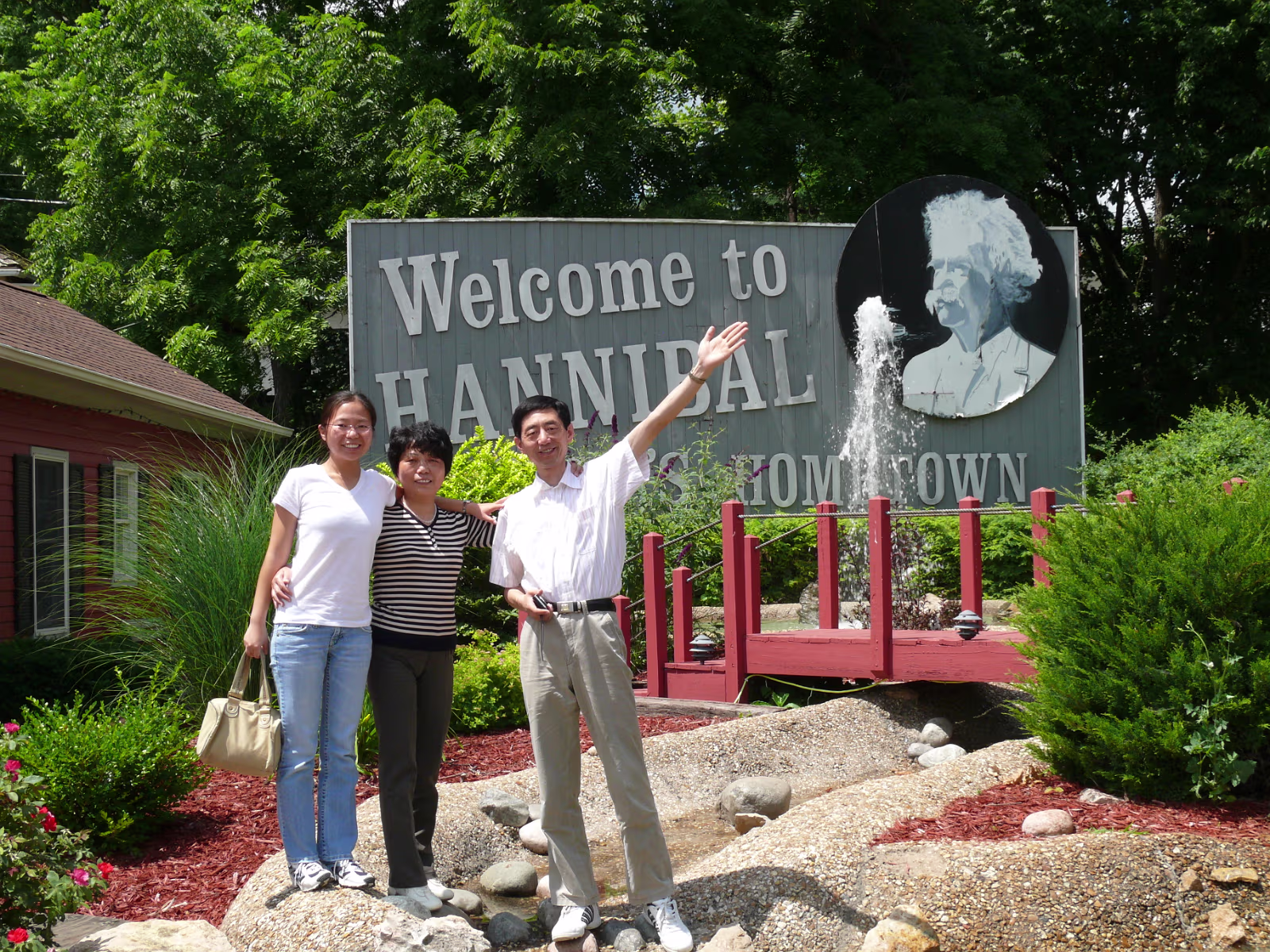 Mom with bike police, she likes the fat one! The Zhang family in Hannibal. Hanhan's parents enjoying Mark Twain's hometown. The sign explains Hannibal. Gary & Hanhan are having a nice day away from work. Hanhan and her dad looking for her mom. The lighthouse above the trees. At the founding point of Hannibal. The Zhang family at the Mark Twain memorial. On the Mississippi waterfront. Mark Twain is big here. Tom loves Becky! Becky loves Tom! Hanhan and the fishing pond. A view from Lover's Leap. Hanhan's dad at Lover's Leap. Hanhan and her mom over Hannibal. The Mark Twain riverboat. Chairman Mao's wish come true, Hanhan's dad in the Mississippi. Hanhan and mom play in the Mississippi. Labels Chicago July 2008Fireworks Trip