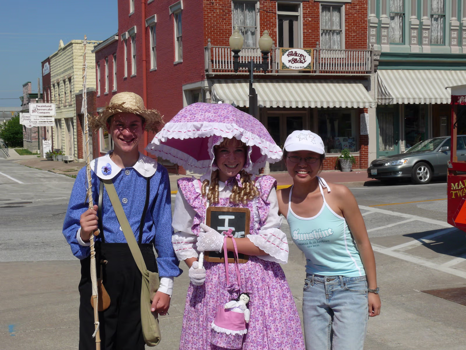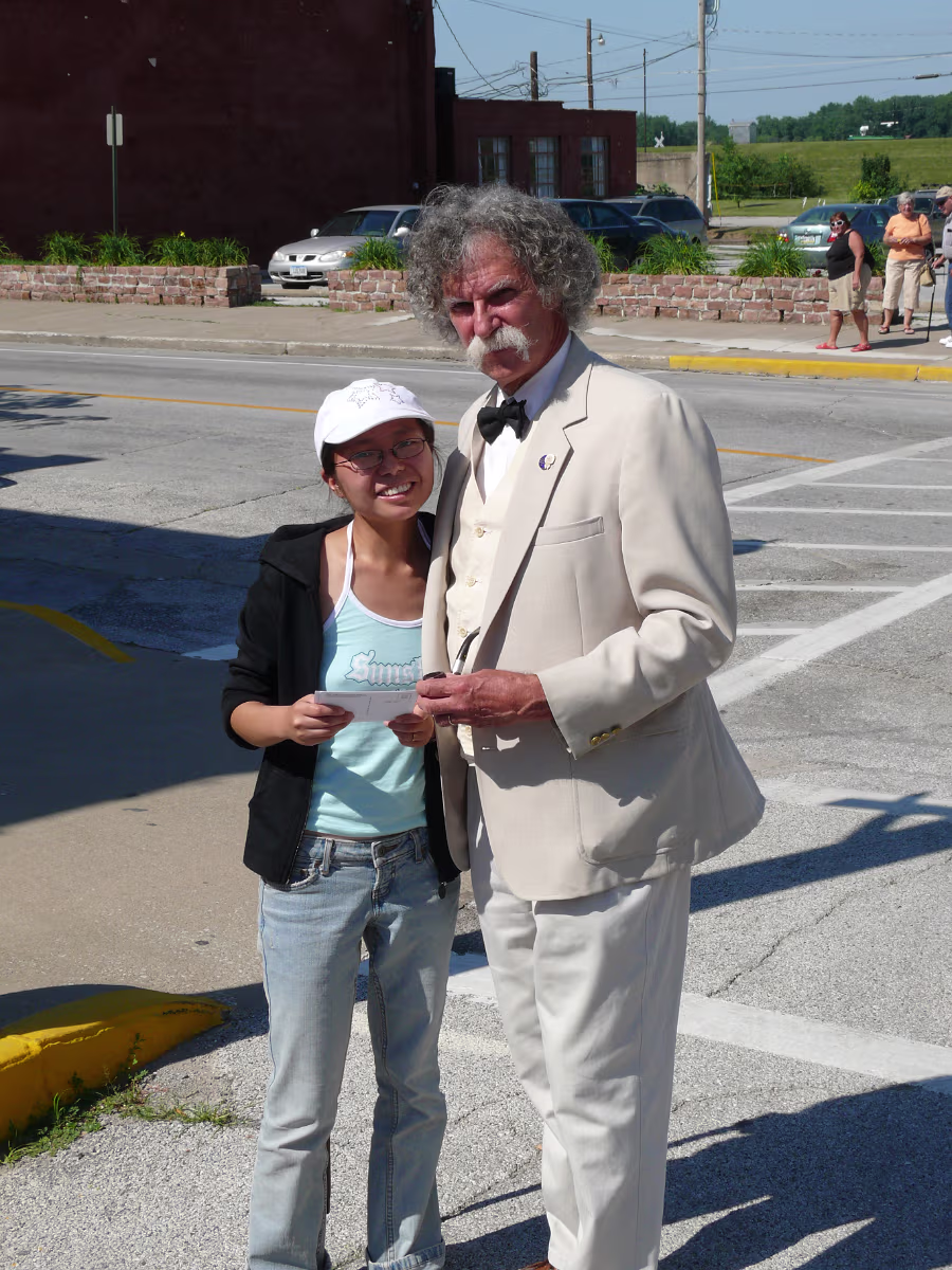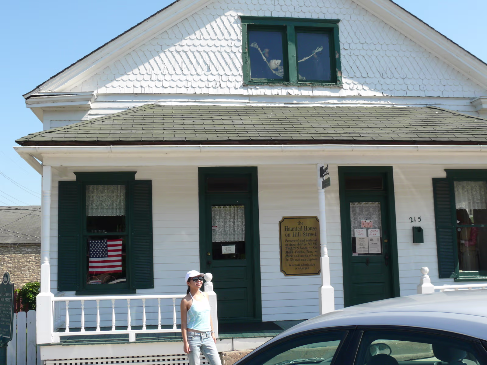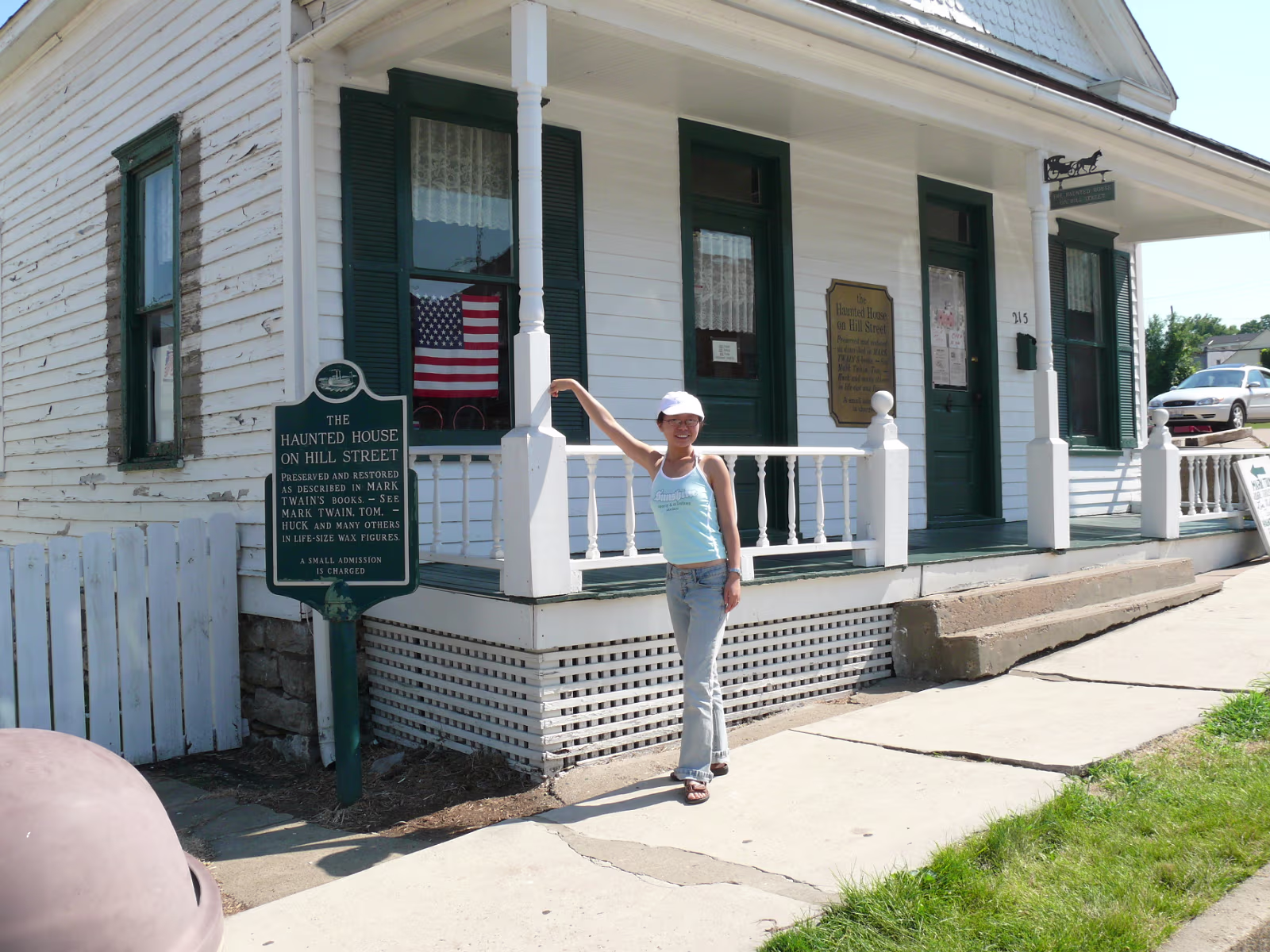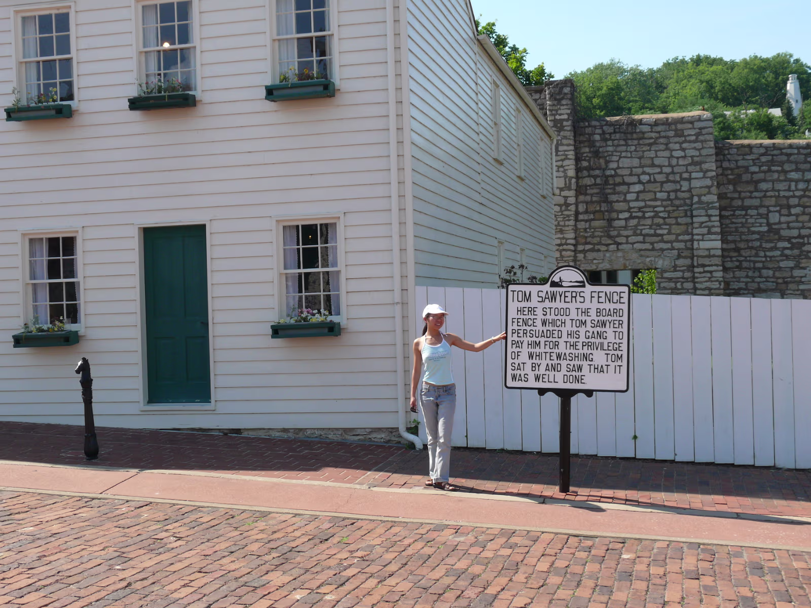 Hanhan at the Mark Twain Memorial Bridge, it's gone now but the plaque lives on. Hanhan in Becky Thatcher's Butterfly garden. A steamboat on the Mississippi River. Hanhan in front of Hannibal and the Mississippi River. Hanhan welcomes you to Mark Twain's hometown. On the way to the fireworks shop to get Independence Day supplies! Hanhan wants one of the huge fireworks in the shop. She has her basket and is shopping for more fireworks. Hanhan with the load in the rear of the van we drove. Hanhan in front of the haunted house that was mentioned in Tom Sawyer. Hanhan is looking for the skeleton. In front of Becky Thatcher's house, she was Tom Sawyer's first sweetheart. Hanhan in front of the famous fence from Tom Sawyer. Ed & Jeff in front of Mark Twain's boyhood house. Tom Sawyer, Becky Thatcher, and Hanhan. Looking down the old main street. Hanhan feeding the horse that pulls a carriage around Hannibal. After feeding him, Hanhan makes friends with the horse. In front of the old friends, Tom Sawyer and Huckleberry Finn Hanhan and Mark Twain. She even got his autograph. Labels Hanibal Trip 2009King's Island