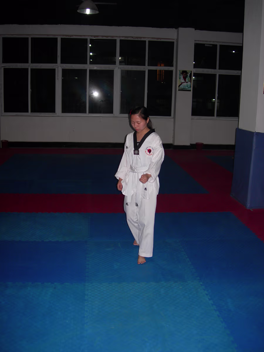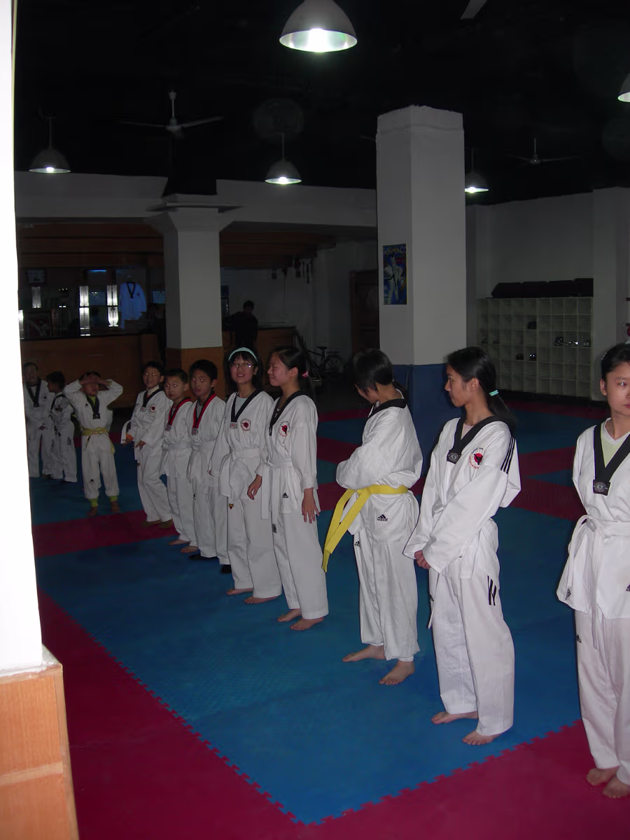 Taekwondo OutingHanhan joined the university martial arts club. We went on an outing to Tai Lake. Ready! Begin! Position 1 of 19 positions evaluated. Hanhan in the stance. Deep concentration is needed. Die taxi driver! The class assembles before the test begins. Running, running, running. Part of the warmup. A successful test earns the yellow belt. Congratulations! Labels 22nd BirthdayYellow Mountain 2007