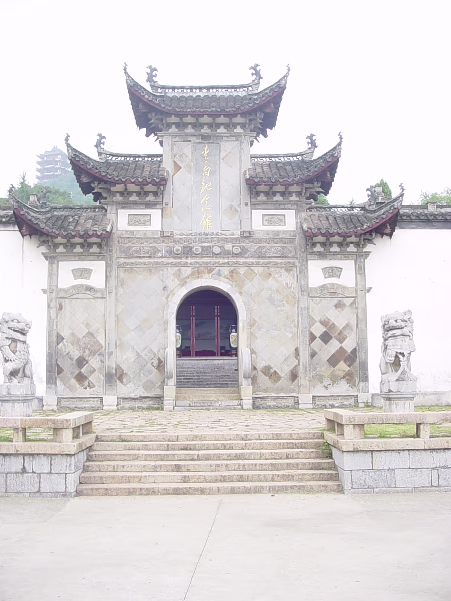 A beautiful scene that represents the entire park well. Inside a small garden that is walled by 300-400 year old stone carvings. Inside the same garden. Cool statues just hanging out in the grass. One gate to Taibai Tower area of the park. Same gate but suddenly with two vases inside the door. Taibai Tower area. One of the many sculptures on display throughout the park. Sentai Tower. Built in Ming era, and rebuilt after WW II. Has a commanding view of the whole area from high atop a bluff on the Yangtze River. A ceiling panel inside Sentai Tower. Heading for Sentai Loft. Getting closer. This was on a rickety cable car, like a ski lift. Labels Ma'anshan ApartmentCaishi Mar 2005