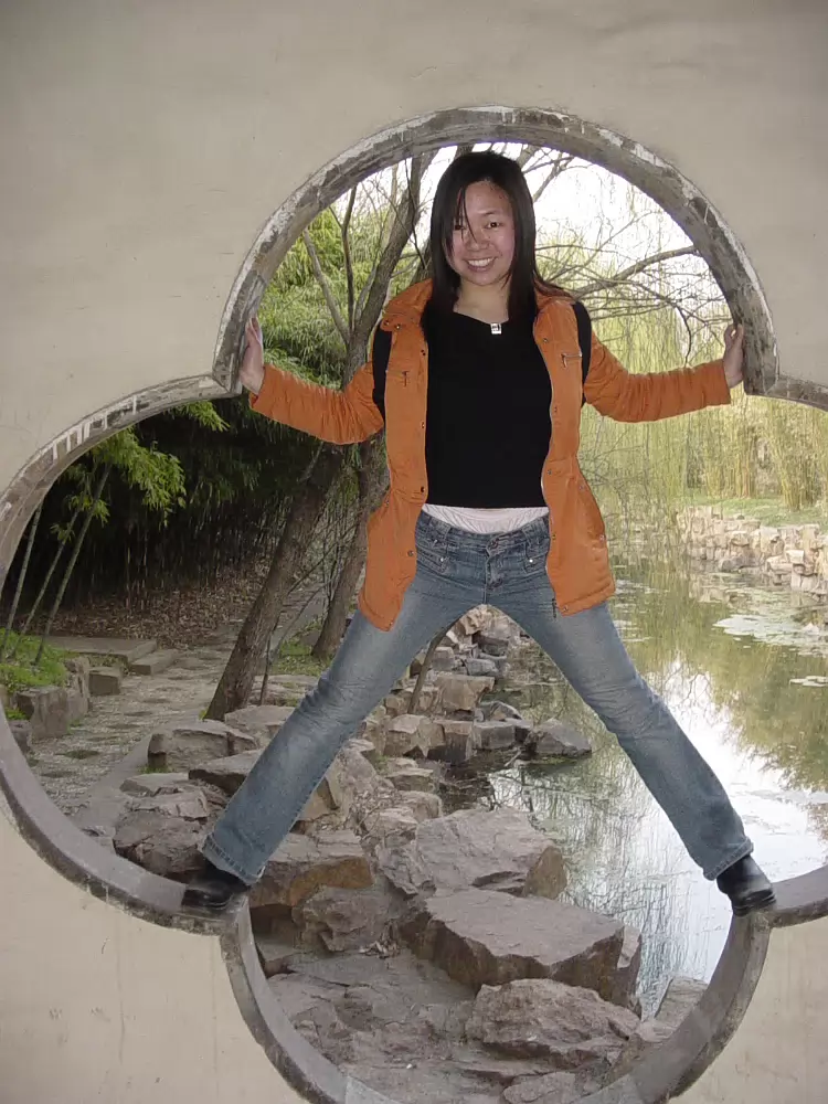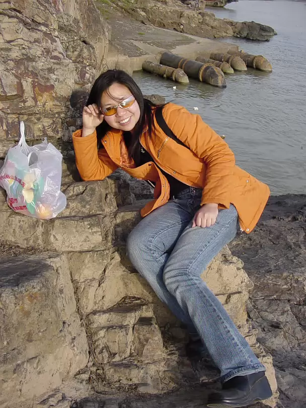 Panda at play. Hanhan can't climb!A beautiful view. The scenery is nice too.We're a happy couple and pretty much alone in the park.Heading up to the temple. Taking in the view from the top.Hanhan thinking about the history of this place.The Changjiang River.The land there is an island called Middle River Island. Looking north from the temple.The island is on the right.A last look from the top and we're off.Heading down on the creaky cable lift. Warming herself in the sun. It was a rather cool day.Me and my drunken hero, Li Bai, a famous poet during the Tang dynasty. Typical fisherman and his son working the riverbank.Big foot print of Li Bai according to legend.Hanhan in the Plum Blossom door. Caishi Aug 2004Christmas 2005