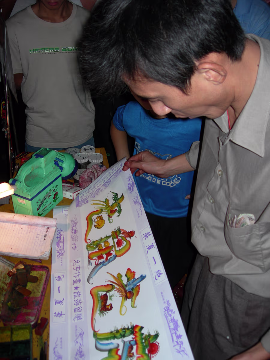 National_Day_2005-010 Street artist makes your Chinese name using animals for the characters.