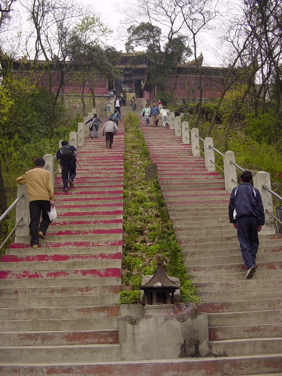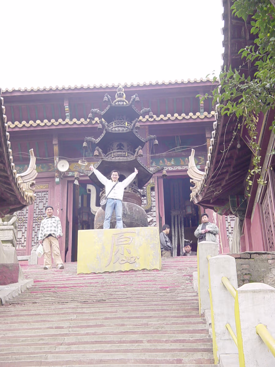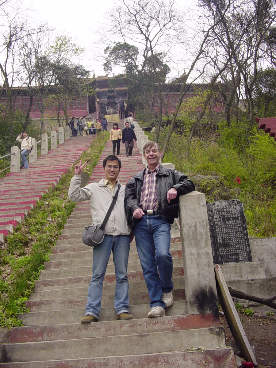 The group as our day begins. Statue inside one of the Temple Mar 2004-s. Praying for an easy climb! They are good friends. The thousand eye and hand Buddha. A long climb ahead. But I'm ready! Explaining the tablet to me. But now I forget... We're ready to go further now. A shy girl. Finally, the top of the stairs! Everyone is here now. The 'Forbidden Buddha', no pictures allowed. Yangtze River from the top of the hill. Looking in another direction. It was a hazy day. One other look. No, they're not horns. Power Lee the King of the hill! The whole crew. Just the teachers. Labels TVU Sports DayOuting to Caishi