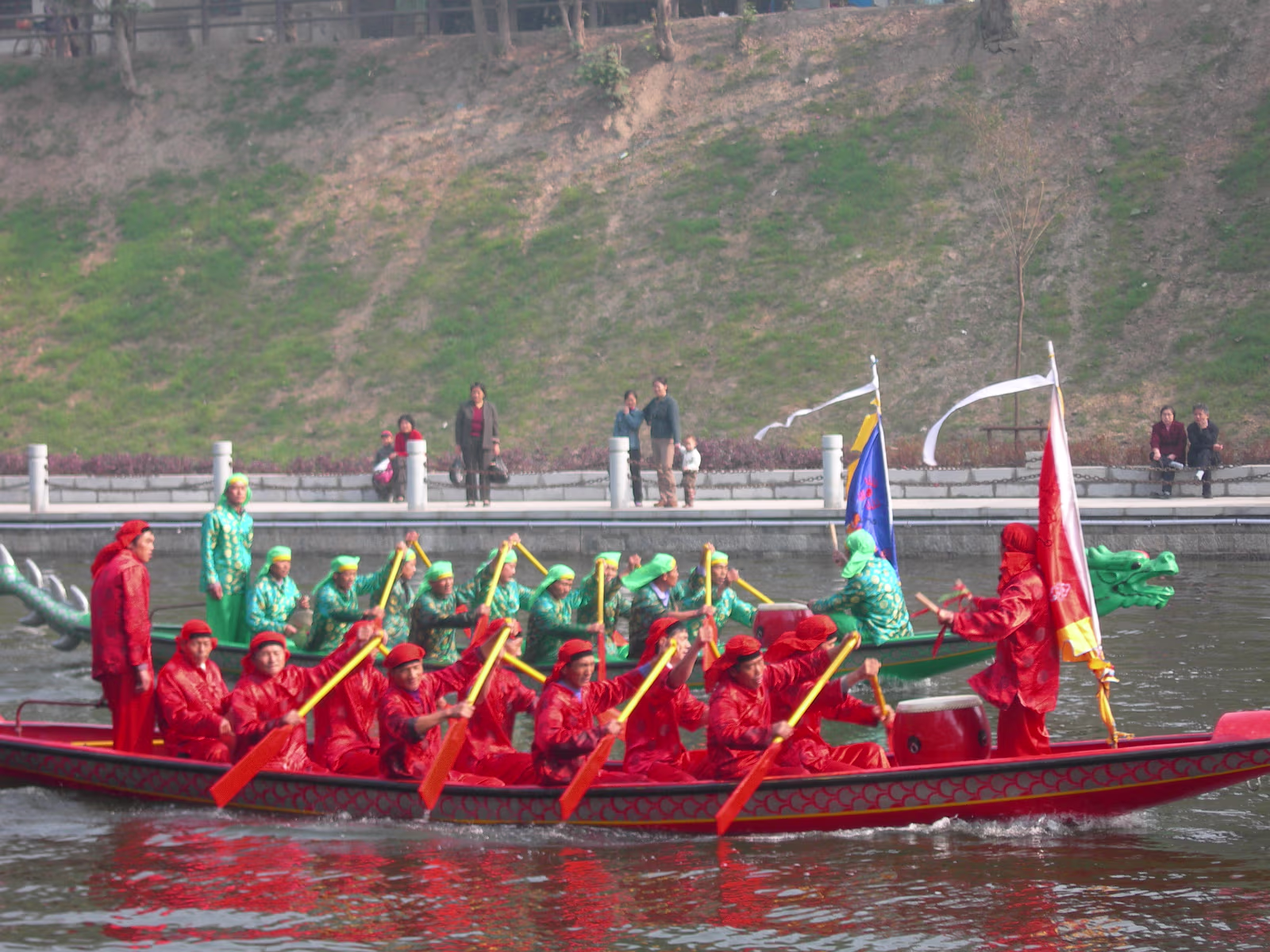 A group photo to start the day. I just liked this scene, Caishi is a beautiful place. Dragon Boats, there will be a race later. A student singing the racing song. Preparing for the race. Two of the teams competing. Note the drummer in each boat. He sets the pace of rowing. Me, getting ready for my TV interview on the Poetry Festival activities. Antique stone inkwell made from stone only found in Ma'anshan. Typical ancient scholar's writing room. A male stone lion. They are always on the right when you face the door. Some of the group in the bonsai garden. Our class picnic. Too much food, but we ate it all anyway! Playing Frisbee is always fun. Hanhan is dangerous when throwing a Frisbee. Duck! Dragon boats docked after the race. Me and Hanhan at the Li Bai museum. Detail from the top of the museum. The stone figure is a failed assassin of an Emperor. Me, students, and the Festival mascot. Nothing says 'poems' like a big golden carp... Labels Temple Outing