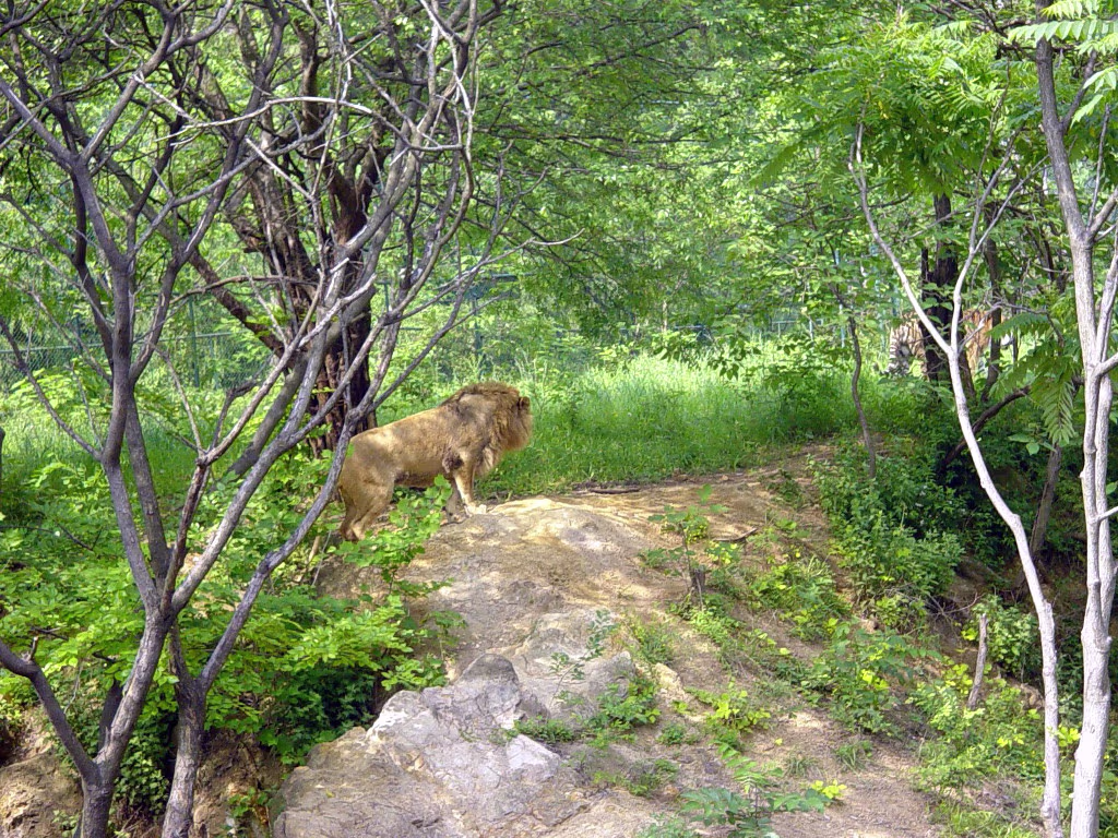 Giraffes getting ready for a nap. Hanhan and her new friend. She had never petted a horse before. The white tigers are prowling before lunch. Lousy lion took my Pepsi! These white tigers are lazy. A lion and tiger playing follow the leader. The lion thinks he's hunting. Hanhan fighting for bamboo! I liked this exhibit best. She's the Queen of the hill. 'Bear'back riding. Having a little fun. Labels Space Museum