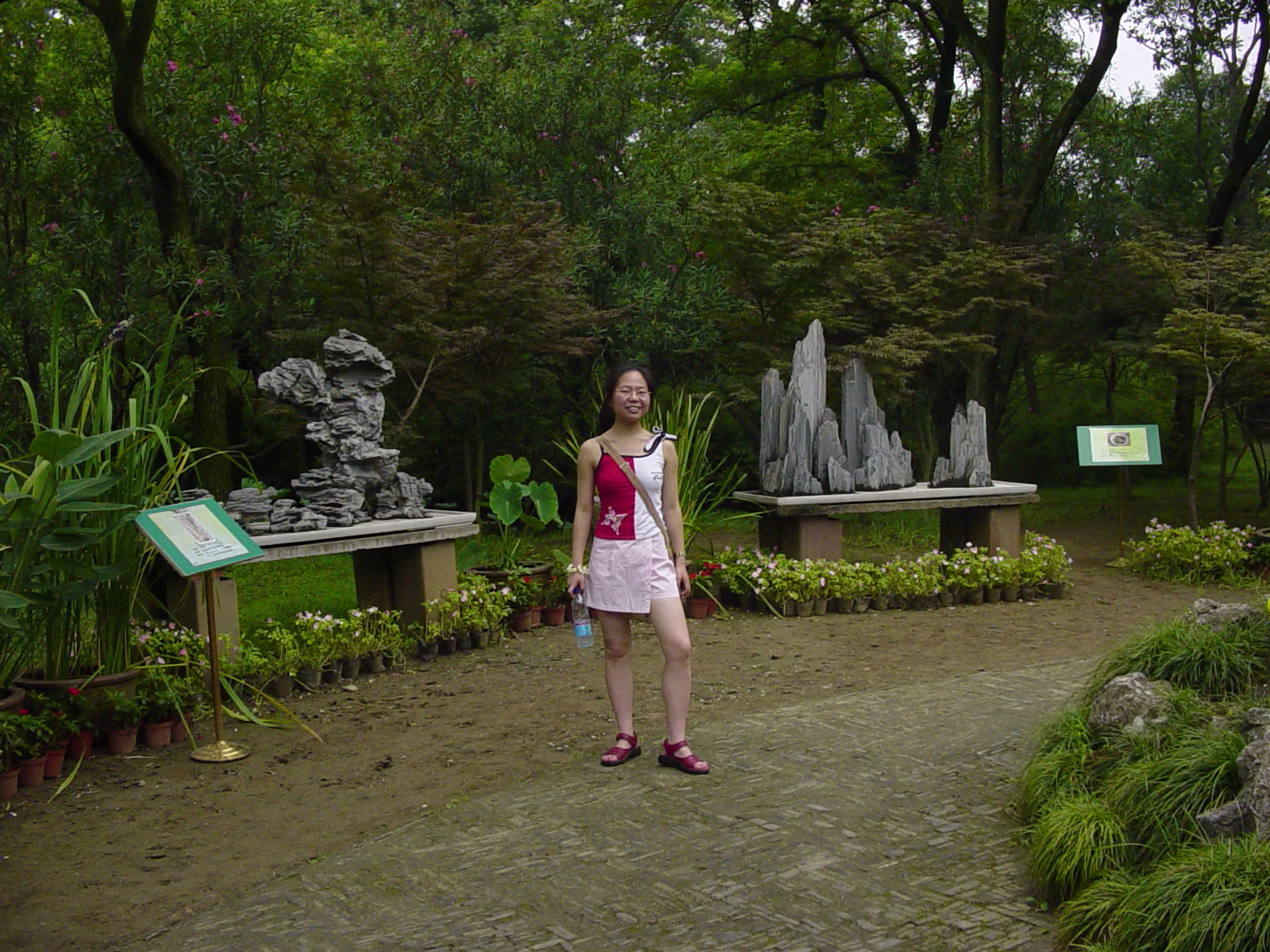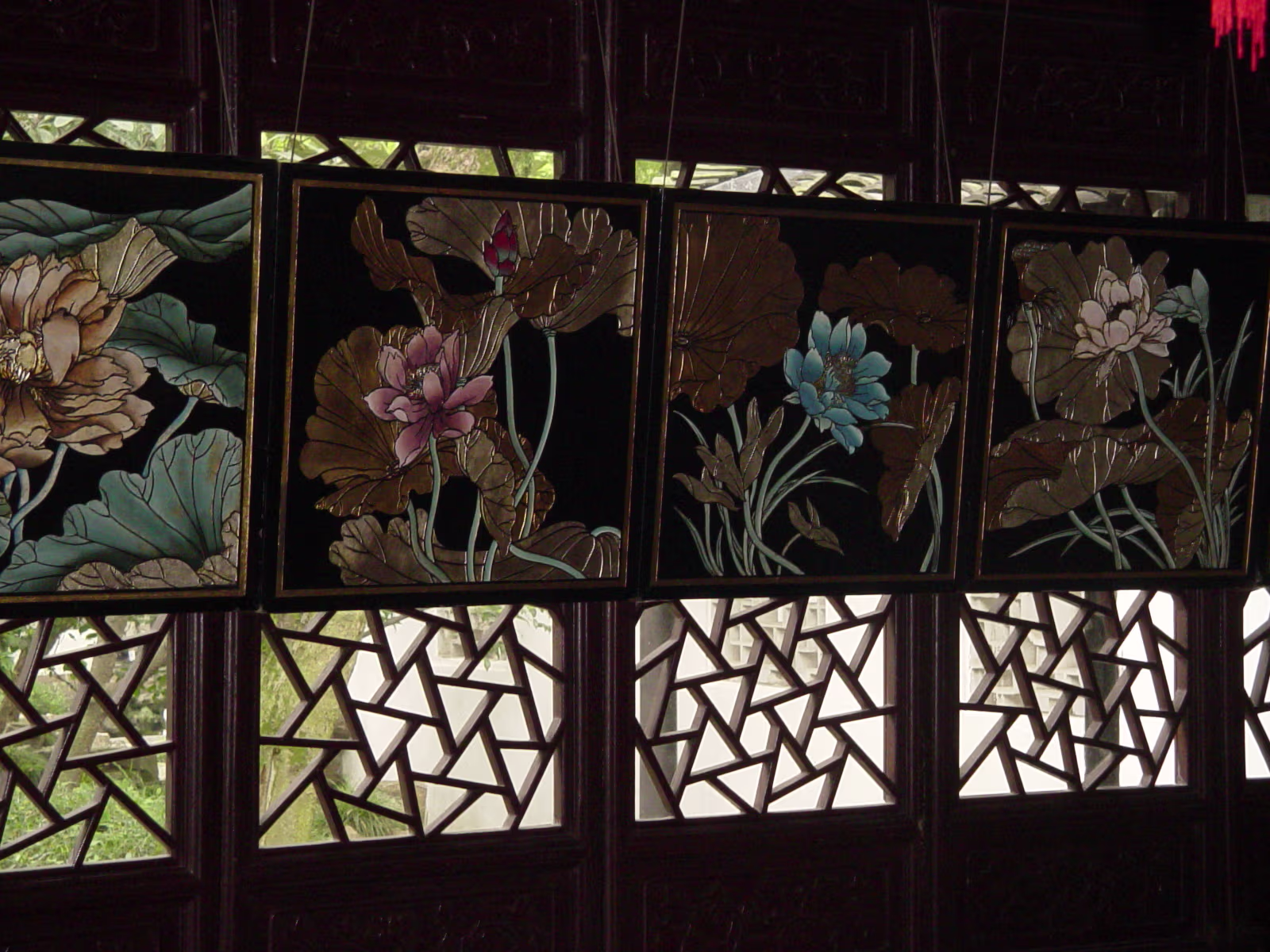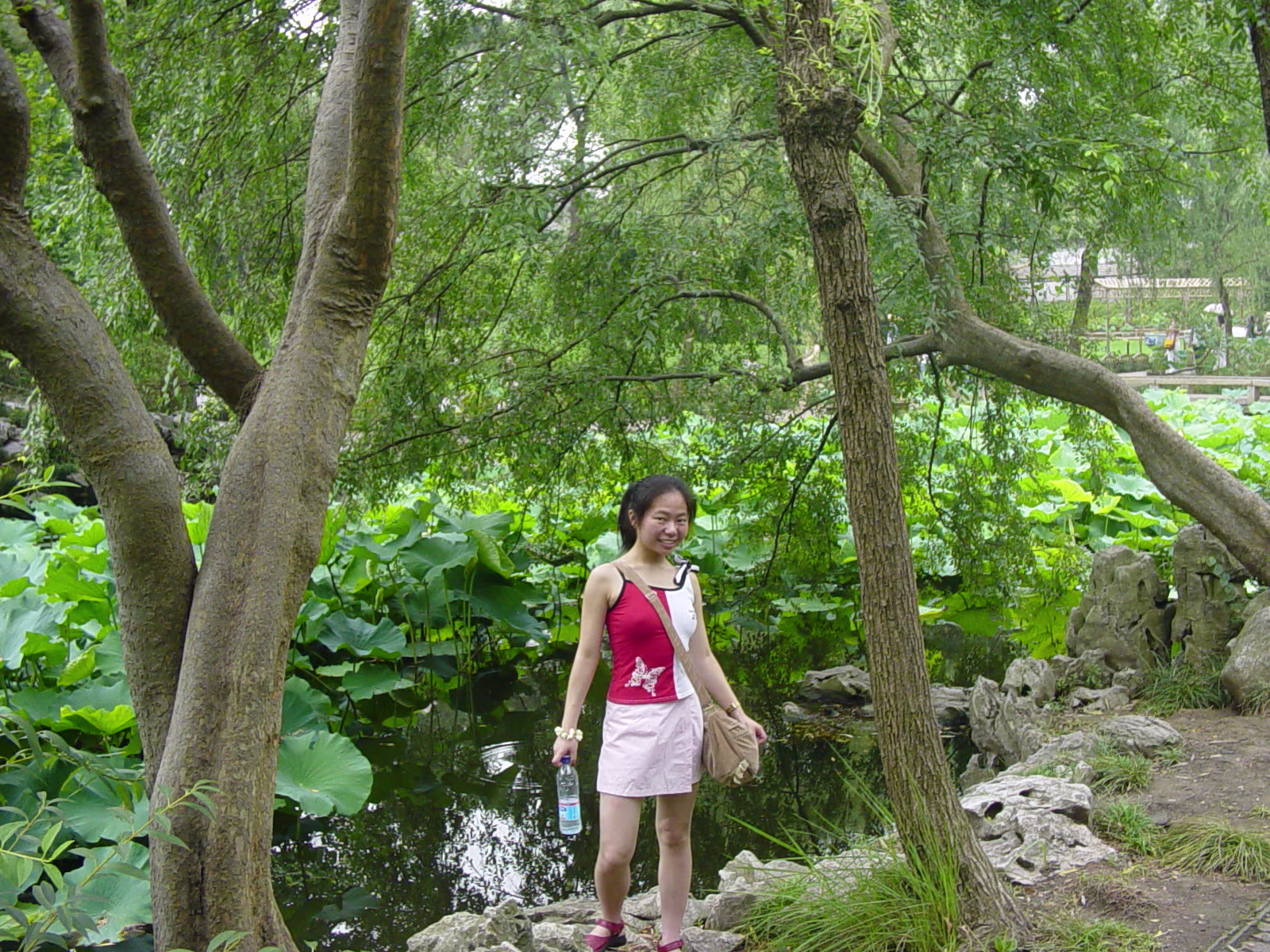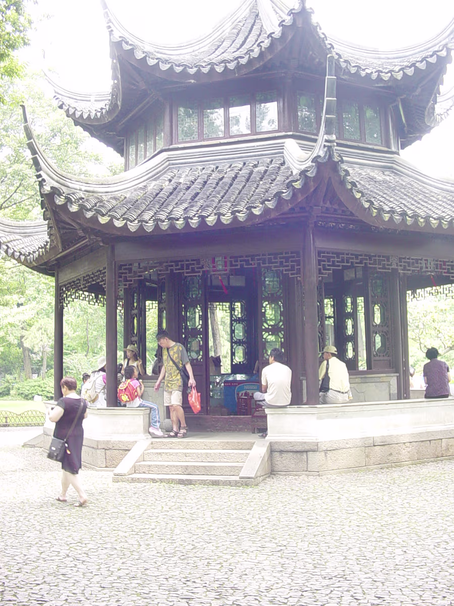 600 Year old tree and Hanhan. 600 year old guy. The largest indoor opera stage in Eastern China. Emperor & Empress Pool between 2 halls of the administrator's house. Nice pool and nice girl. House with well at Humble Administrator's Garden (H.A.G.) Lotus pool. Lotus flower girl. 'Smell rice' hall. 'Smell rice hall' wooden screen with carvings showing life at the time. Hanhan with lovely drinks! Hanhan with her snack. Another lotus pool with bent trees. Stones from Tai Lake. A pavilion in the garden. A lotus blossom floating in the pool. A round door is to frame the following 'scene'. Carvings on the furniture in house shows cooking utensils. Lotus blossom panels with 'cracked ice' inlays for the windows. Labels Shitai Aug 2005Suzhou Oct 2006
