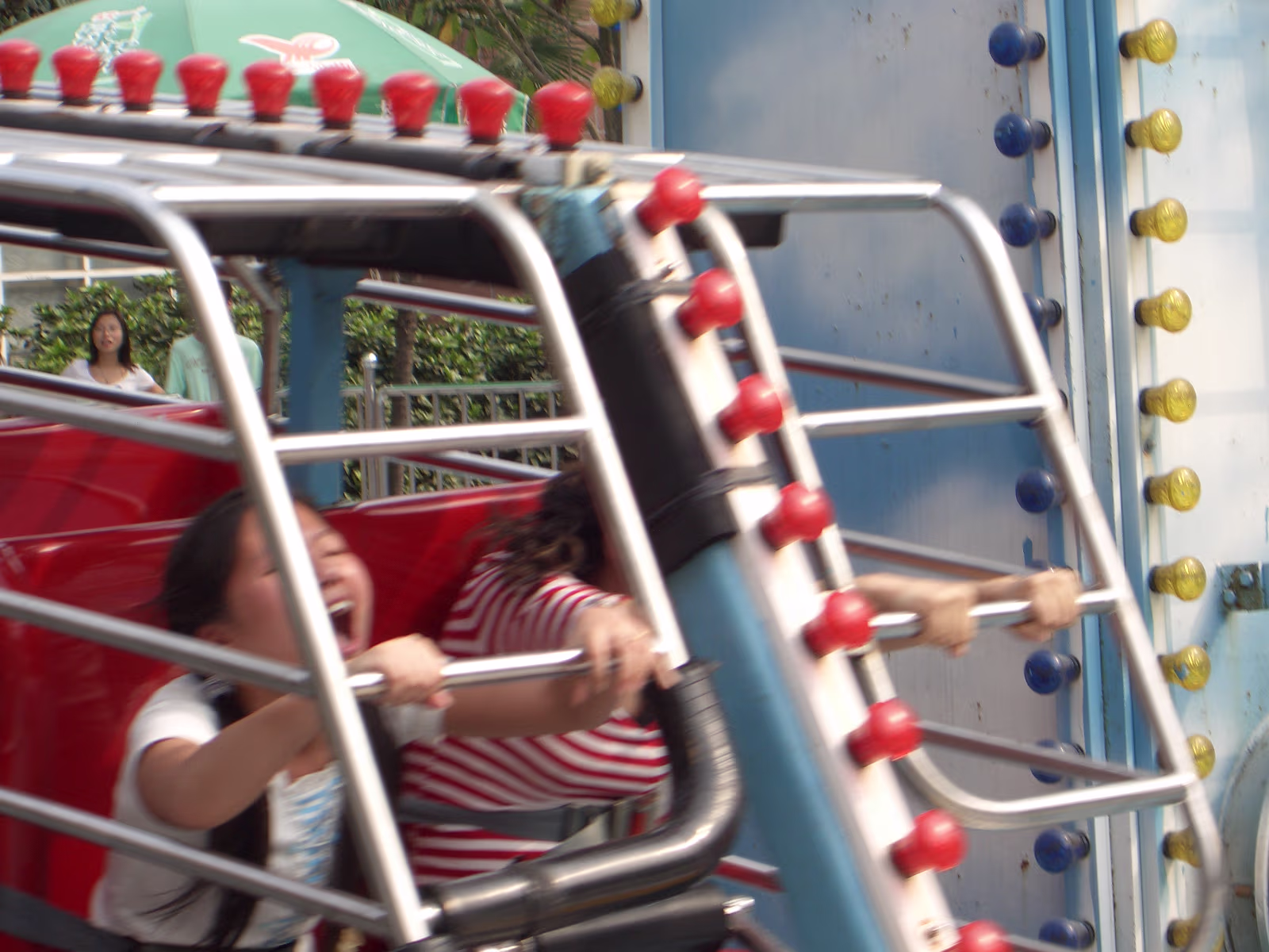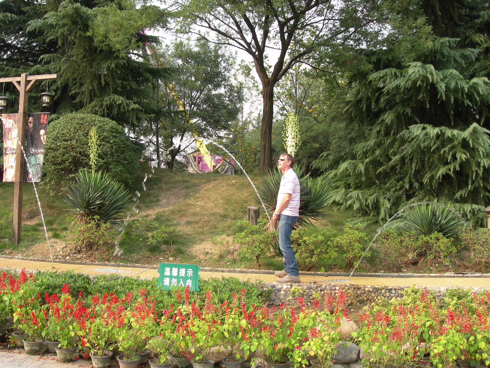 Typical foreigner image. Willie, Hanhan, David, and Ruth. Gogo too. Our day at Suzhouland ends, this is a good motto for the place. Hanhan and Happy at the Outdoor Bar (We call it the 'Dog Bar'). Entry to Suzhouland. Starting down the main street of Suzhouland. Screaming, but having a great ride! Hanhan getting ready to take the first ride of the day. On the Shenzhou VI! Ride is underway now. Hanhan and the park's mascot, Sudi. Tony, Ben, and Hanhan having an accident on their mighty steeds! Hanhan has killed her giraffe. Hanhan just got her wings. She's asked for these more than a year. Two angels, Hanhan and Willie. We have a problem Houston. Upside down and rotating. Not for me, but Hanhan loved it. A rest stop on the way to the roller coaster. What happens when a shark attacks an angel? A nice shot showing the roller coaster and the mountains behind it. Me, Hanhan, Willie, Becky, Tony, and Xiaohua hurtling towards our doom. An angel and his kitty. Labels Suzhou July 2004Wuhu Photos