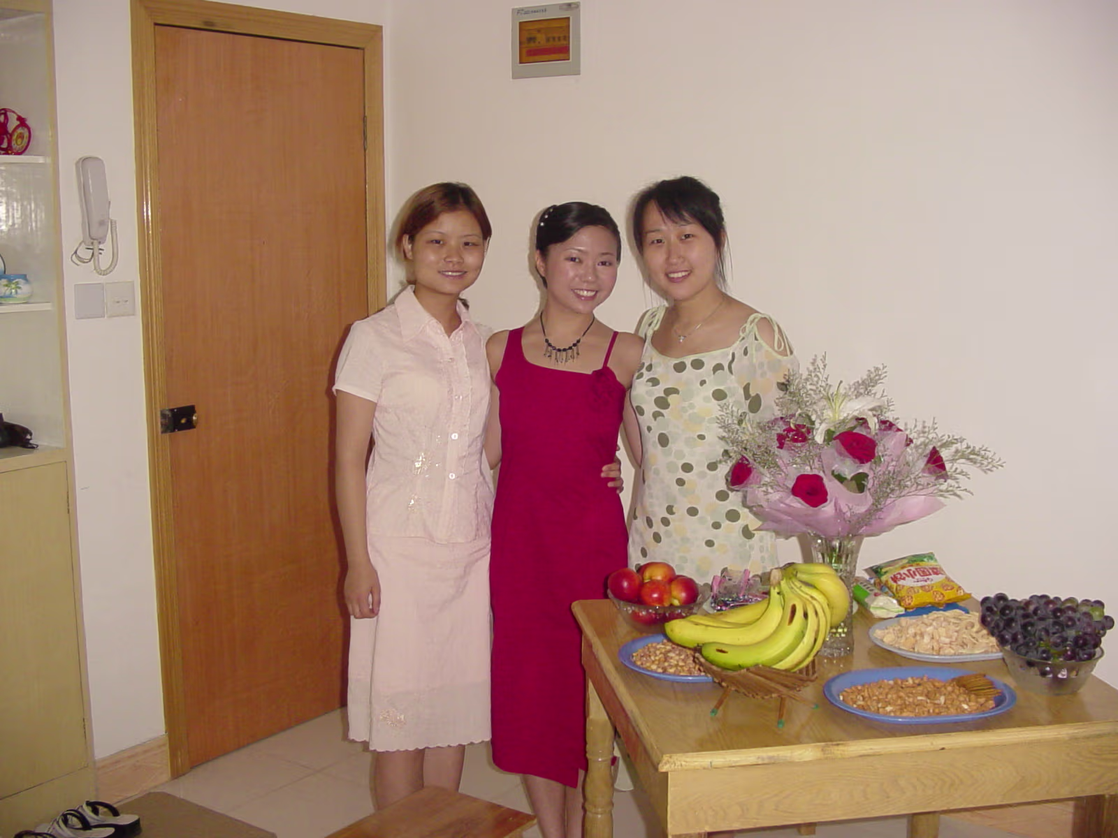 Snack table for guests at our apartment. Hanhan and her attendants. In the 'cave room' Gary with Hanhan's relatives. Gary, Hanhan, Mom, Dad. With Hefei Aunt and cousin. With Hanhan's oldest relative. With Hanhan's Uncle. Do-Re-Mi-Fa, the singing Zhangs! Hanhan and her cousin from Hefei. Labels Hefei and RingsWedding Dinner