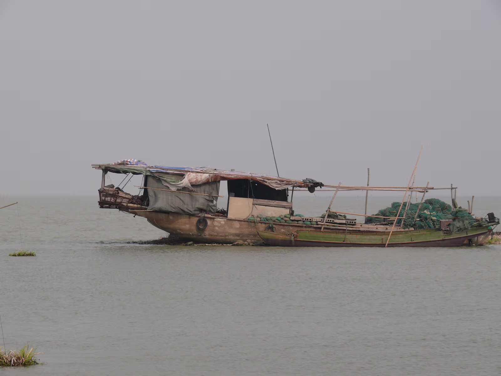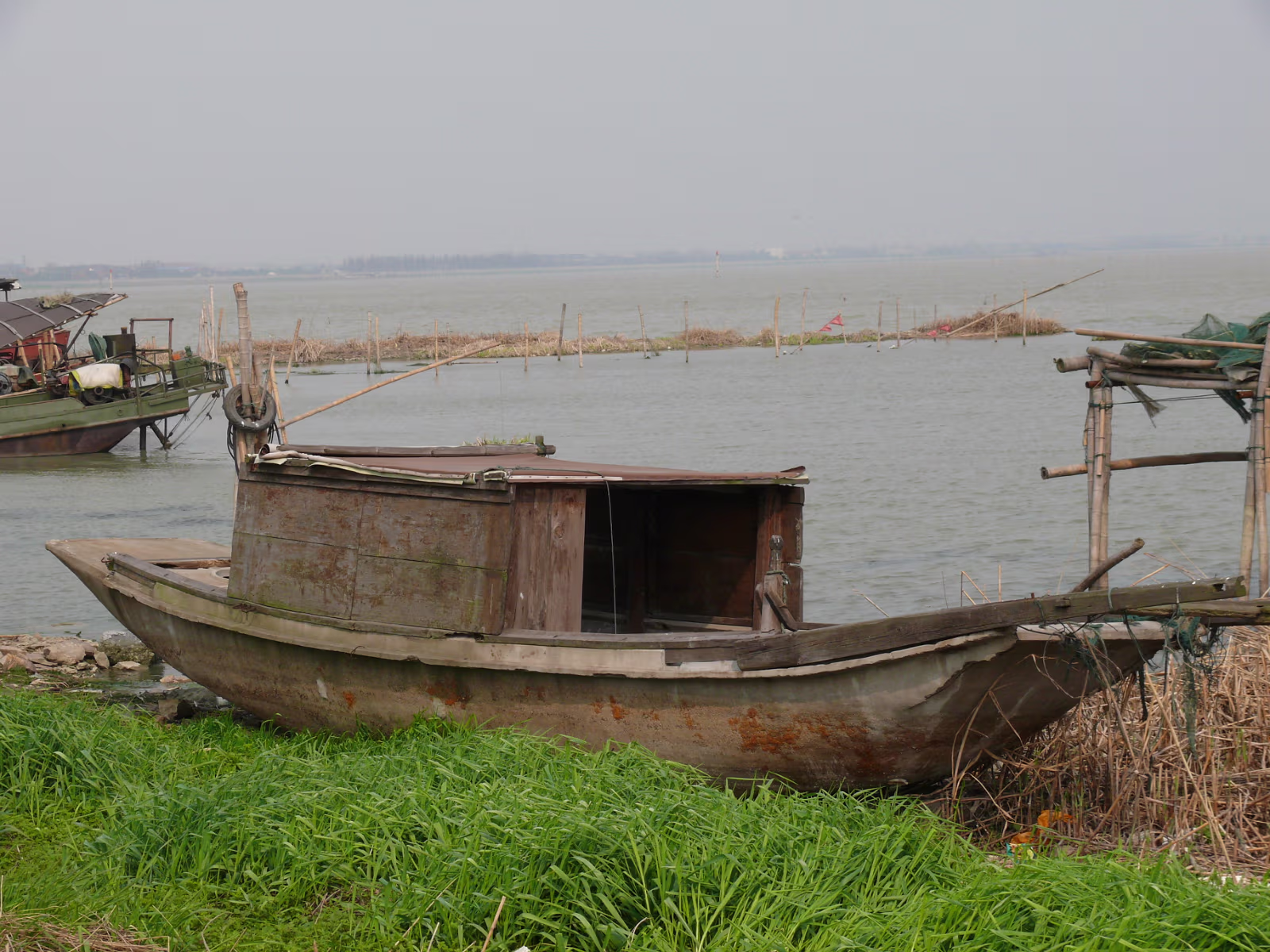 We arrive at a wetland and boat dock on Tai Hu. Down the dock to check out a couple of boats. A good example of the boat we're looking for. A fishing junk. Note the pile of green nets on the bow. A little row boat. This is much more our speed. People were burning off the brush and the wind was about 30 MPH. We found the Wuxi municipal water intakes further down the shore. Hanhan on one of the intake pipes. Not supposed to disturb the area, but who cares? A working junk on a canal. We're going to board her. The junk owner, Mr Ding, and his oldest son. Very nice people to let us in their boat/house. Heading to another area, this coal hauler wanted to pose for me. A good shot showing the difference between 'have' and 'have-not' in China. The shacks where we will ask about boats for sale. A good look at how people live on the water around here. Labels Christmas 2006