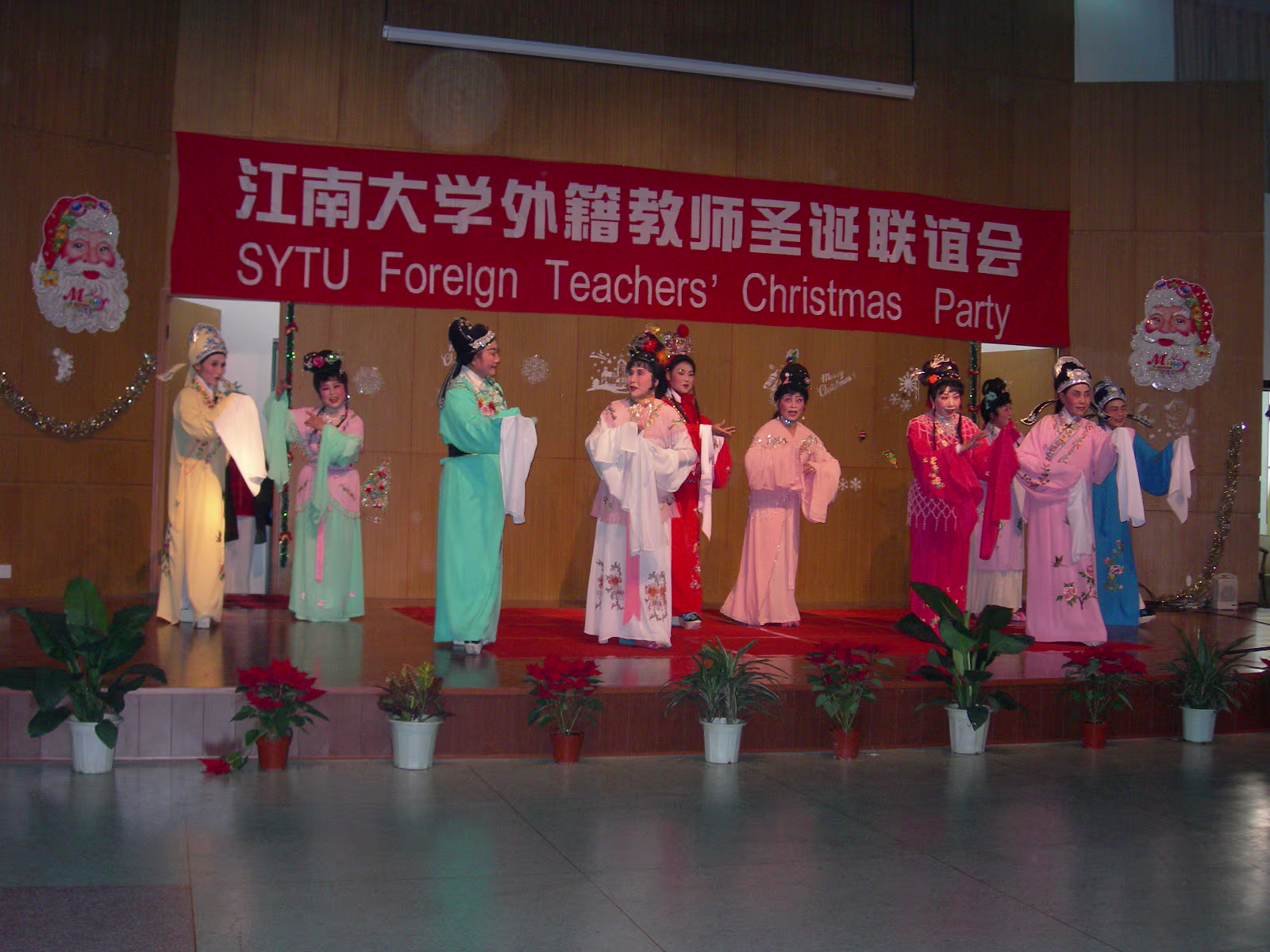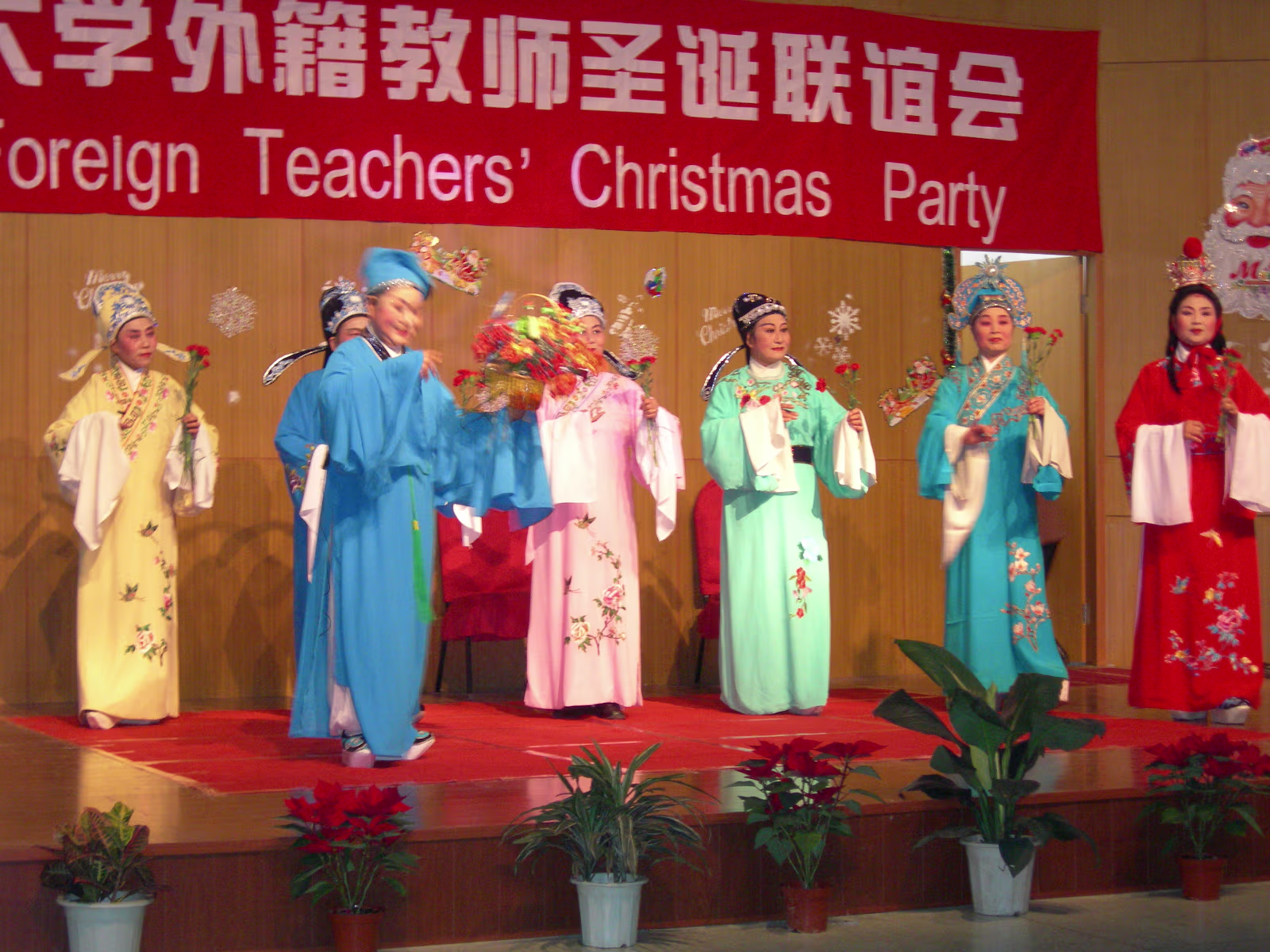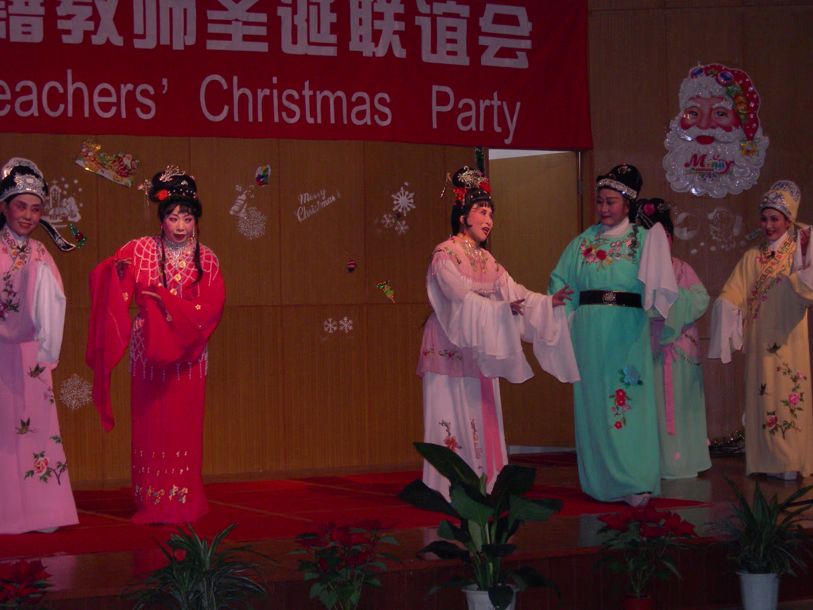 Gary, Hanhan, and the decorations. A Chinese Opera performance by the Wuxi Senior Opera troupe. Opening scene of one of the performances. Traditional Chinese village dance. Chinese Opera actor performing a number. Great costume and makeup! A 'giving flowers' scene. We attended a student party and enjoyed the food, drinks, and fun. The Christmas Eve group Three Christmas carolers. Not! Xiaohua and Hanhan with some Christmas cheer. Hanhan, Becky, and Adam feeling the Christmas spirit. Labels Boat Buying ExcursionEurope Park