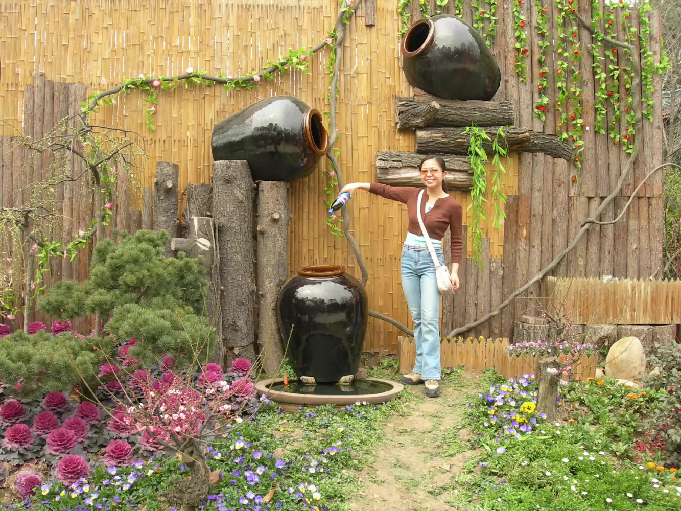 Beginning our visit with a smile!Close up of plum blossoms, which is why we're here today.A Reflecting pondHanhan with some wine pots. Plum blossoms everywhere.Me and my lucky flowers, it's a long story.Hanhan resting at the original gate to the park.This is the 'Heart Washing Spring' To make you forget your cares before entering the park. The 'Sky Heart Pagoda'Nice path for a stroll though the plum trees.The owner's living room. He was a rich art lover and created this park for his enjoyment.Another part of his living room. An old Chinese building. These are getting hard to find nowadays.Further along the path, another example of the old China.Now we're heading for the temple on the hill.View from the top of the temple. From the other side of the temple. All rested now, we'll continue.The plaque is the owner's book preface.An ancient brass mirror, Hanhan LOVES mirrors!A tired Hanhan taking a rest in a beautiful spot. Gary doesn't get to rest, something about the wicked...Approaching a church.Hanhan trying to get in. It's locked because it is only for show.This is used as a backdrop for weddings. Wedding pictures here are always fantasy. Hanhan admiring the roses. No picking allowed!Which is prettier?A peaceful pond and stream, quite rare in this place to find no people.My little Dutch girl! Finally! A shoe that is just my size!'Handbag' flowers. Very cool, look closely to see how they got their name.Share MY cotton candy!? Ha!Hanhan on the climbing wall. She made it all the way. A flower boat makes a nice seat.'Better than nature' rock. Because the owner laid this out and thought it was better.Strange for China, no people in sight. Nice for us though.The characters say 'Spring begins here'. And on this day, it did. Ling Shan Buddha SiteMid Autumn Festival 2006