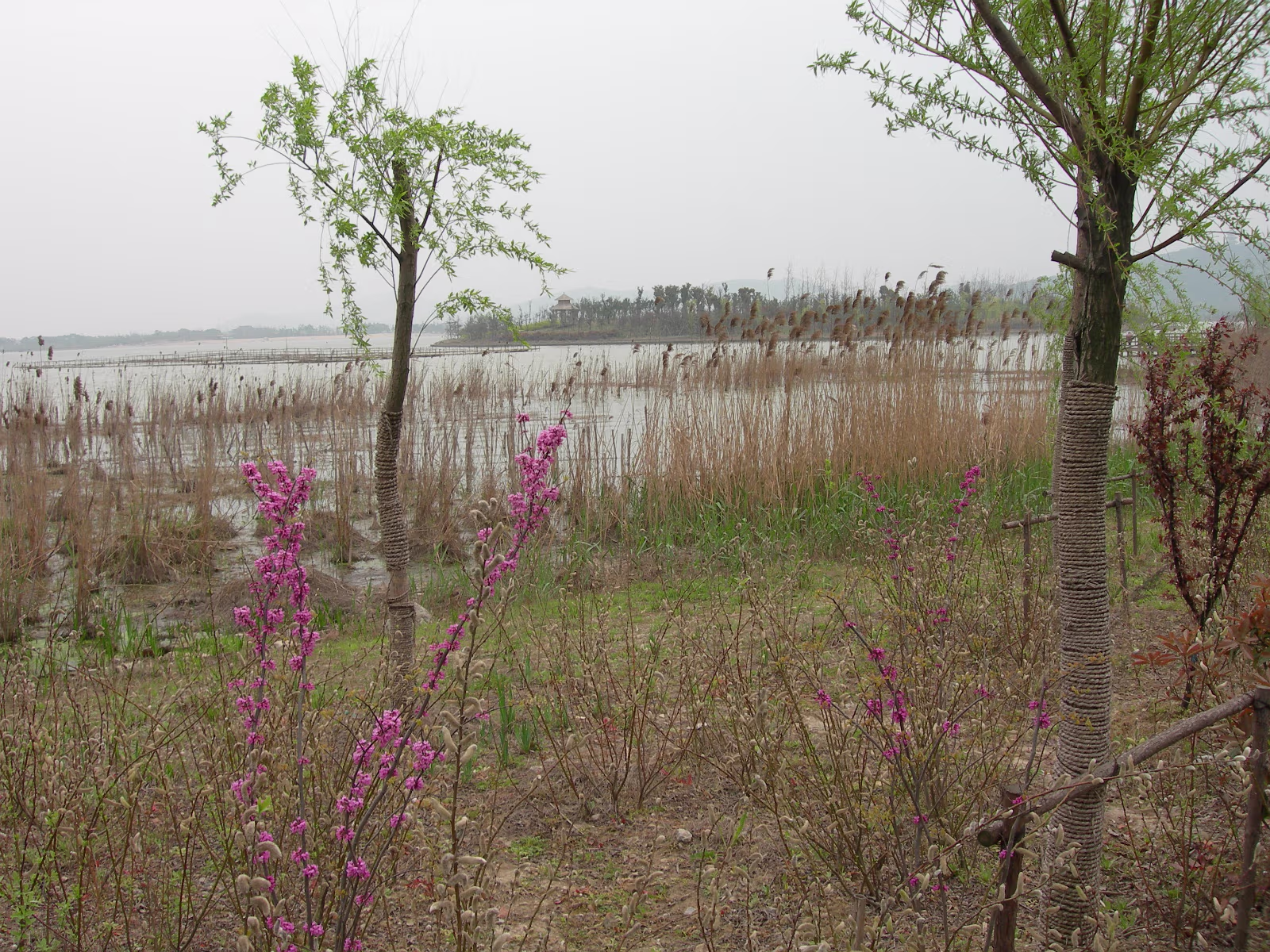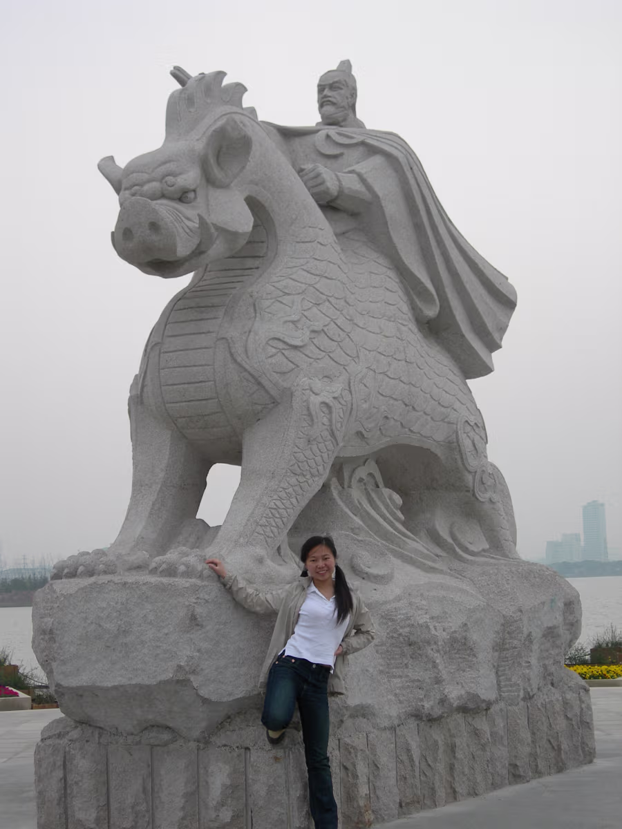 At the Bo Gong Island park entrance. You wouldn't know you're on the edge of a city of 5 million. Hanhan amidst the bright green of Spring. Hanhan's mom at the rail while we take a rest. A teahouse on the lake, another common sight. Hanhan in a favorite pose. View across Tai Lake to Turtle Head island and mountains. Holding on tight against the wind. It is always windy here in Wuxi. A nice pavilion for picnics. Bo Gong and his enchanted steed. Engraving of the story of Bo Gong controlling Tai Lake flood waters. Hanhan and 'The animal that does not look like any animal' It has a pig's nose, dragon's body, horse's tail, and donkey's ears. The 'Chicago' teahouse. Nope, I didn't visit, never heard of Chicago tea. Labels Spring Festival 2007Turtle Head Island