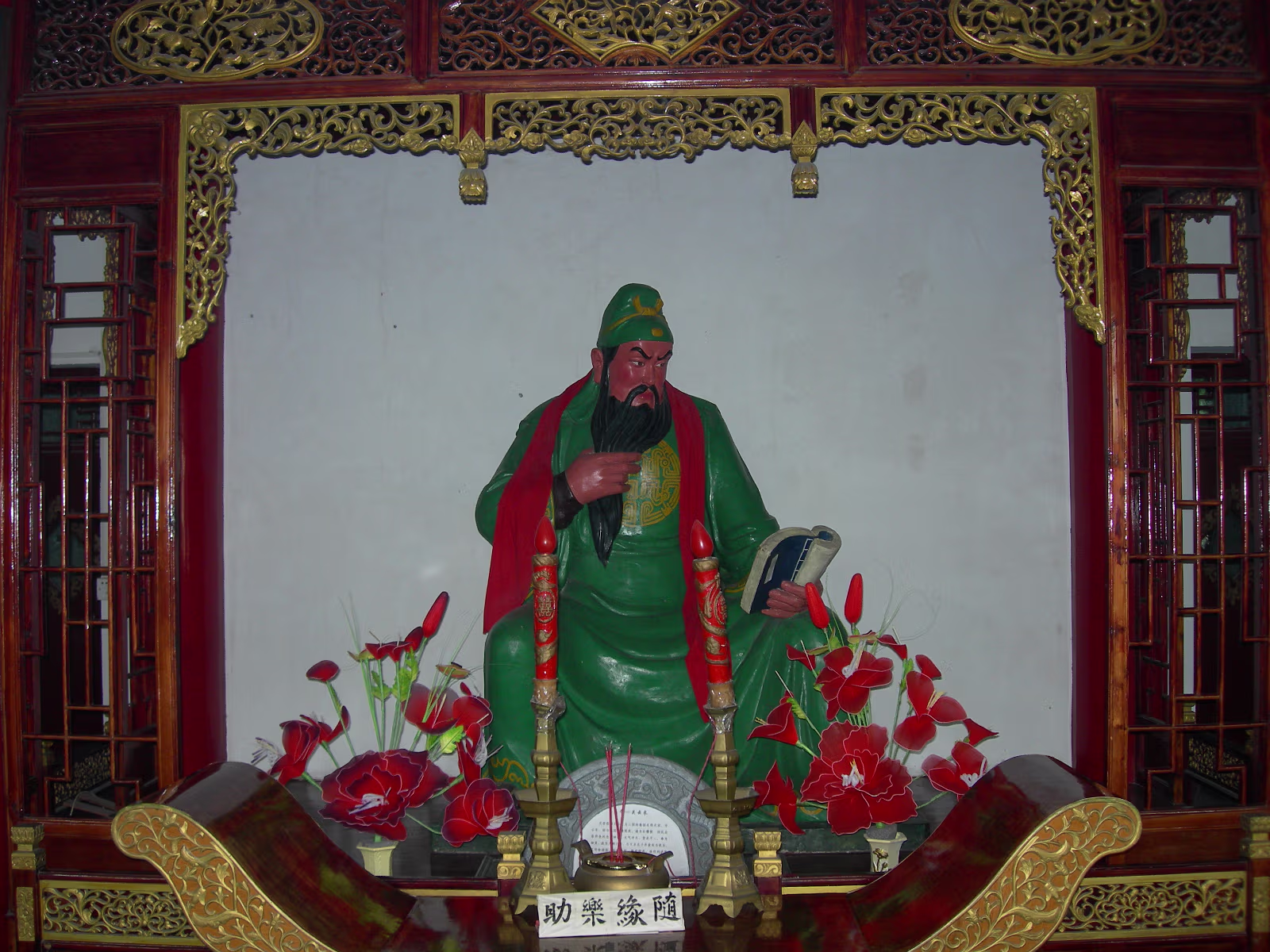 At the entrance to Turtle Head Island Park, the day begins. You gotta stop and smell the roses. Ok, they're not roses... A view from our boat to a small island on the way to the main island. I don't know what I've done! But I'm getting 'the look'. An ancient lighthouse. Still in use today as far as I can tell. A wealthy person's retreat. Isolated for sure. Our destination dead ahead. The Zhang Family on deck, ready for action. Entrance to Tai Hu Fairy Island. The Monkey King's birthplace. I like the Monkey King TV shows! An old ship on Tai Lake. Old women near Tai Lake. Ha! A stone fisherman with real fishermen in the background. 'Heart Lock' You have your names carved on a padlock and lock it here to seal your love. The Zhang family hearts need no lock to remain true. The matchmaker's temple. Lots of people take their sweeties here. Nearing a Daoist temple. Daoism was founded here on this island. Of course, there are many Dao sites to visit. The obligatory incense stencher. Hanhan's Dao guardian 'angel'. Guan Yu (Money God), very popular! Labels Tai Hu (Tai Lake)Xi Hui Park