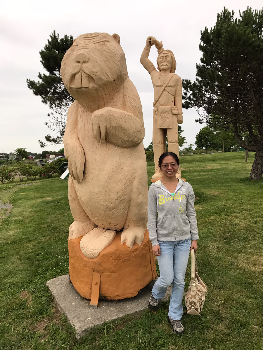 Here, Hanhan poses with a giant beaver right before it is forever shrunk…
