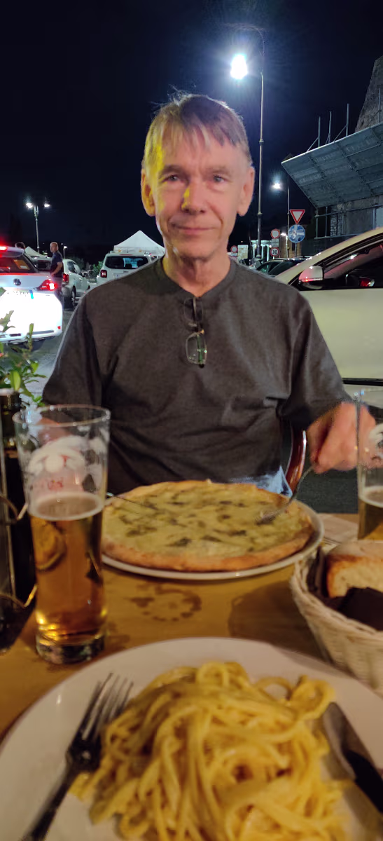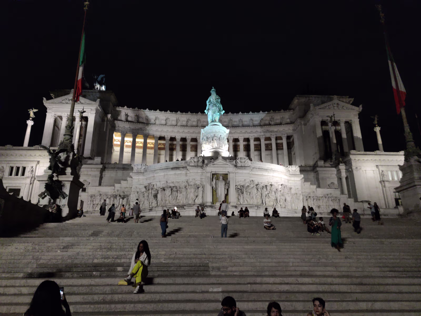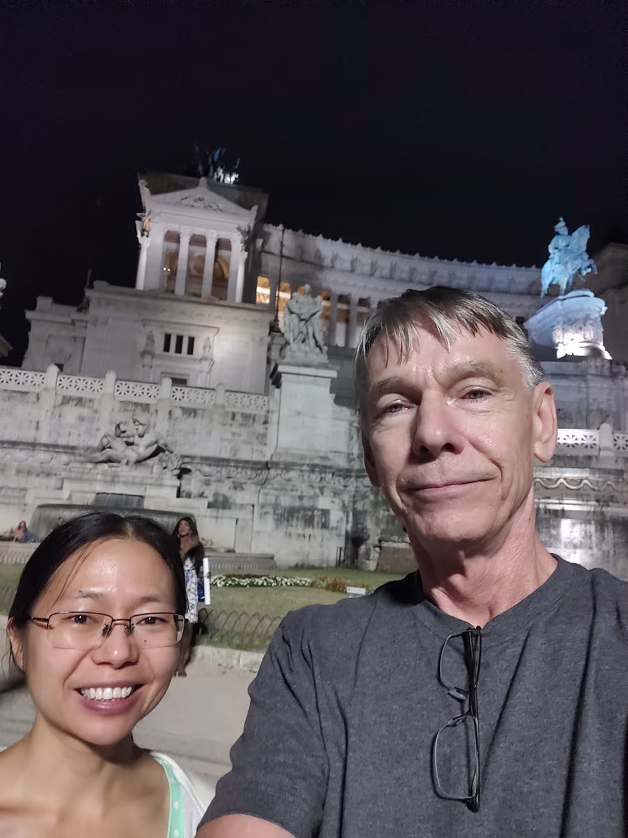 Taking the train from Milan airport to the central train station. Milan train station. Looks like the one from Harry Potter. First espresso and pastry experience. So good, we had many many more! Business class train to Rome! Traveling at 185 MPH! First monument we saw leaving the Rome train station. First gelato of our trip. We were walking to our hotel bags and all! Our very tiny room. The location was fantastic, about 2 blocks from the Colosseum! Roman Forum, right outside our hotel! After a long day's travel, we are in front of the palace of the first King of Italy. The front of the palace with the King on his mount. This Italian flag is in front of the palace. A view from the palace plaza. These guards are posted 24/7 for the Unknown Soldier from WW-I. First dinner in Italy. Dining less than a block from the ruins. Hanhan has the typical black pepper and Parmesan cheese spaghetti. It was too al dente. Gary went with a pizza. No sauce was present. If it were America, he'd send it back. Second gelato of the night. All gelato is delicious, The best is the one you are eating! We walked around the area after eating too much. The Colosseum by night is quite beautiful. Labels London and DoverSwiss Adventure 2018