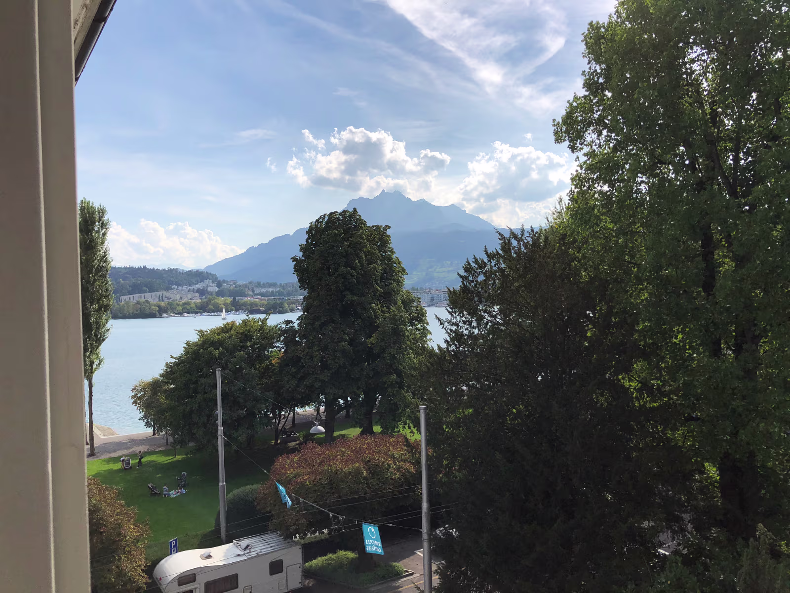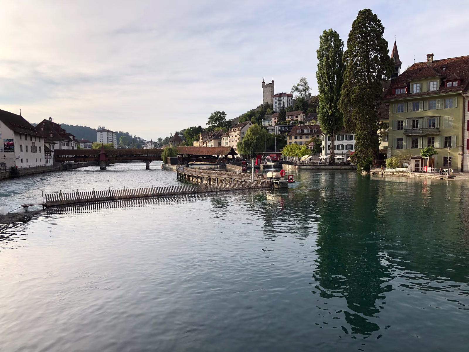 No matter where you look, the views are great. European/Swiss buildings, the defense and church towers, people strolling about.