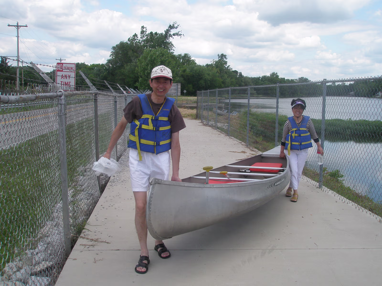Hanhan and mom sneaking into a boat. Hanhan's parents want this red boat one day. There are many hot air ballons around the area. Gary & Hanhan go canoeing. The Zhang family ready to paddle! The girls waiting on the men, as they should. We had to carry the canoes around a dam here. Ed & Gary think "this better be the last canoe". Put the Chinese to work. Canoe aren't as light as you'd think. Hanhan and her mom wait on one last canoe. Ed & Sharon took a shortcut. Safe! Hanhan just looks like she is paddling. Hammer family racing down the dangerous river. Hanhan's mom holding her paddle. Just like Hanhan. Hanhan steering into the riverbank. Enjoying a picnic on the river. Happy to be this far. Ed is the last off the river, seems happy. Labels Indianapolis June 2009Carmel Move