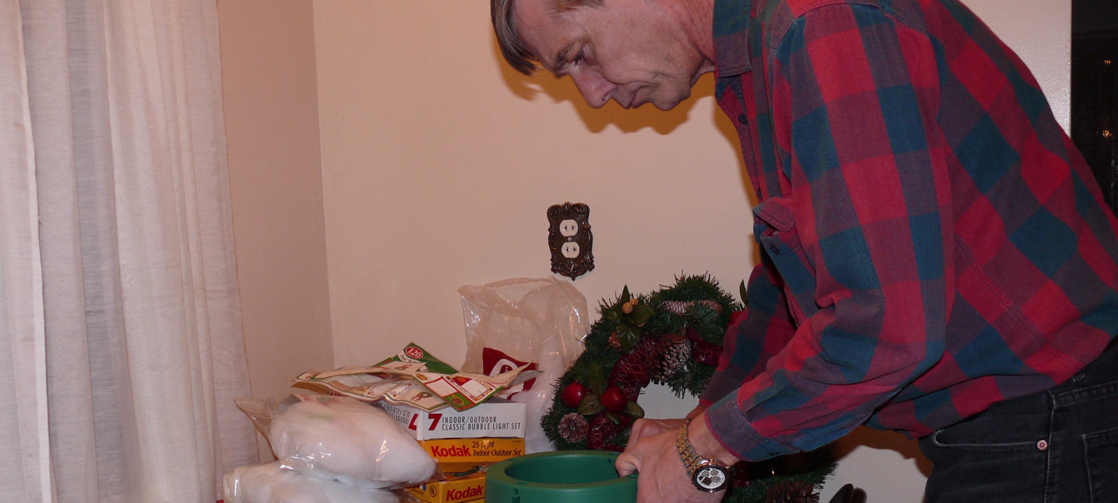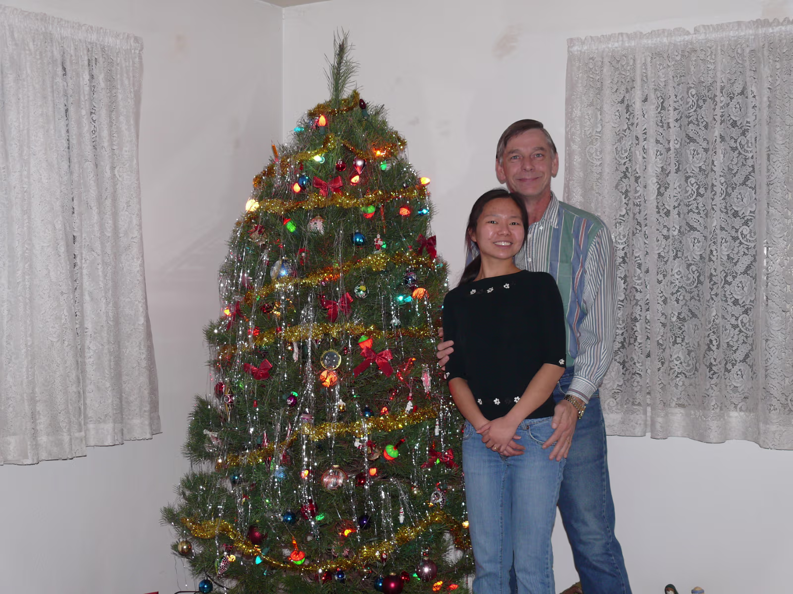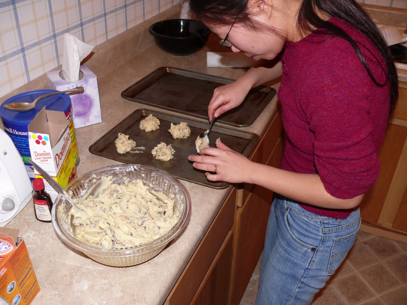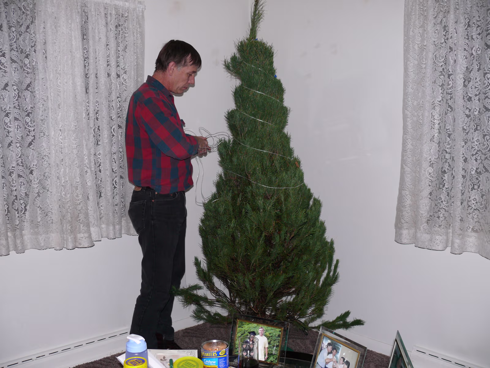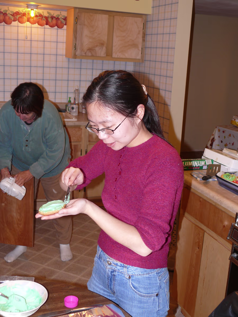 Assembling the stand for our tree. Untieing the tree after the ice melted. The tree before it thawed. Hanhan and our tree ready to decorate. Hanhan putting the finishing touches on the tree. Hanhan & Gary with their beautiful Christmas tree. The "Christmas Corner" The gifts protected by the Christmas dog! Nativity scene and our stockings. Linda with the cookie ingredients. Yum! Sugar cookies ready for frosting. Baked cookies next to cookies getting ready for the oven. Sugar cookie assembly line! Finished product, they were delicious! Hanhan is in charge of the green cookies. Putting the sprinkles on. Another layer of yummy cookies ready for Christmas Eve. Laying out the chocolate chip cookies. Testing the chocolate chip cookies with a glass of icy cold milk! Mixing another batch of chocolate chip cookies. Labels Christmas In PeoriaAutumn In Illinois